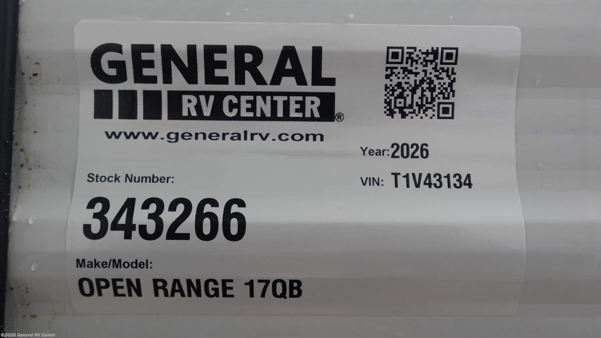 Request More Info on this 2026 Open Range COLT 17QB Offered for sale by General RV Center