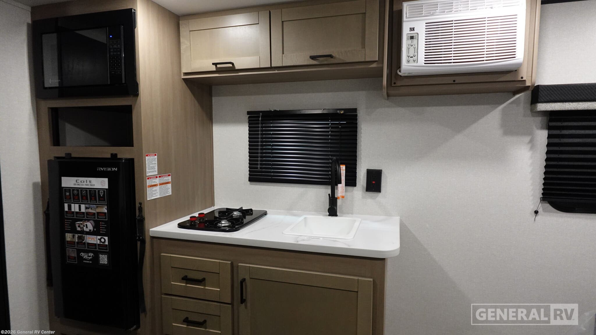**Open Range RV Colt travel trailer 17QB - CTR Edition highlights:** * Walk-Around Queen Bed * Exterior Storage * Full Rear Bath * Two-Burner Cooktop This travel trailer is just what the doctor ordered! Once you've loaded up the exterior storage, you can head out to the campground of your choice. The 10' power awning can be put out when you arrive, then you can relax in your camp chairs or head inside to make lunch on the two-burner cooktop. There is also a microwave oven for quick meals and a 12V refrigerator for food storage. A booth dinette provides a place to dine together, and you can convert it to sleeping space at night for one to two guests. You'll love the front queen bed that includes an overhead shelf and a wardrobe for your things, and this unit includes a full rear bath for added privacy. Here, you'll find a 24" x 32" shower, a toilet, and a linen closet plus shelves/storage for toiletries and towels! With any Colt travel trailer by Open Range RV, you can be sure you're getting a budget-friendly unit designed to fit your lifestyle! Each one is built to last with a PVC roofing membrane and built-in A-frame, plus there are nitrogen-filled radial tires and self-adjusting electric brakes for easy towing. You will appreciate the utilities that include 30-amp service, an A/C unit, and an on-demand tankless water heater. A few interior comforts include vinyl flooring throughout, solid hardwood cabinet doors, and residential grade kitchen countertops to make your space feel more like home.