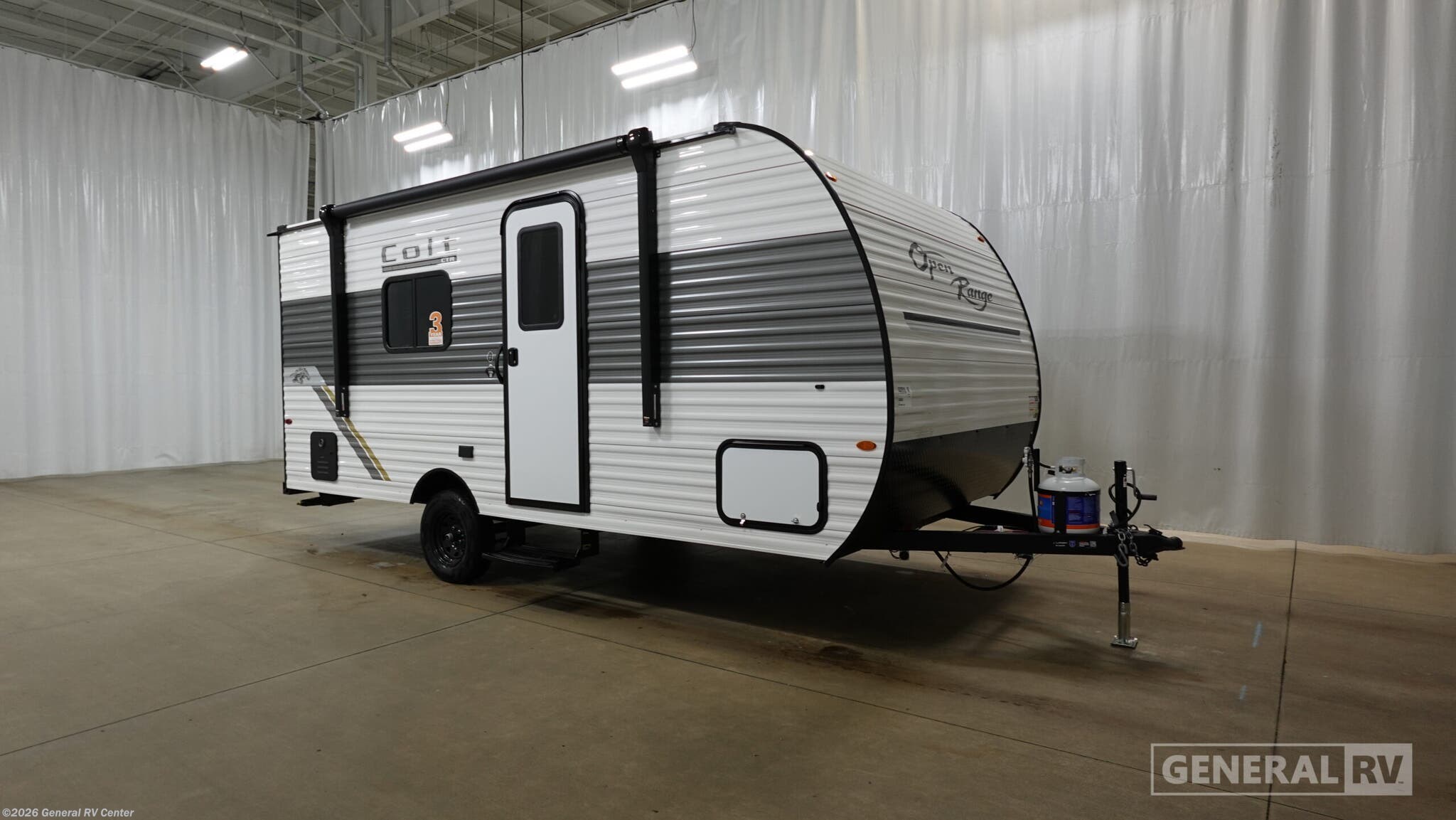 Open Range RV Colt travel trailer 17QB - CTR Edition highlights: Walk-Around Queen Bed Exterior Storage Full Rear Bath Two-Burner Cooktop This travel trailer is just what the doctor ordered! Once you've loaded up the exterior storage, you can head out to the campground of your choice. The 10' power awning can be put out when you arrive, then you can relax in your camp chairs or head inside to make lunch on the two-burner cooktop. There is also a microwave oven for quick meals and a 12V refrigerator for food storage. A booth dinette provides a place to dine together, and you can convert it to sleeping space at night for one to two guests. You'll love the front queen bed that includes an overhead shelf and a wardrobe for your things, and this unit includes a full rear bath for added privacy. Here, you'll find a 24" x 32" shower, a toilet, and a linen closet plus shelves/storage for toiletries and towels! With any Colt travel trailer by Open Range RV, you can be sure you're getting a budget-friendly unit designed to fit your lifestyle! Each one is built to last with a PVC roofing membrane and built-in A-frame, plus there are nitrogen-filled radial tires and self-adjusting electric brakes for easy towing. You will appreciate the utilities that include 30-amp service, an A/C unit, and an on-demand tankless water heater. A few interior comforts include vinyl flooring throughout, solid hardwood cabinet doors, and residential grade kitchen countertops to make your space feel more like home.