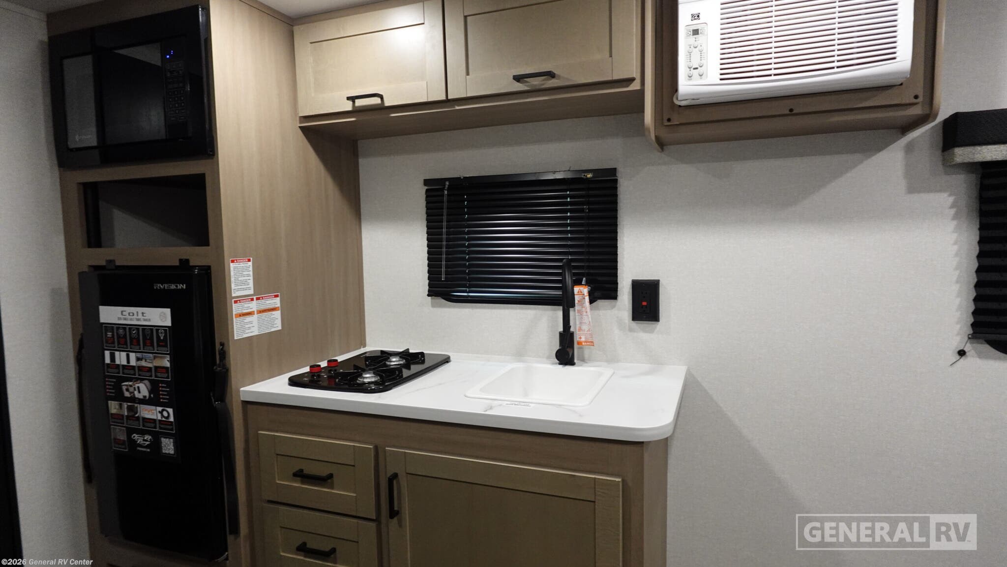 Open Range RV Colt travel trailer 17QB - CTR Edition highlights: Walk-Around Queen Bed Exterior Storage Full Rear Bath Two-Burner Cooktop This travel trailer is just what the doctor ordered! Once you've loaded up the exterior storage, you can head out to the campground of your choice. The 10' power awning can be put out when you arrive, then you can relax in your camp chairs or head inside to make lunch on the two-burner cooktop. There is also a microwave oven for quick meals and a 12V refrigerator for food storage. A booth dinette provides a place to dine together, and you can convert it to sleeping space at night for one to two guests. You'll love the front queen bed that includes an overhead shelf and a wardrobe for your things, and this unit includes a full rear bath for added privacy. Here, you'll find a 24" x 32" shower, a toilet, and a linen closet plus shelves/storage for toiletries and towels! With any Colt travel trailer by Open Range RV, you can be sure you're getting a budget-friendly unit designed to fit your lifestyle! Each one is built to last with a PVC roofing membrane and built-in A-frame, plus there are nitrogen-filled radial tires and self-adjusting electric brakes for easy towing. You will appreciate the utilities that include 30-amp service, an A/C unit, and an on-demand tankless water heater. A few interior comforts include vinyl flooring throughout, solid hardwood cabinet doors, and residential grade kitchen countertops to make your space feel more like home.