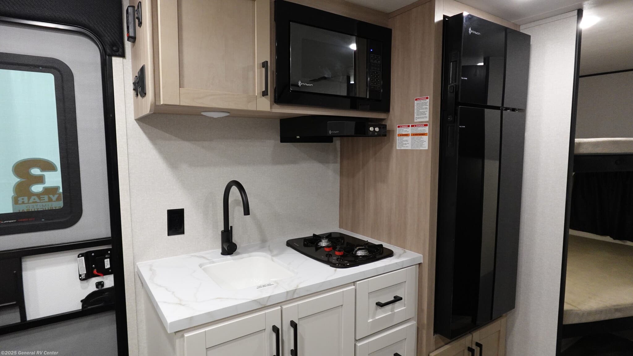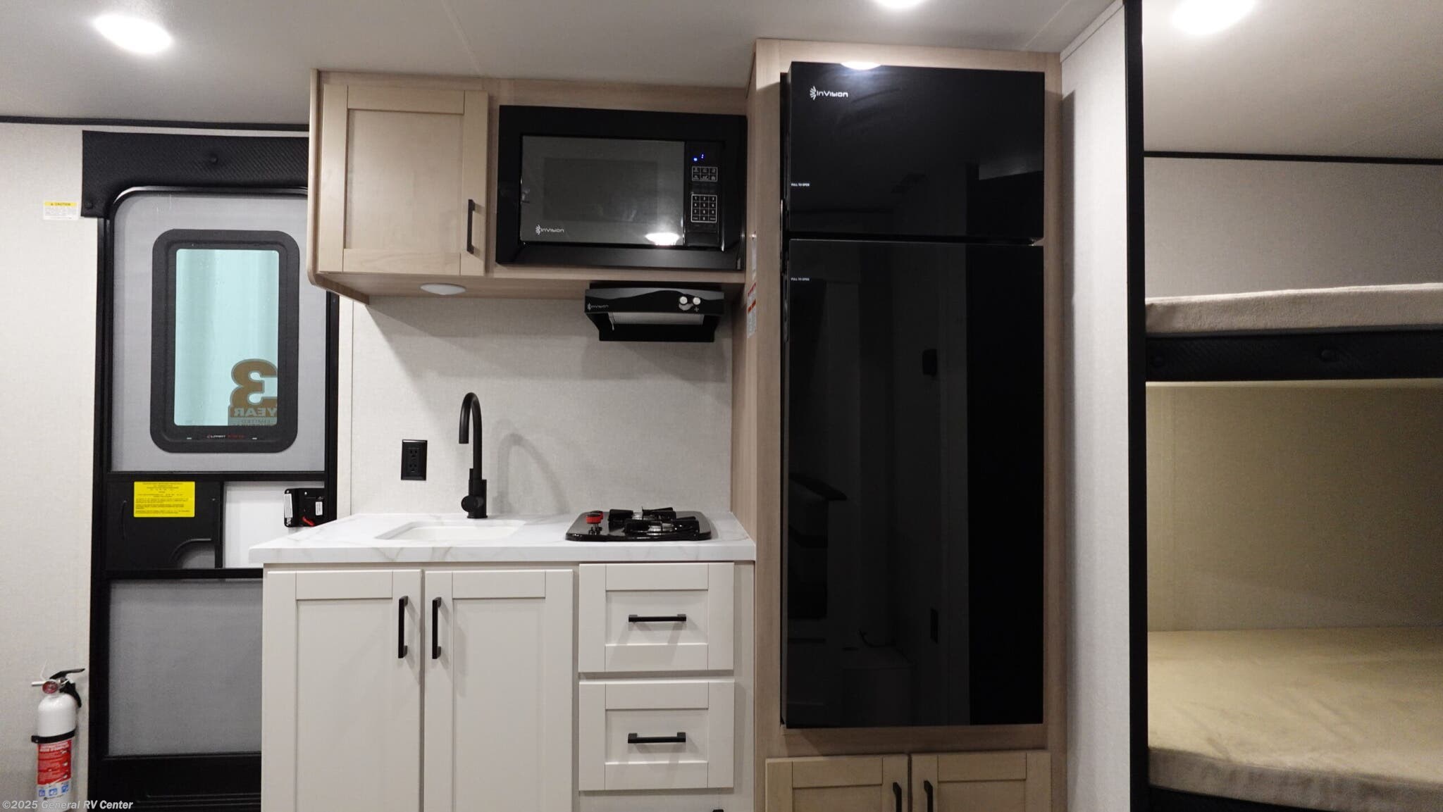 Open Range RV Colt travel trailer 18MBS highlights: Double-Size Bunk Beds Overhead Cabinets Private Bath Front Murphy Bed U-Shaped Dinette Slide This travel trailer features compact sleeping spaces thanks to the double-size bunk beds in the rear corner, and the private full bath is right next to the bunks for easy nighttime use! You'll have the front Murphy bed all to yourselves, and in the morning, you can fold it away to sit on the jack-knife sofa. A cooktop and microwave oven will let you make meals each day, and there is a 12V refrigerator to keep your cold items fresh. Outside, you'll enjoy the 13' power awning for added shade, and there are two exterior storage compartments to keep fishing poles, hiking gear and more! With any Colt travel trailer by Open Range RV, you can be sure you're getting a budget-friendly unit designed to fit your lifestyle! Each one is built to last with a PVC roofing membrane and built-in A-frame, plus there are nitrogen-filled radial tires and self-adjusting electric brakes for easy towing. You will appreciate the utilities that include 30-amp service, an A/C unit, and an on-demand tankless water heater. A few interior comforts include vinyl flooring throughout, solid hardwood cabinet doors, and residential grade kitchen countertops to make your space feel more like home.