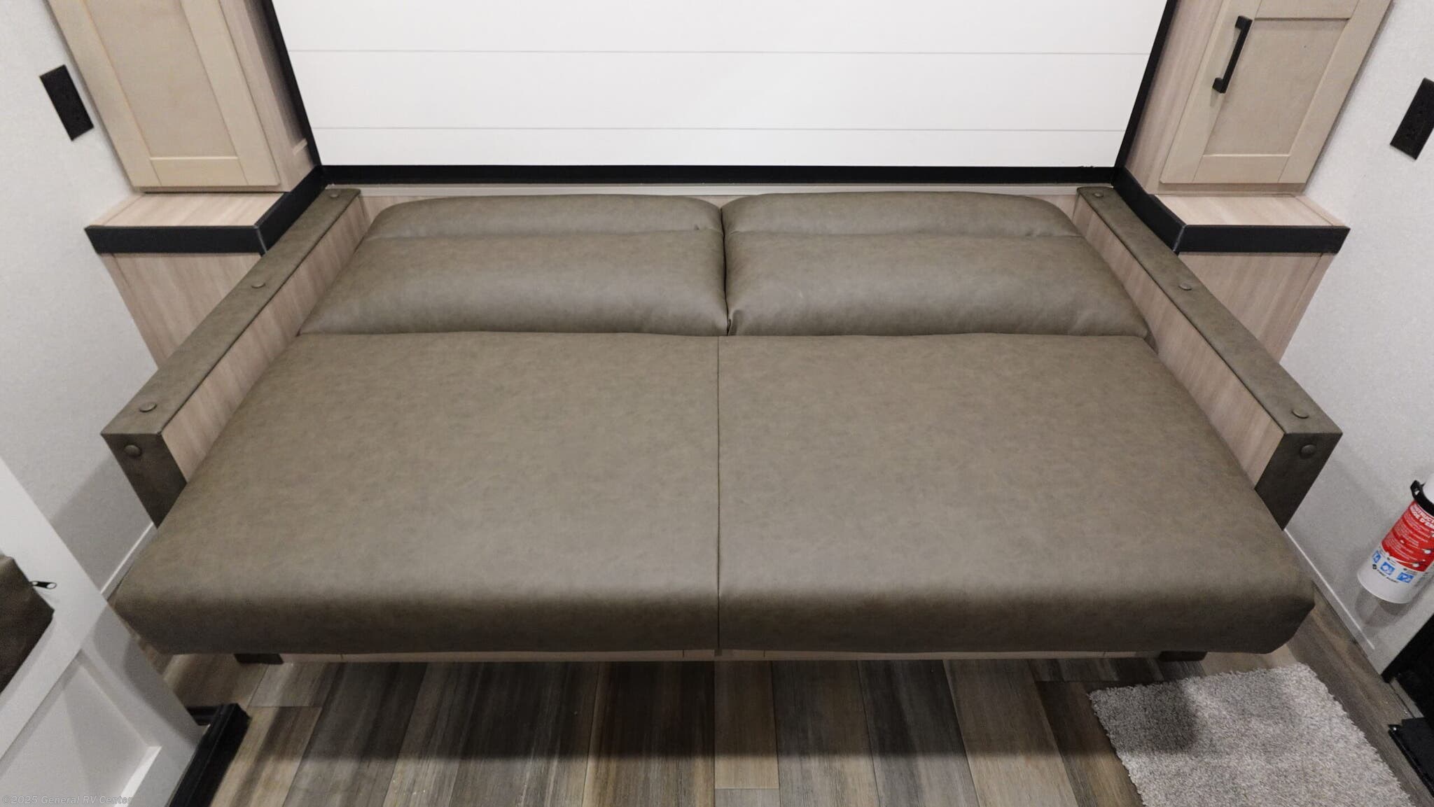 Open Range RV Colt travel trailer 18MBS highlights: Double-Size Bunk Beds Overhead Cabinets Private Bath Front Murphy Bed U-Shaped Dinette Slide This travel trailer features compact sleeping spaces thanks to the double-size bunk beds in the rear corner, and the private full bath is right next to the bunks for easy nighttime use! You'll have the front Murphy bed all to yourselves, and in the morning, you can fold it away to sit on the jack-knife sofa. A cooktop and microwave oven will let you make meals each day, and there is a 12V refrigerator to keep your cold items fresh. Outside, you'll enjoy the 13' power awning for added shade, and there are two exterior storage compartments to keep fishing poles, hiking gear and more! With any Colt travel trailer by Open Range RV, you can be sure you're getting a budget-friendly unit designed to fit your lifestyle! Each one is built to last with a PVC roofing membrane and built-in A-frame, plus there are nitrogen-filled radial tires and self-adjusting electric brakes for easy towing. You will appreciate the utilities that include 30-amp service, an A/C unit, and an on-demand tankless water heater. A few interior comforts include vinyl flooring throughout, solid hardwood cabinet doors, and residential grade kitchen countertops to make your space feel more like home.