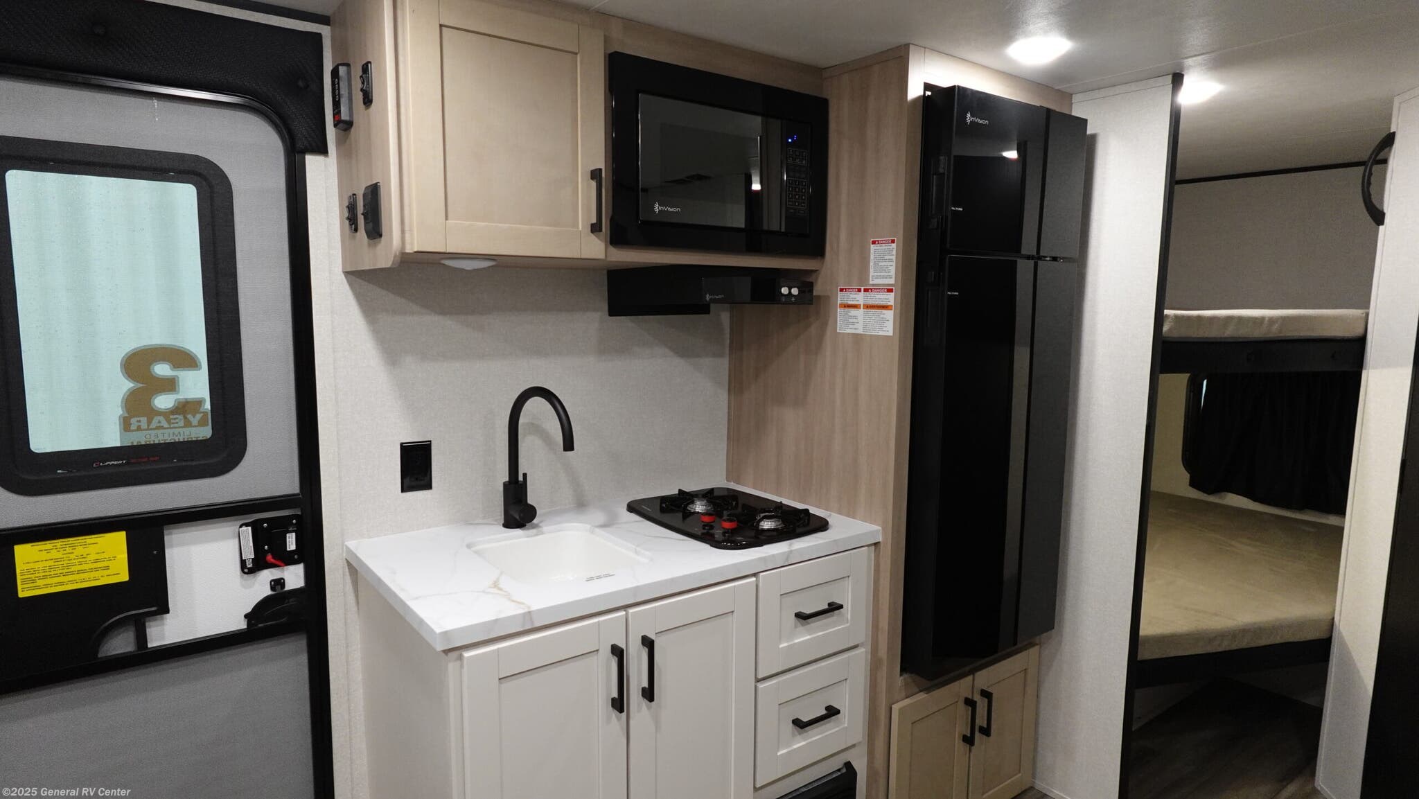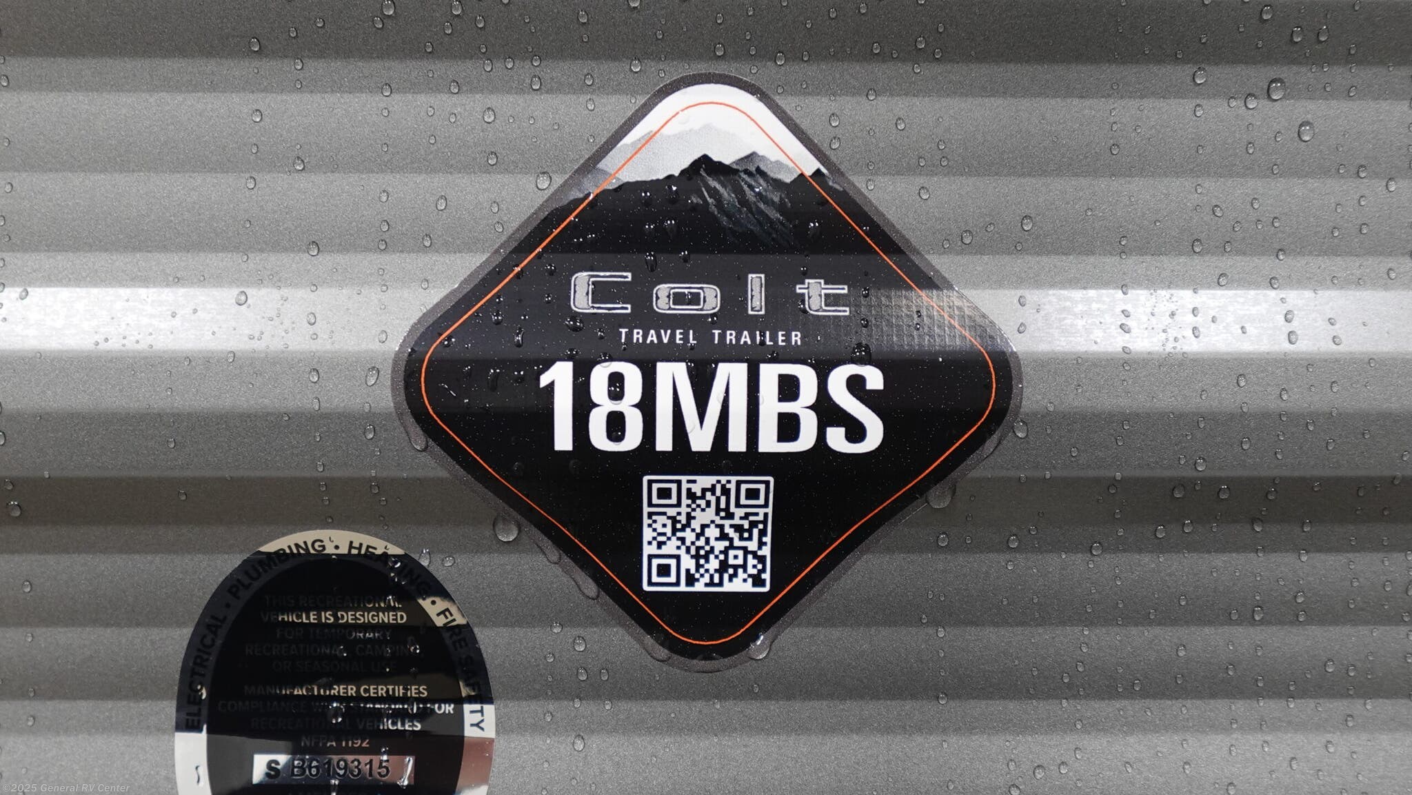 Open Range RV Colt travel trailer 18MBS highlights: Double-Size Bunk Beds Overhead Cabinets Private Bath Front Murphy Bed U-Shaped Dinette Slide This travel trailer features compact sleeping spaces thanks to the double-size bunk beds in the rear corner, and the private full bath is right next to the bunks for easy nighttime use! You'll have the front Murphy bed all to yourselves, and in the morning, you can fold it away to sit on the jack-knife sofa. A cooktop and microwave oven will let you make meals each day, and there is a 12V refrigerator to keep your cold items fresh. Outside, you'll enjoy the 13' power awning for added shade, and there are two exterior storage compartments to keep fishing poles, hiking gear and more! With any Colt travel trailer by Open Range RV, you can be sure you're getting a budget-friendly unit designed to fit your lifestyle! Each one is built to last with a PVC roofing membrane and built-in A-frame, plus there are nitrogen-filled radial tires and self-adjusting electric brakes for easy towing. You will appreciate the utilities that include 30-amp service, an A/C unit, and an on-demand tankless water heater. A few interior comforts include vinyl flooring throughout, solid hardwood cabinet doors, and residential grade kitchen countertops to make your space feel more like home.