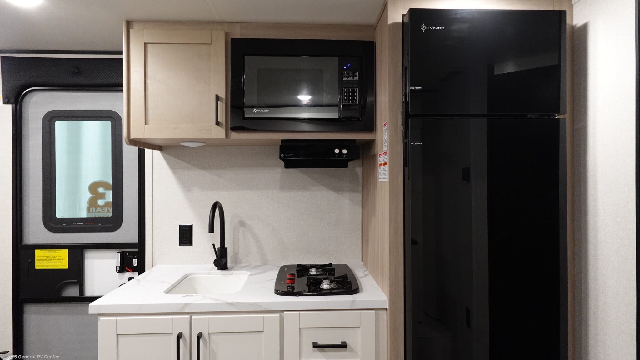 Open Range RV Colt travel trailer 18MBS highlights: Double-Size Bunk Beds Overhead Cabinets Private Bath Front Murphy Bed U-Shaped Dinette Slide This travel trailer features compact sleeping spaces thanks to the double-size bunk beds in the rear corner, and the private full bath is right next to the bunks for easy nighttime use! You'll have the front Murphy bed all to yourselves, and in the morning, you can fold it away to sit on the jack-knife sofa. A cooktop and microwave oven will let you make meals each day, and there is a 12V refrigerator to keep your cold items fresh. Outside, you'll enjoy the 13' power awning for added shade, and there are two exterior storage compartments to keep fishing poles, hiking gear and more! With any Colt travel trailer by Open Range RV, you can be sure you're getting a budget-friendly unit designed to fit your lifestyle! Each one is built to last with a PVC roofing membrane and built-in A-frame, plus there are nitrogen-filled radial tires and self-adjusting electric brakes for easy towing. You will appreciate the utilities that include 30-amp service, an A/C unit, and an on-demand tankless water heater. A few interior comforts include vinyl flooring throughout, solid hardwood cabinet doors, and residential grade kitchen countertops to make your space feel more like home.