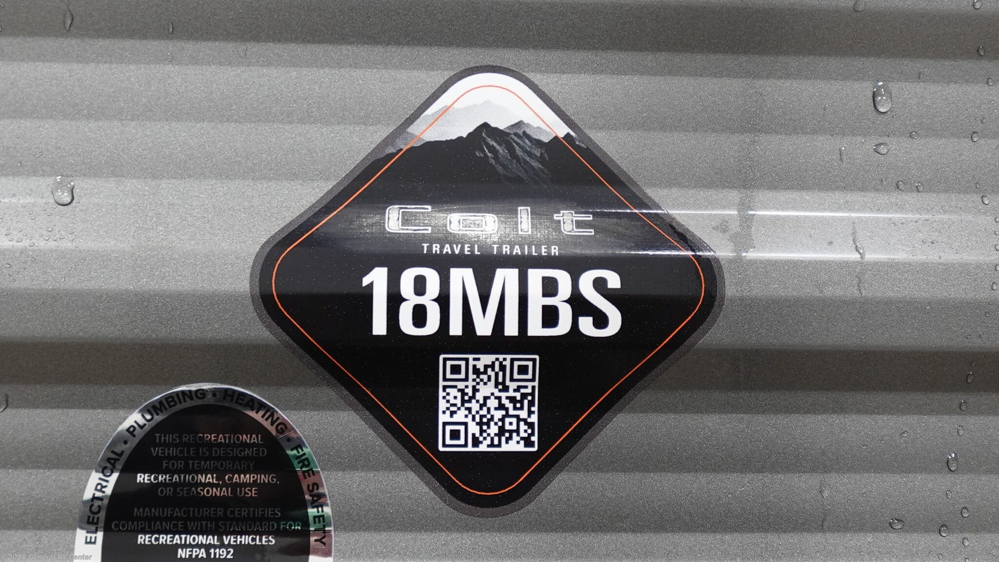 Open Range RV Colt travel trailer 18MBS highlights: Double-Size Bunk Beds Overhead Cabinets Private Bath Front Murphy Bed U-Shaped Dinette Slide This travel trailer features compact sleeping spaces thanks to the double-size bunk beds in the rear corner, and the private full bath is right next to the bunks for easy nighttime use! You'll have the front Murphy bed all to yourselves, and in the morning, you can fold it away to sit on the jack-knife sofa. A cooktop and microwave oven will let you make meals each day, and there is a 12V refrigerator to keep your cold items fresh. Outside, you'll enjoy the 13' power awning for added shade, and there are two exterior storage compartments to keep fishing poles, hiking gear and more! With any Colt travel trailer by Open Range RV, you can be sure you're getting a budget-friendly unit designed to fit your lifestyle! Each one is built to last with a PVC roofing membrane and built-in A-frame, plus there are nitrogen-filled radial tires and self-adjusting electric brakes for easy towing. You will appreciate the utilities that include 30-amp service, an A/C unit, and an on-demand tankless water heater. A few interior comforts include vinyl flooring throughout, solid hardwood cabinet doors, and residential grade kitchen countertops to make your space feel more like home.