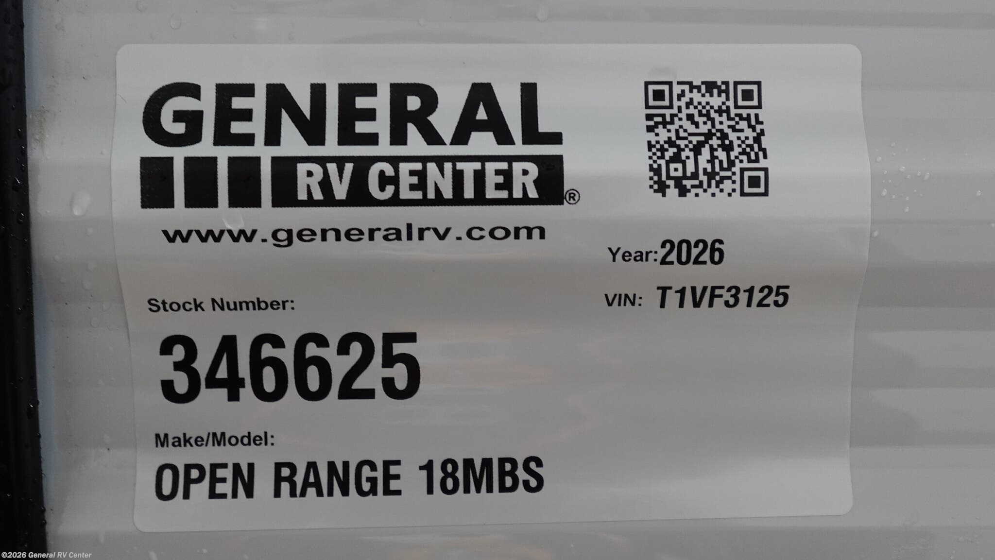 Request More Info on this 2026 Open Range COLT 18MBS Offered for sale by General RV Center