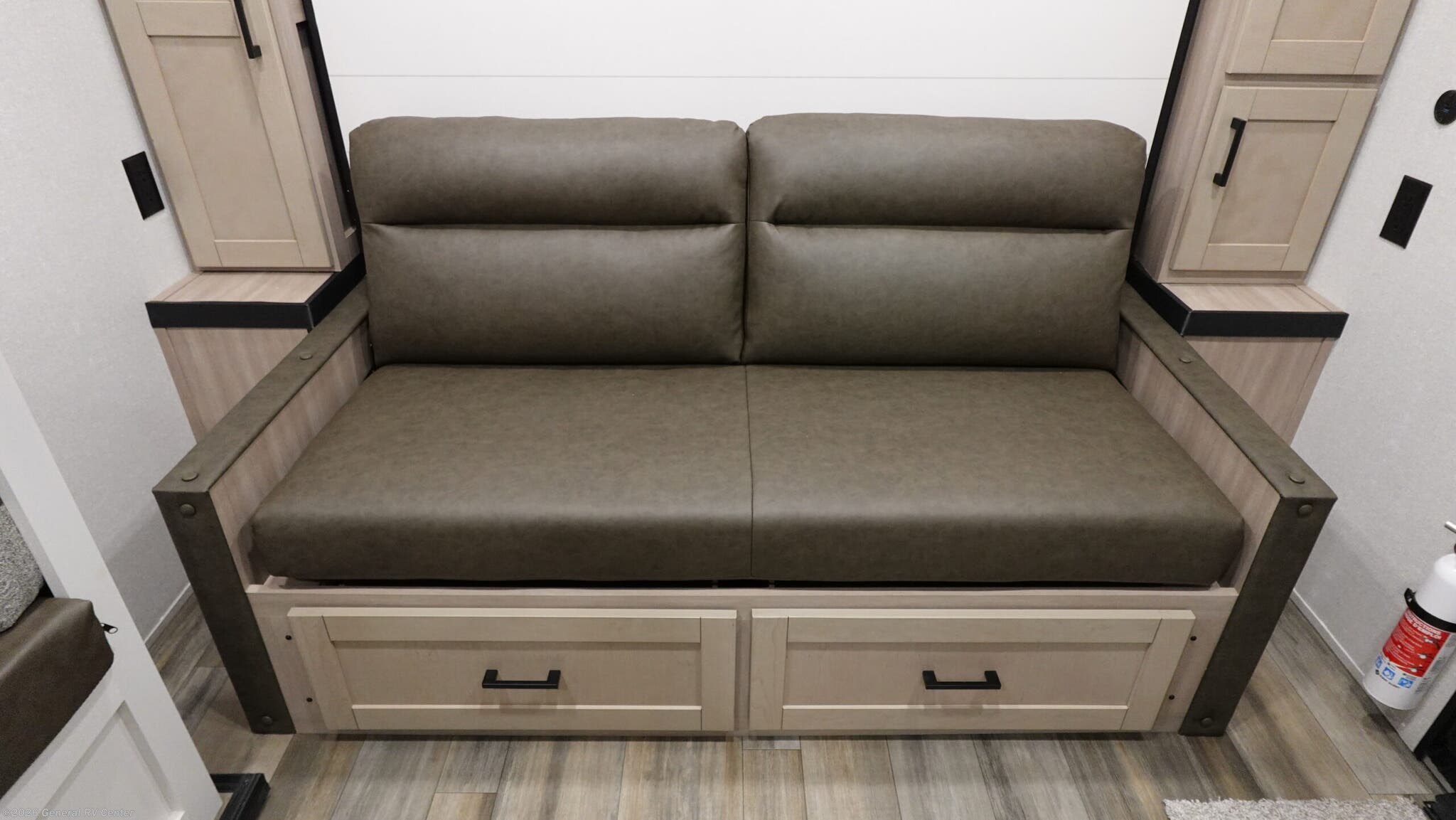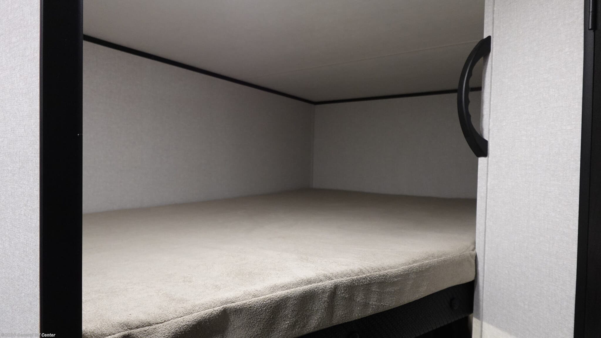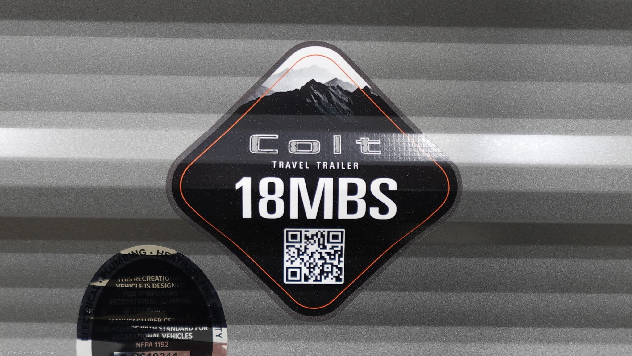 Open Range RV Colt travel trailer 18MBS highlights: Double-Size Bunk Beds Overhead Cabinets Private Bath Front Murphy Bed U-Shaped Dinette Slide This travel trailer features compact sleeping spaces thanks to the double-size bunk beds in the rear corner, and the private full bath is right next to the bunks for easy nighttime use! You'll have the front Murphy bed all to yourselves, and in the morning, you can fold it away to sit on the jack-knife sofa. A cooktop and microwave oven will let you make meals each day, and there is a 12V refrigerator to keep your cold items fresh. Outside, you'll enjoy the 13' power awning for added shade, and there are two exterior storage compartments to keep fishing poles, hiking gear and more! With any Colt travel trailer by Open Range RV, you can be sure you're getting a budget-friendly unit designed to fit your lifestyle! Each one is built to last with a PVC roofing membrane and built-in A-frame, plus there are nitrogen-filled radial tires and self-adjusting electric brakes for easy towing. You will appreciate the utilities that include 30-amp service, an A/C unit, and an on-demand tankless water heater. A few interior comforts include vinyl flooring throughout, solid hardwood cabinet doors, and residential grade kitchen countertops to make your space feel more like home.