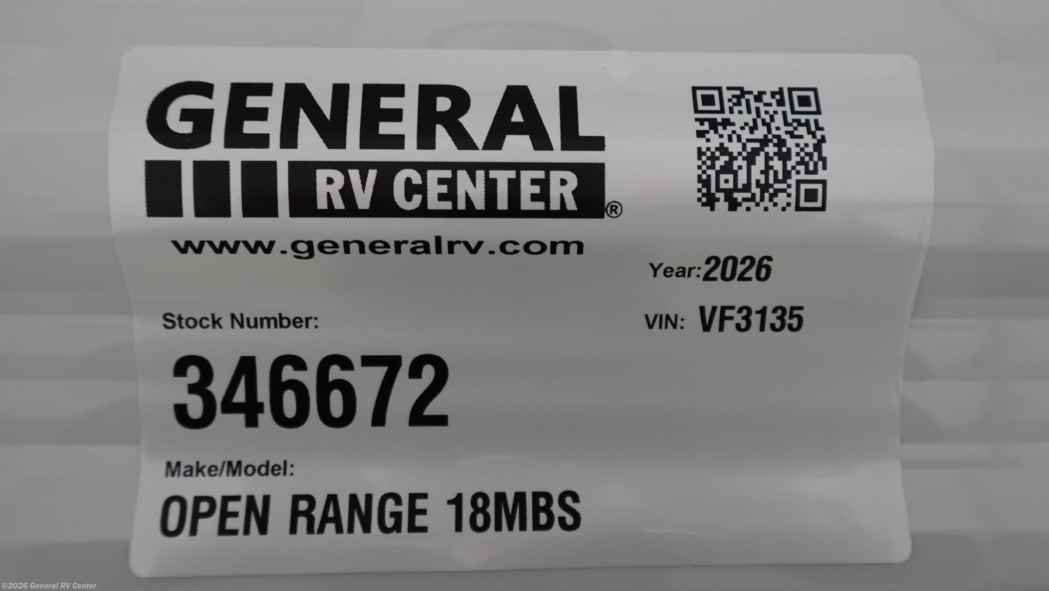 Request More Info on this 2026 Open Range COLT 18MBS Offered for sale by General RV Center