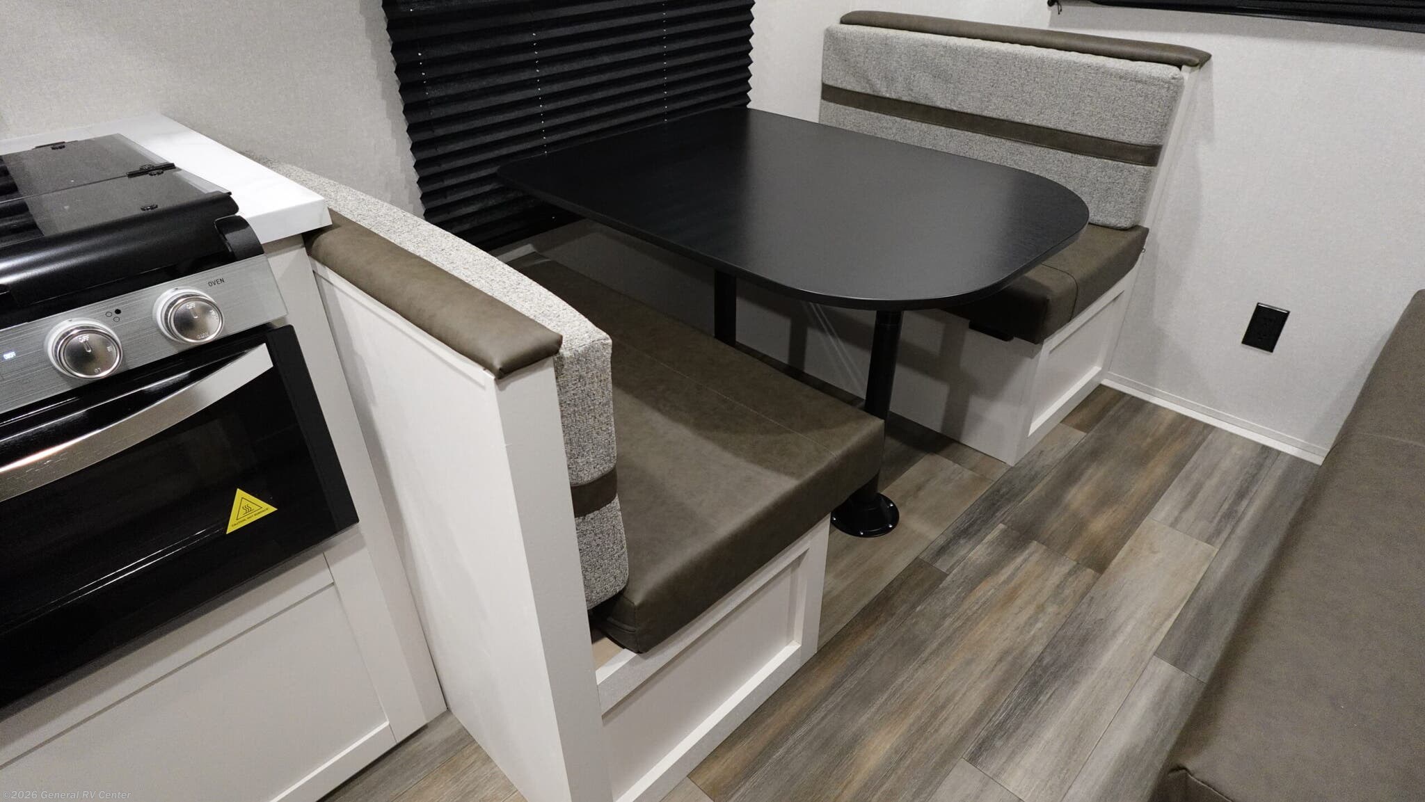 Open Range RV Colt travel trailer 21QB highlights: Front RV Queen Bed Exterior Storage Middle Full Bath 12V Refrigerator Make each camping trip count in this travel trailer that can sleep four to five each night. You'll wake up feeling refreshed on the front RV queen bed, and there are dual bedside wardrobes to keep your things organized. A middle bath includes a 40" tub/shower, which will make bath time easier if you have little ones. Once breakfast is made on the three-burner cooktop, you can dine at the booth dinette or take your plate outdoors to sit under the 16' power awning with LED lights. This unit also includes a jack-knife sofa, which can be used for sleeping space, along with the dinette! With any Colt travel trailer by Open Range RV, you can be sure you're getting a budget-friendly unit designed to fit your lifestyle! Each one is built to last with a PVC roofing membrane and built-in A-frame, plus there are nitrogen-filled radial tires and self-adjusting electric brakes for easy towing. You will appreciate the utilities that include 30-amp service, an A/C unit, and an on-demand tankless water heater. A few interior comforts include vinyl flooring throughout, solid hardwood cabinet doors, and residential grade kitchen countertops to make your space feel more like home.