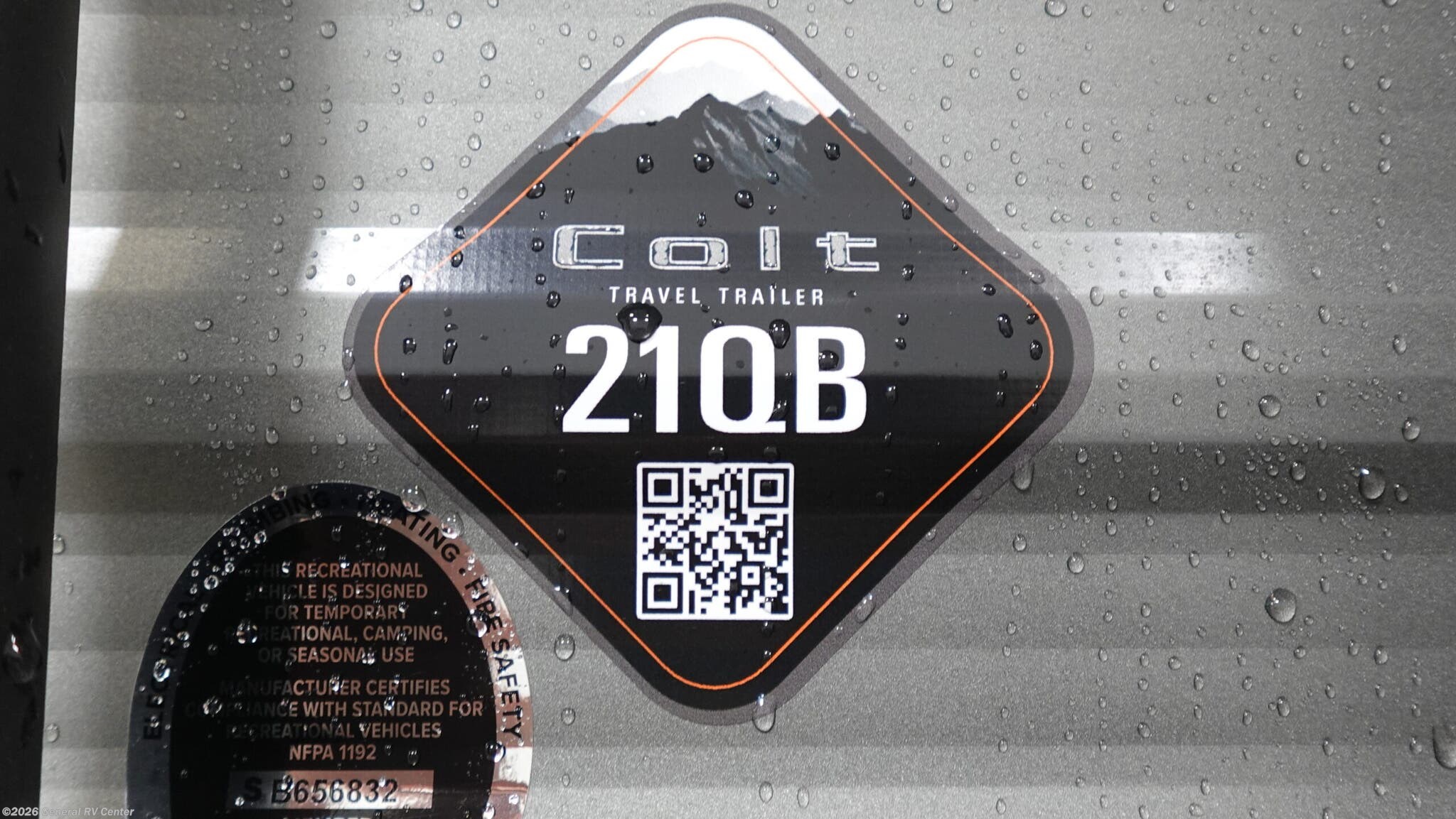 Open Range RV Colt travel trailer 21QB highlights: Front RV Queen Bed Exterior Storage Middle Full Bath 12V Refrigerator Make each camping trip count in this travel trailer that can sleep four to five each night. You'll wake up feeling refreshed on the front RV queen bed, and there are dual bedside wardrobes to keep your things organized. A middle bath includes a 40" tub/shower, which will make bath time easier if you have little ones. Once breakfast is made on the three-burner cooktop, you can dine at the booth dinette or take your plate outdoors to sit under the 16' power awning with LED lights. This unit also includes a jack-knife sofa, which can be used for sleeping space, along with the dinette! With any Colt travel trailer by Open Range RV, you can be sure you're getting a budget-friendly unit designed to fit your lifestyle! Each one is built to last with a PVC roofing membrane and built-in A-frame, plus there are nitrogen-filled radial tires and self-adjusting electric brakes for easy towing. You will appreciate the utilities that include 30-amp service, an A/C unit, and an on-demand tankless water heater. A few interior comforts include vinyl flooring throughout, solid hardwood cabinet doors, and residential grade kitchen countertops to make your space feel more like home.