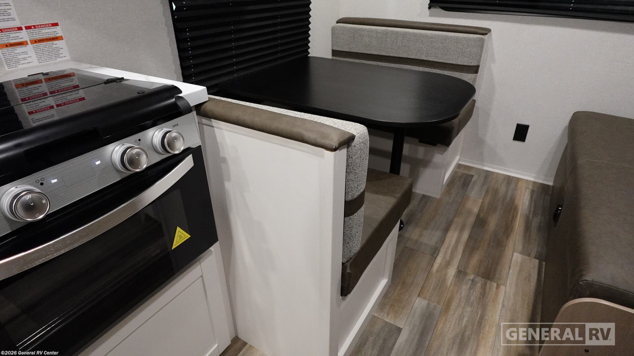 Open Range RV Colt travel trailer 21QB highlights: Front RV Queen Bed Exterior Storage Middle Full Bath 12V Refrigerator Make each camping trip count in this travel trailer that can sleep four to five each night. You'll wake up feeling refreshed on the front RV queen bed, and there are dual bedside wardrobes to keep your things organized. A middle bath includes a 40" tub/shower, which will make bath time easier if you have little ones. Once breakfast is made on the three-burner cooktop, you can dine at the booth dinette or take your plate outdoors to sit under the 16' power awning with LED lights. This unit also includes a jack-knife sofa, which can be used for sleeping space, along with the dinette! With any Colt travel trailer by Open Range RV, you can be sure you're getting a budget-friendly unit designed to fit your lifestyle! Each one is built to last with a PVC roofing membrane and built-in A-frame, plus there are nitrogen-filled radial tires and self-adjusting electric brakes for easy towing. You will appreciate the utilities that include 30-amp service, an A/C unit, and an on-demand tankless water heater. A few interior comforts include vinyl flooring throughout, solid hardwood cabinet doors, and residential grade kitchen countertops to make your space feel more like home.