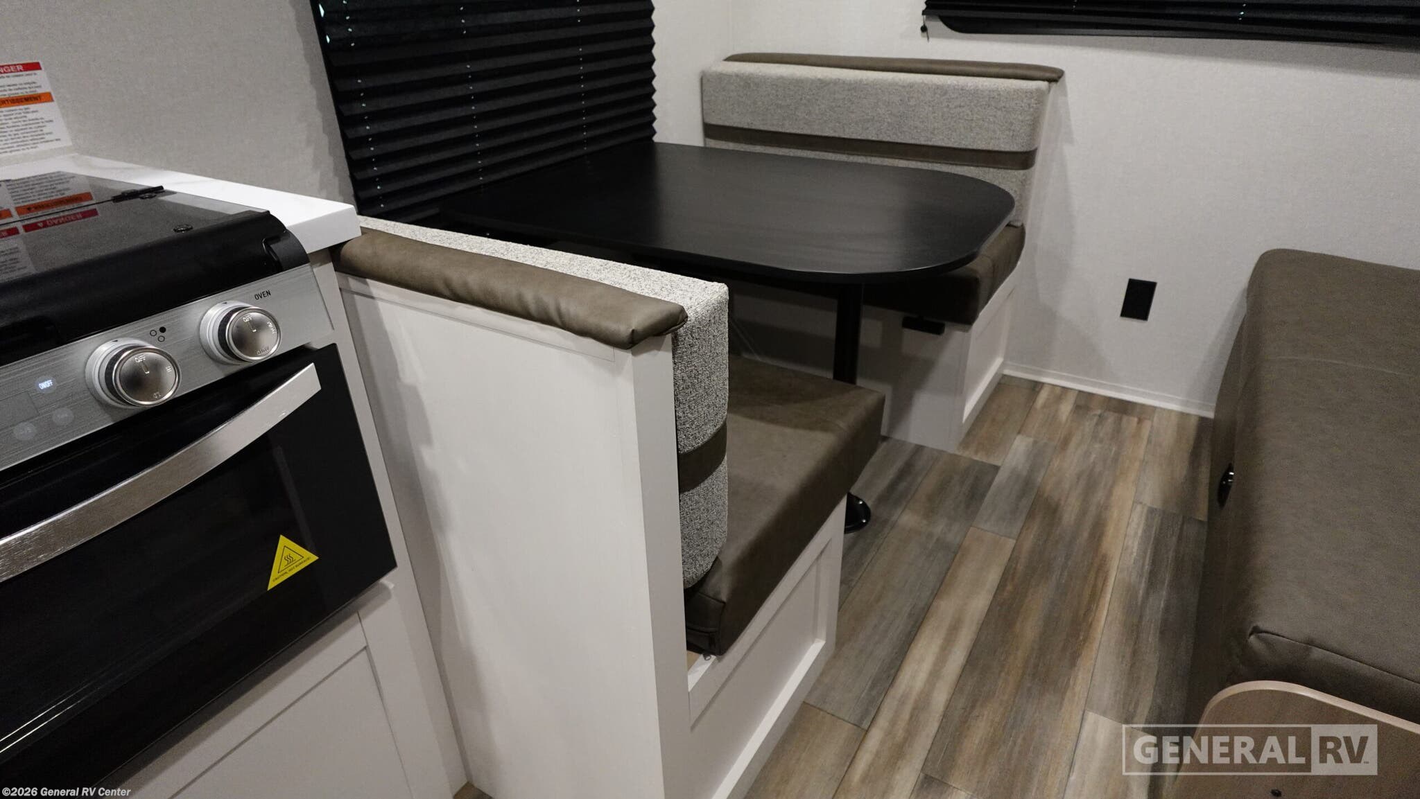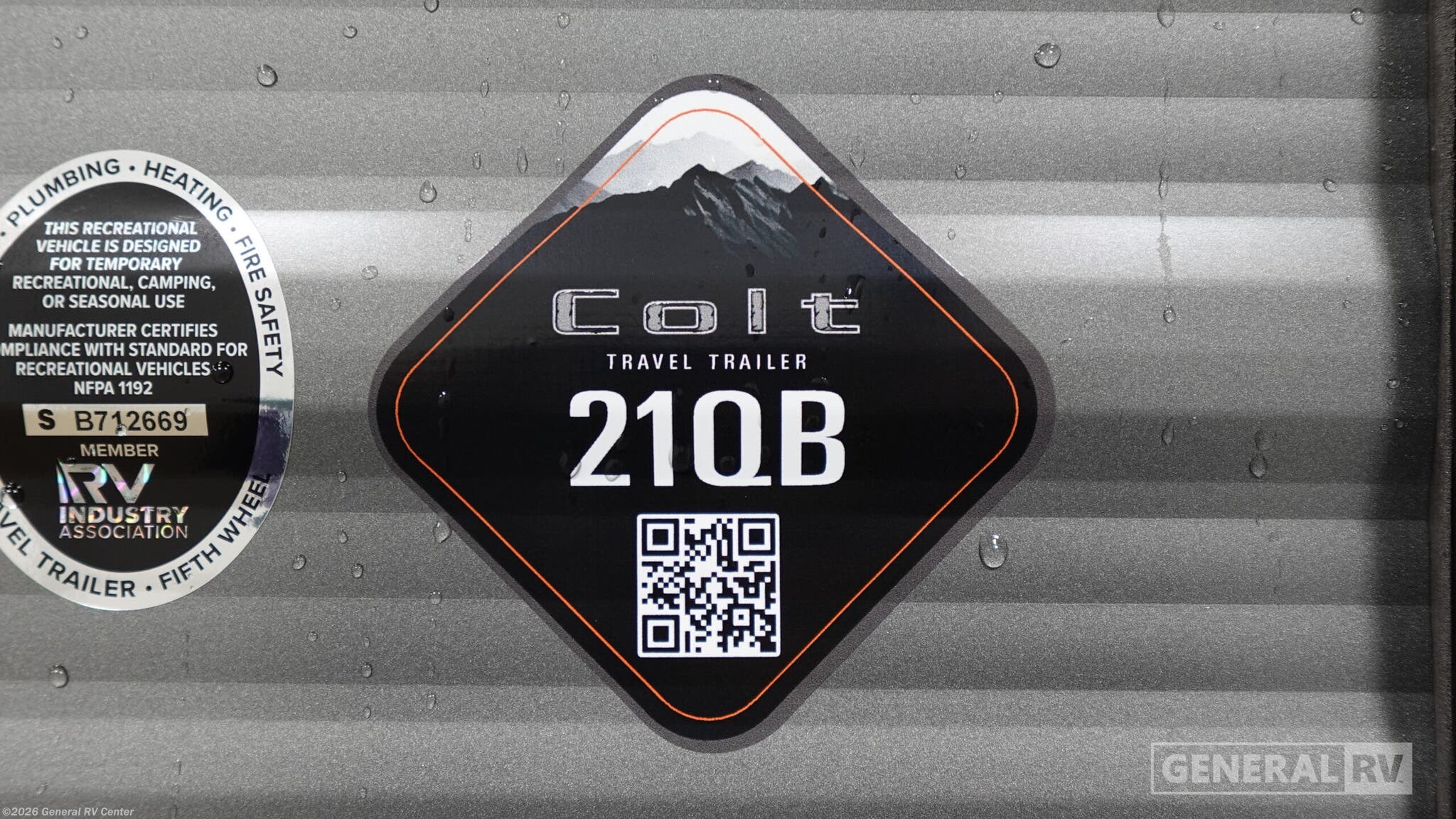 Open Range RV Colt travel trailer 21QB highlights: Front RV Queen Bed Exterior Storage Middle Full Bath 12V Refrigerator Make each camping trip count in this travel trailer that can sleep four to five each night. You'll wake up feeling refreshed on the front RV queen bed, and there are dual bedside wardrobes to keep your things organized. A middle bath includes a 40" tub/shower, which will make bath time easier if you have little ones. Once breakfast is made on the three-burner cooktop, you can dine at the booth dinette or take your plate outdoors to sit under the 16' power awning with LED lights. This unit also includes a jack-knife sofa, which can be used for sleeping space, along with the dinette! With any Colt travel trailer by Open Range RV, you can be sure you're getting a budget-friendly unit designed to fit your lifestyle! Each one is built to last with a PVC roofing membrane and built-in A-frame, plus there are nitrogen-filled radial tires and self-adjusting electric brakes for easy towing. You will appreciate the utilities that include 30-amp service, an A/C unit, and an on-demand tankless water heater. A few interior comforts include vinyl flooring throughout, solid hardwood cabinet doors, and residential grade kitchen countertops to make your space feel more like home.
