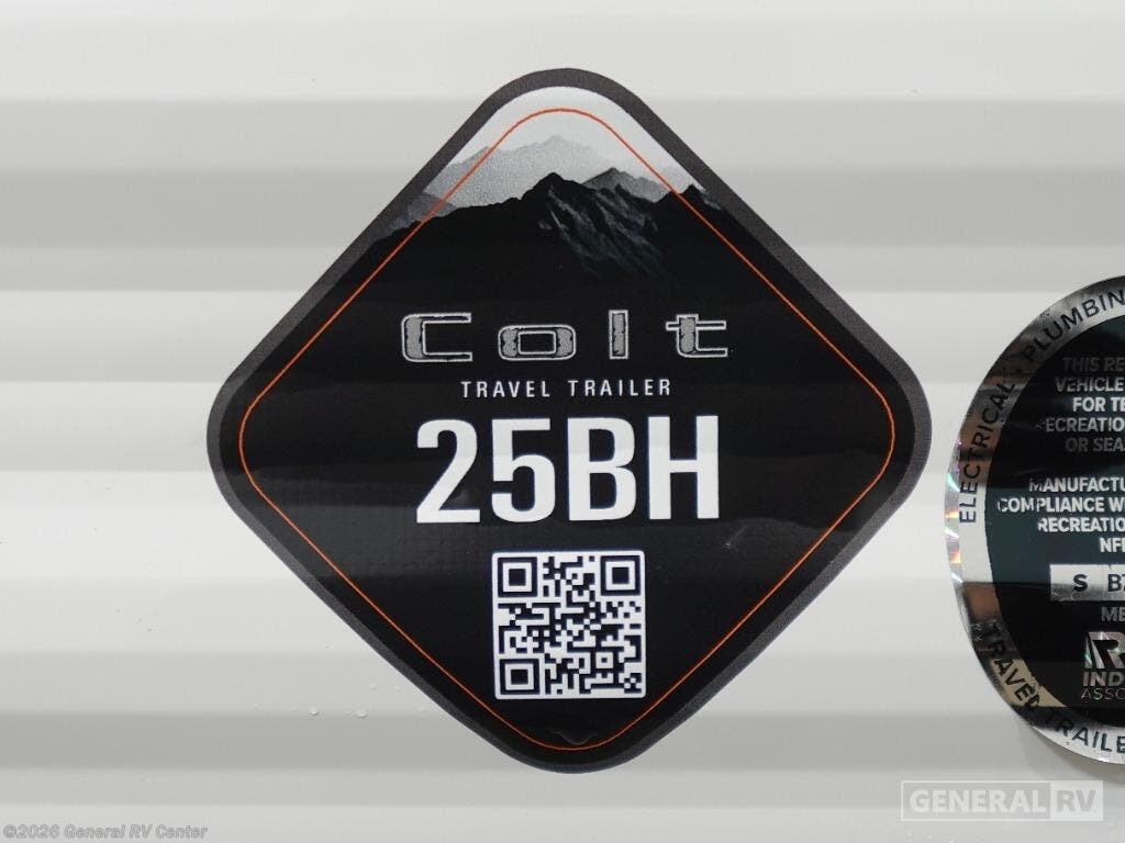 Open Range RV Colt travel trailer 25BH - CTR Edition highlights: Front Queen Bed Jack-Knife Sofa Private Bath 12' Power Awning If you enjoy camping with a larger group, this travel trailer is perfect for you! There are double-size bunks in the back, which are right next to the private bath with a toilet and 40" shower. You can take the front queen bed with dual wardrobes, and any other guests can convert the sofa and booth dinette to sleeping space. A two-burner cooktop will let you make breakfast for everyone in the morning, and a 12V refrigerator will keep your perishables fresh! With any Colt travel trailer by Open Range RV, you can be sure you're getting a budget-friendly unit designed to fit your lifestyle! Each one is built to last with a PVC roofing membrane and built-in A-frame, plus there are nitrogen-filled radial tires and self-adjusting electric brakes for easy towing. You will appreciate the utilities that include 30-amp service, an A/C unit, and an on-demand tankless water heater. A few interior comforts include vinyl flooring throughout, solid hardwood cabinet doors, and residential grade kitchen countertops to make your space feel more like home.