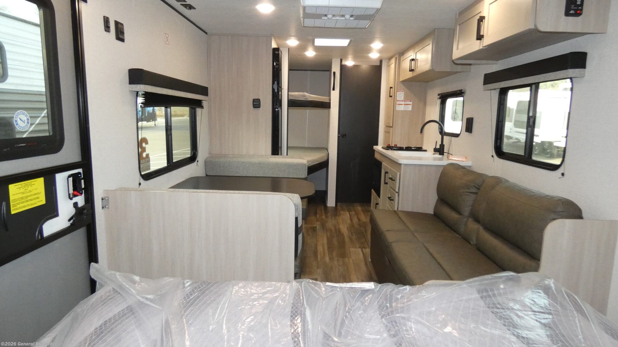 Open Range RV Colt travel trailer 25BH - CTR Edition highlights: Front Queen Bed Jack-Knife Sofa Private Bath 12' Power Awning If you enjoy camping with a larger group, this travel trailer is perfect for you! There are double-size bunks in the back, which are right next to the private bath with a toilet and 40" shower. You can take the front queen bed with dual wardrobes, and any other guests can convert the sofa and booth dinette to sleeping space. A two-burner cooktop will let you make breakfast for everyone in the morning, and a 12V refrigerator will keep your perishables fresh! With any Colt travel trailer by Open Range RV, you can be sure you're getting a budget-friendly unit designed to fit your lifestyle! Each one is built to last with a PVC roofing membrane and built-in A-frame, plus there are nitrogen-filled radial tires and self-adjusting electric brakes for easy towing. You will appreciate the utilities that include 30-amp service, an A/C unit, and an on-demand tankless water heater. A few interior comforts include vinyl flooring throughout, solid hardwood cabinet doors, and residential grade kitchen countertops to make your space feel more like home.