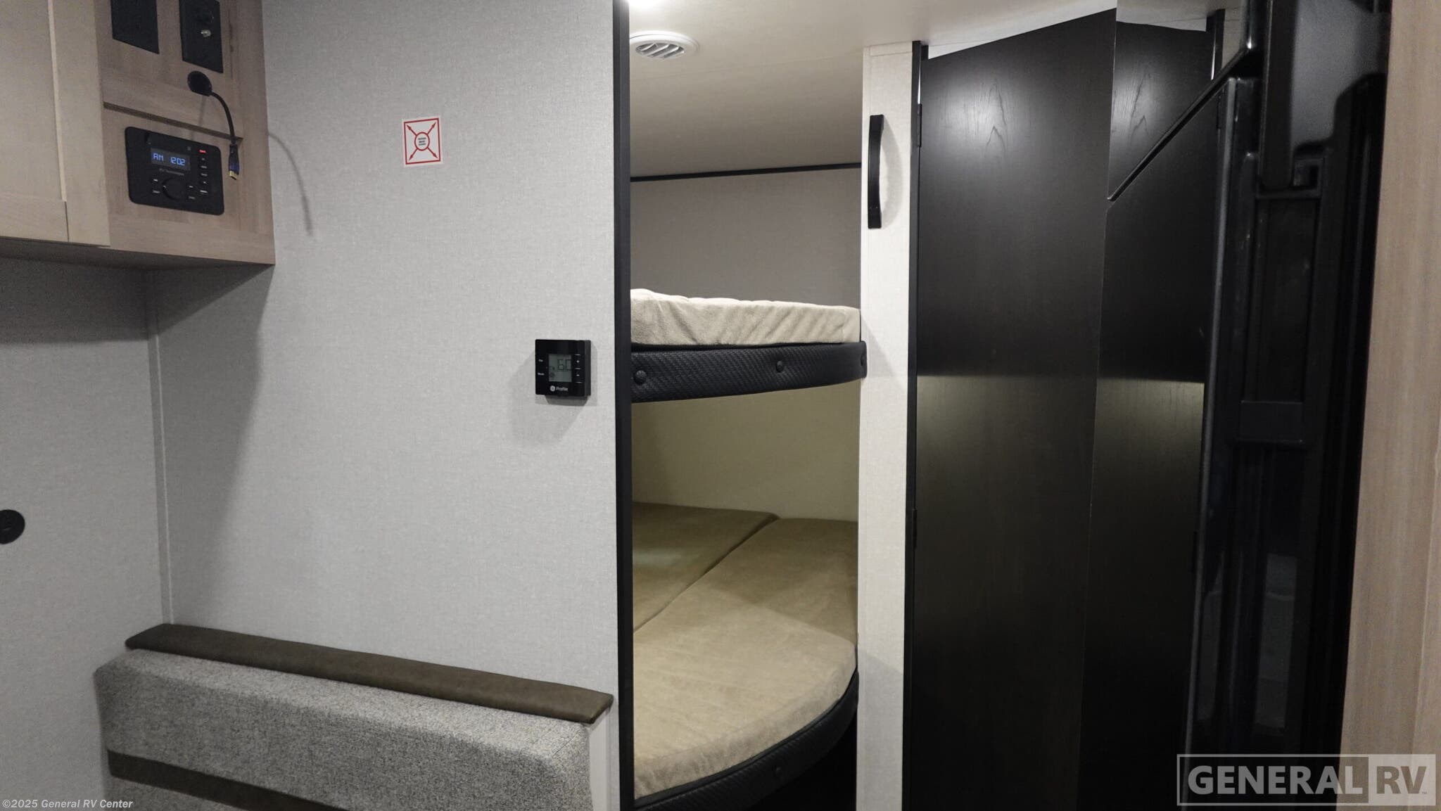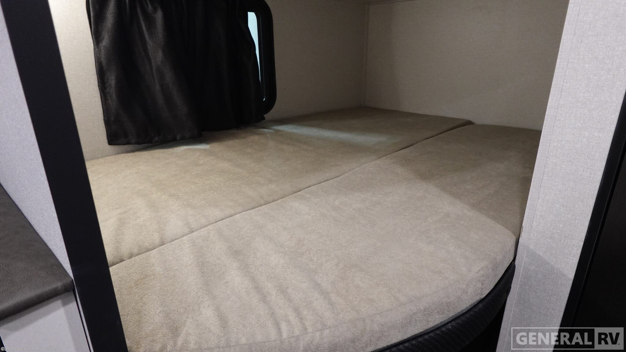 Open Range RV Colt travel trailer 26DB highlights: Semi-Private Front Bedroom Jack-Knife Sofa Private Bath 16' Power Awning with LED Lights Exterior Storage If you enjoy camping with a larger group, this travel trailer is perfect for you! There are double-size bunks in the back, which are right next to the private bath with a toilet and 40" tub/shower. You can take the front RV queen bed with dual wardrobes and a privacy curtain, and any other guests can convert the sofa and booth dinette to sleeping space. A three-burner cooktop will let you make breakfast for everyone in the morning, and a 12V refrigerator will keep your perishables fresh! With any Colt travel trailer by Open Range RV, you can be sure you're getting a budget-friendly unit designed to fit your lifestyle! Each one is built to last with a PVC roofing membrane and built-in A-frame, plus there are nitrogen-filled radial tires and self-adjusting electric brakes for easy towing. You will appreciate the utilities that include 30-amp service, an A/C unit, and an on-demand tankless water heater. A few interior comforts include vinyl flooring throughout, solid hardwood cabinet doors, and residential grade kitchen countertops to make your space feel more like home. There are additional features available, depending on the edition you choose!