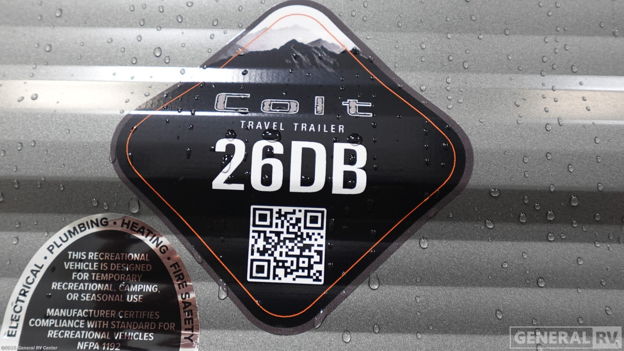 Open Range RV Colt travel trailer 26DB highlights: Semi-Private Front Bedroom Jack-Knife Sofa Private Bath 16' Power Awning with LED Lights Exterior Storage If you enjoy camping with a larger group, this travel trailer is perfect for you! There are double-size bunks in the back, which are right next to the private bath with a toilet and 40" tub/shower. You can take the front RV queen bed with dual wardrobes and a privacy curtain, and any other guests can convert the sofa and booth dinette to sleeping space. A three-burner cooktop will let you make breakfast for everyone in the morning, and a 12V refrigerator will keep your perishables fresh! With any Colt travel trailer by Open Range RV, you can be sure you're getting a budget-friendly unit designed to fit your lifestyle! Each one is built to last with a PVC roofing membrane and built-in A-frame, plus there are nitrogen-filled radial tires and self-adjusting electric brakes for easy towing. You will appreciate the utilities that include 30-amp service, an A/C unit, and an on-demand tankless water heater. A few interior comforts include vinyl flooring throughout, solid hardwood cabinet doors, and residential grade kitchen countertops to make your space feel more like home. There are additional features available, depending on the edition you choose!