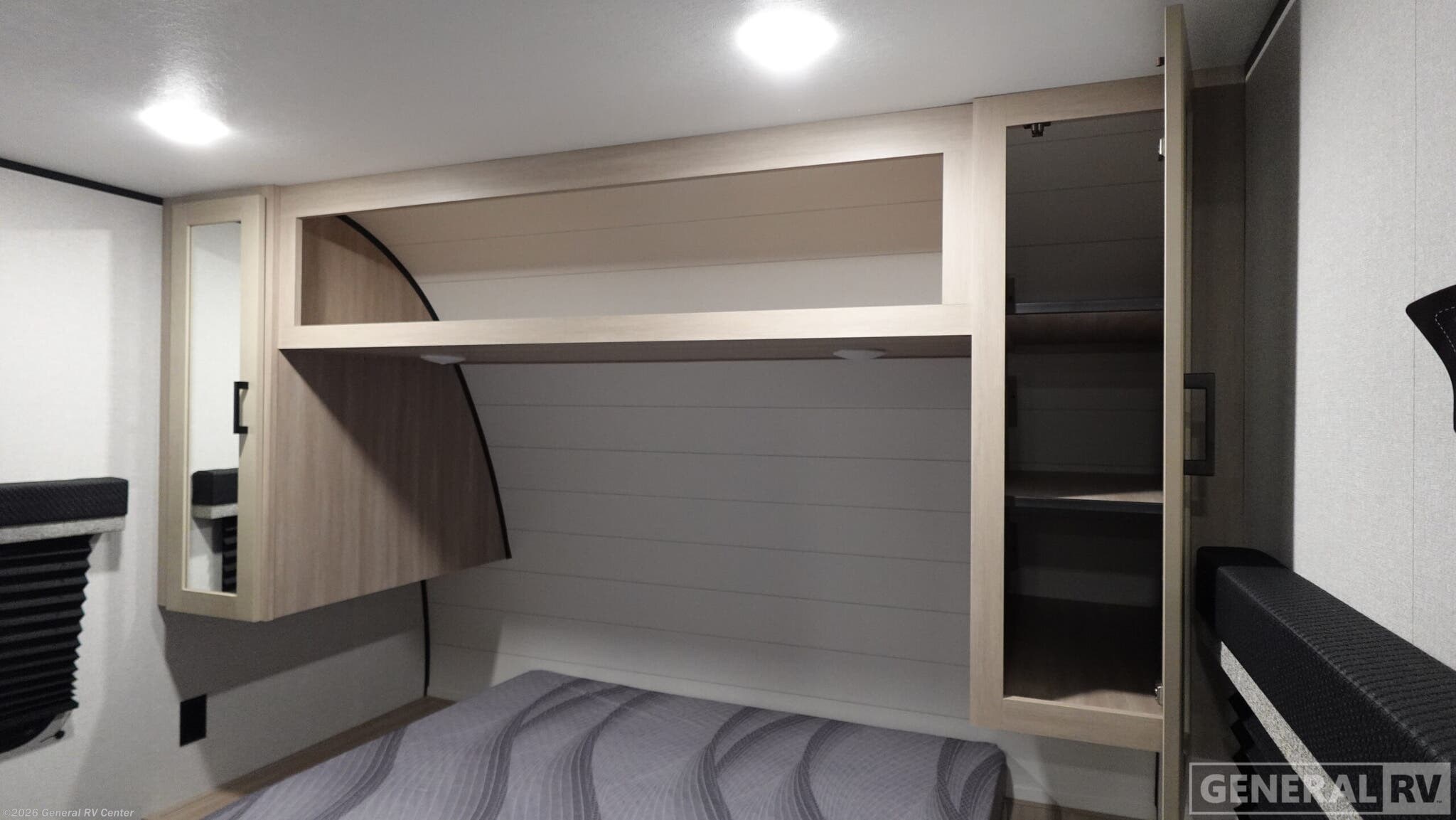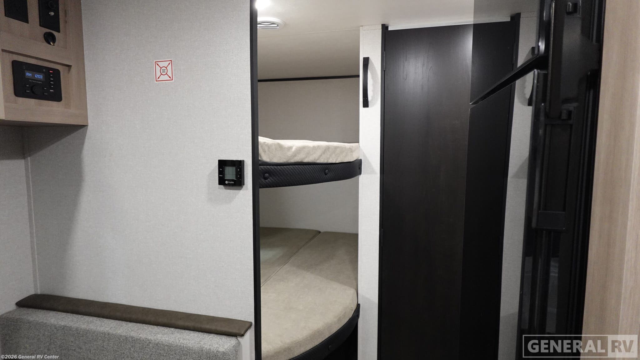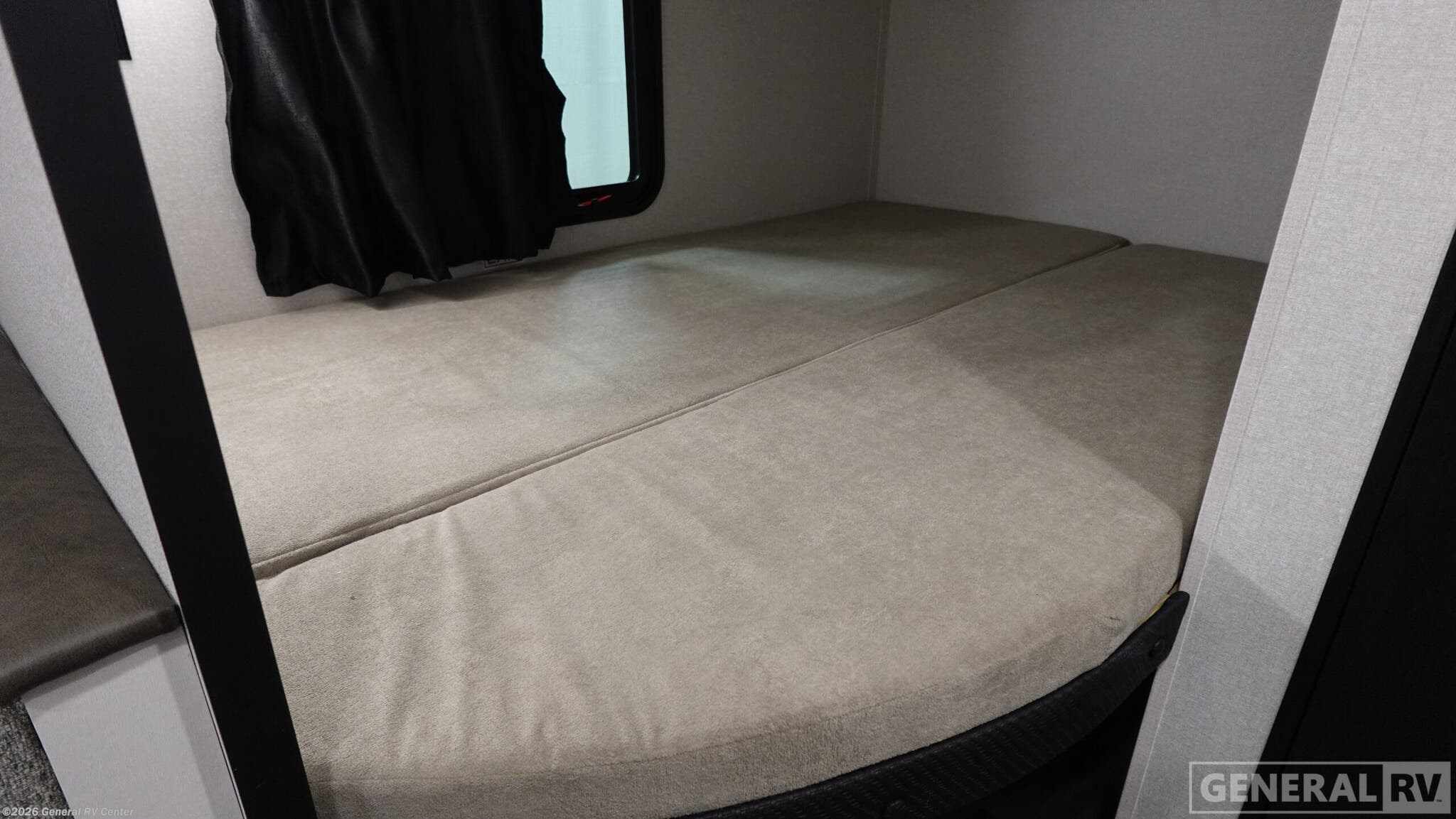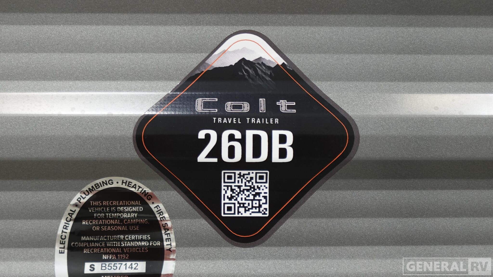 Open Range RV Colt travel trailer 26DB highlights: Semi-Private Front Bedroom Jack-Knife Sofa Private Bath 16' Power Awning with LED Lights Exterior Storage If you enjoy camping with a larger group, this travel trailer is perfect for you! There are double-size bunks in the back, which are right next to the private bath with a toilet and 40" tub/shower. You can take the front RV queen bed with dual wardrobes and a privacy curtain, and any other guests can convert the sofa and booth dinette to sleeping space. A three-burner cooktop will let you make breakfast for everyone in the morning, and a 12V refrigerator will keep your perishables fresh! With any Colt travel trailer by Open Range RV, you can be sure you're getting a budget-friendly unit designed to fit your lifestyle! Each one is built to last with a PVC roofing membrane and built-in A-frame, plus there are nitrogen-filled radial tires and self-adjusting electric brakes for easy towing. You will appreciate the utilities that include 30-amp service, an A/C unit, and an on-demand tankless water heater. A few interior comforts include vinyl flooring throughout, solid hardwood cabinet doors, and residential grade kitchen countertops to make your space feel more like home.