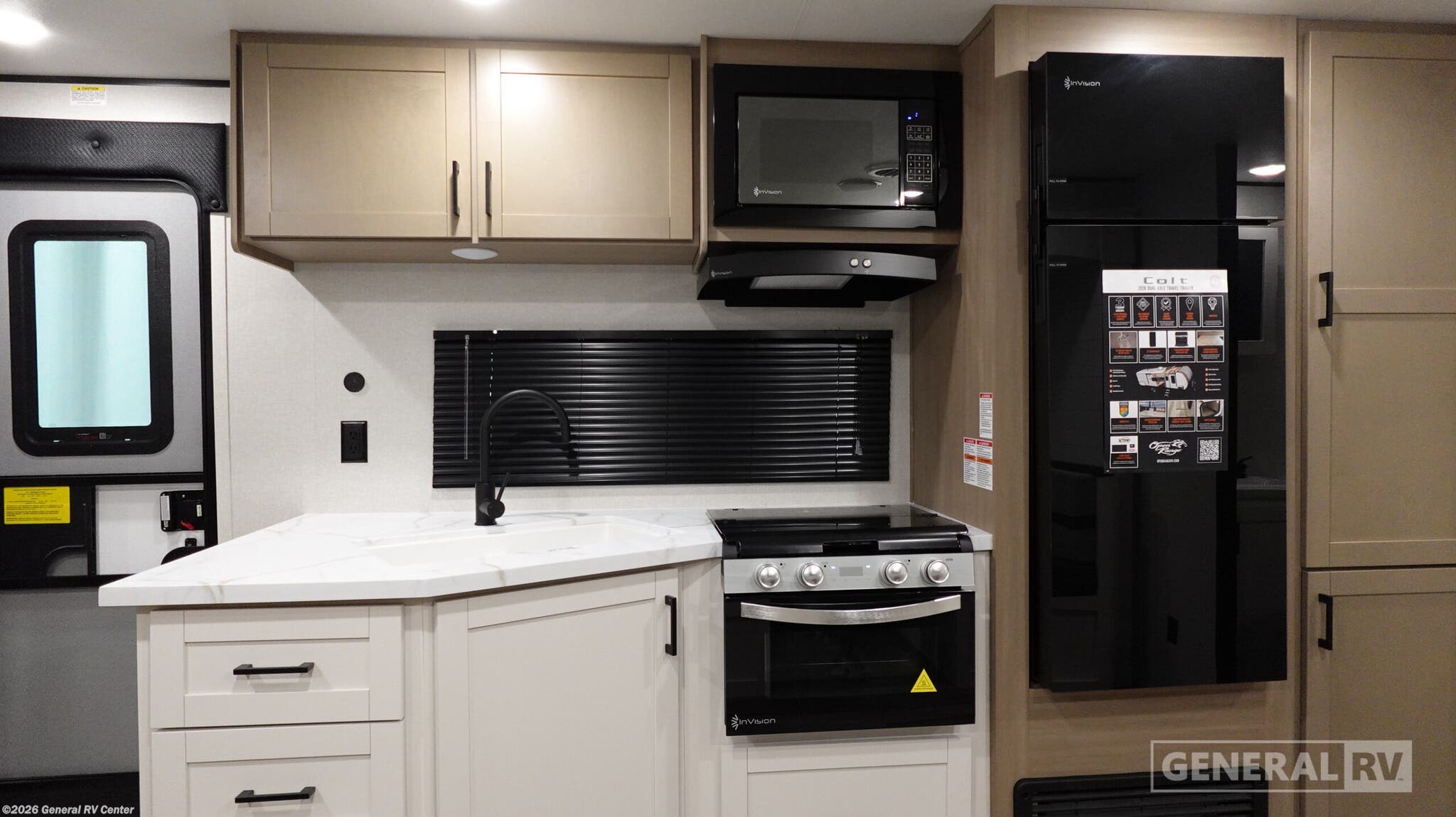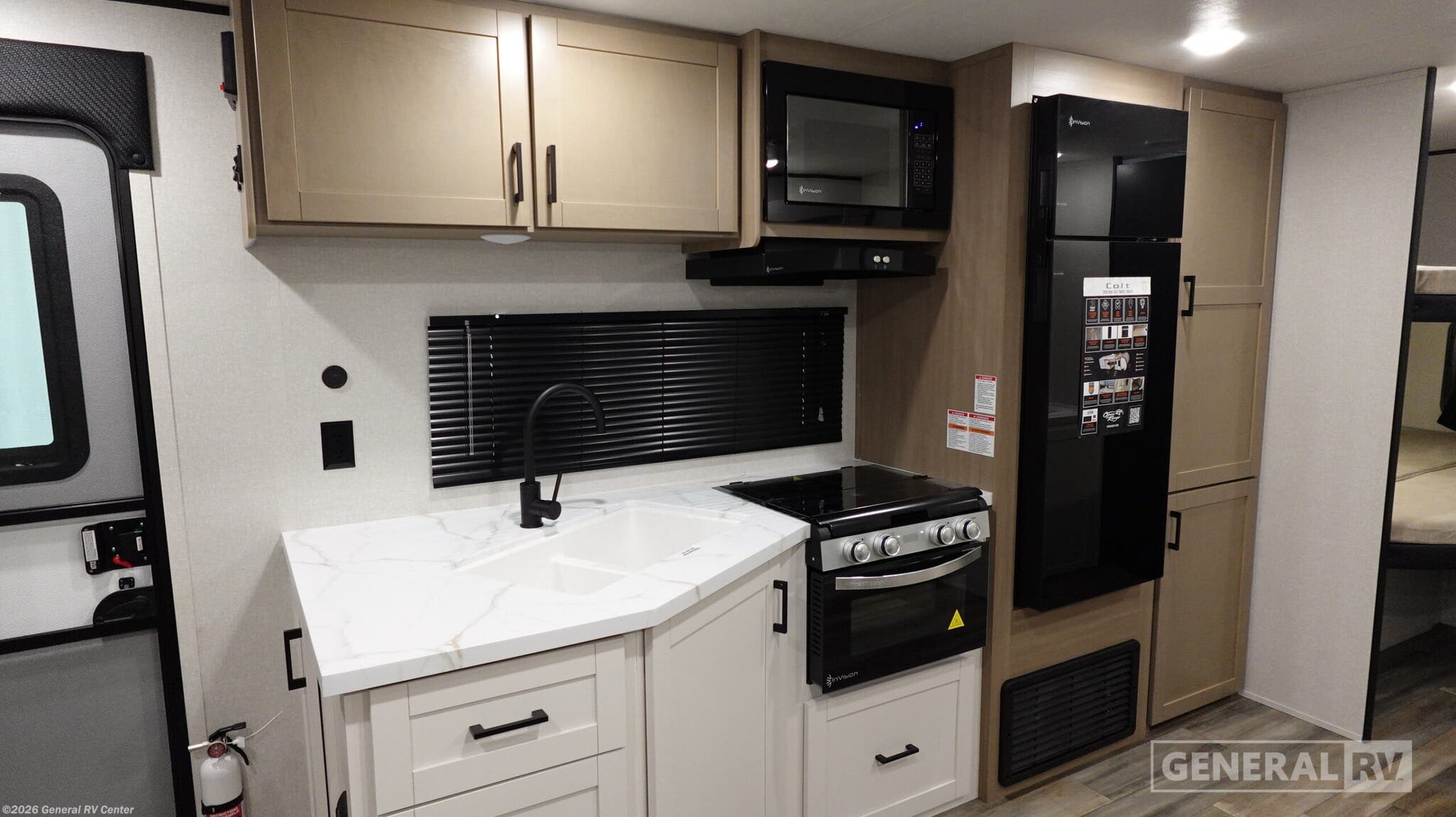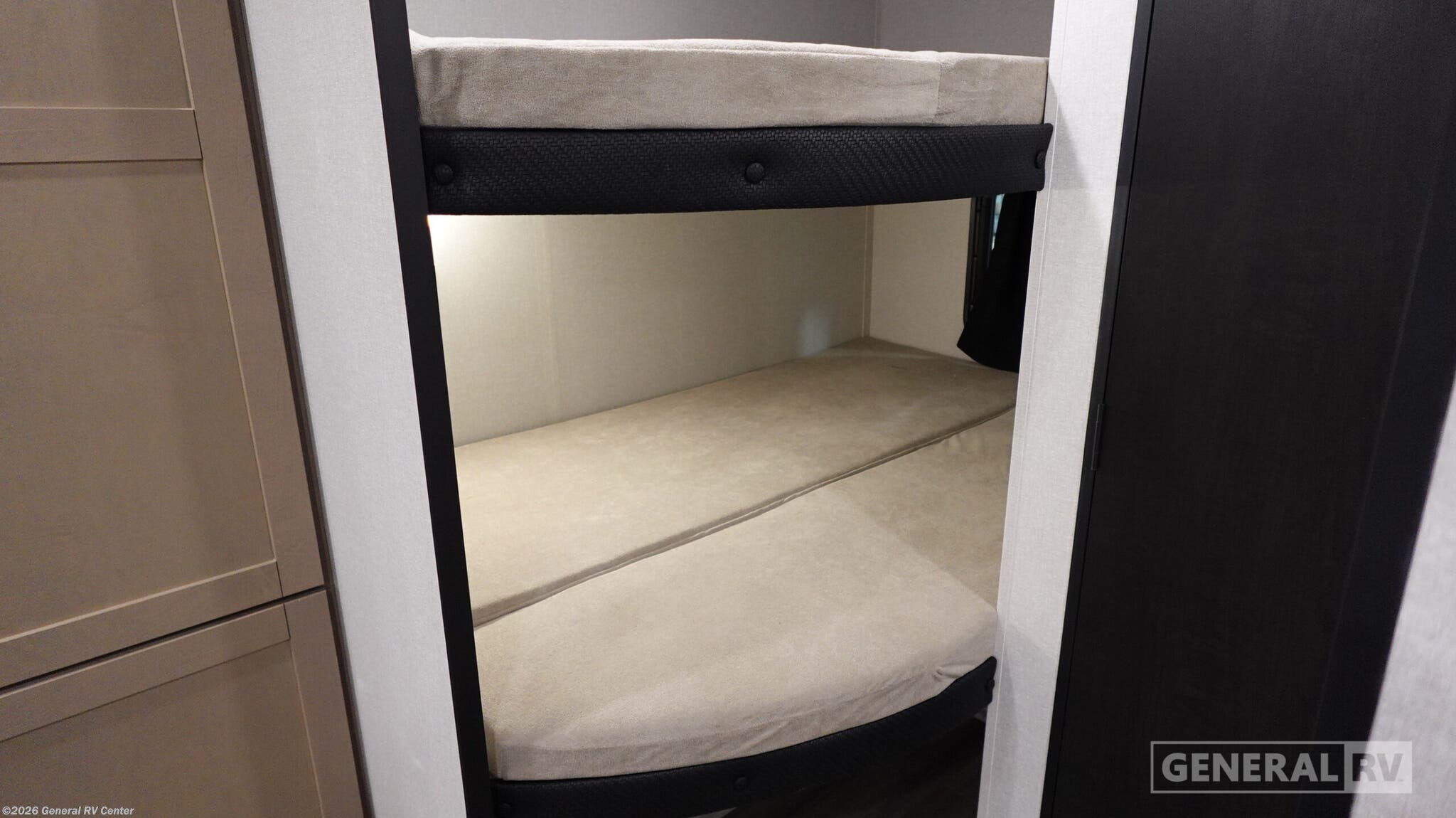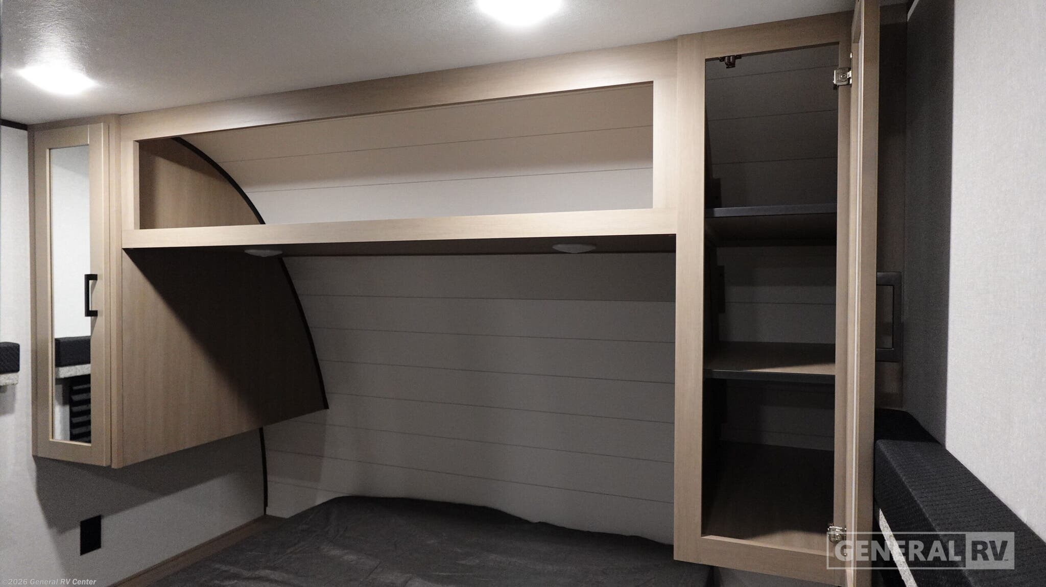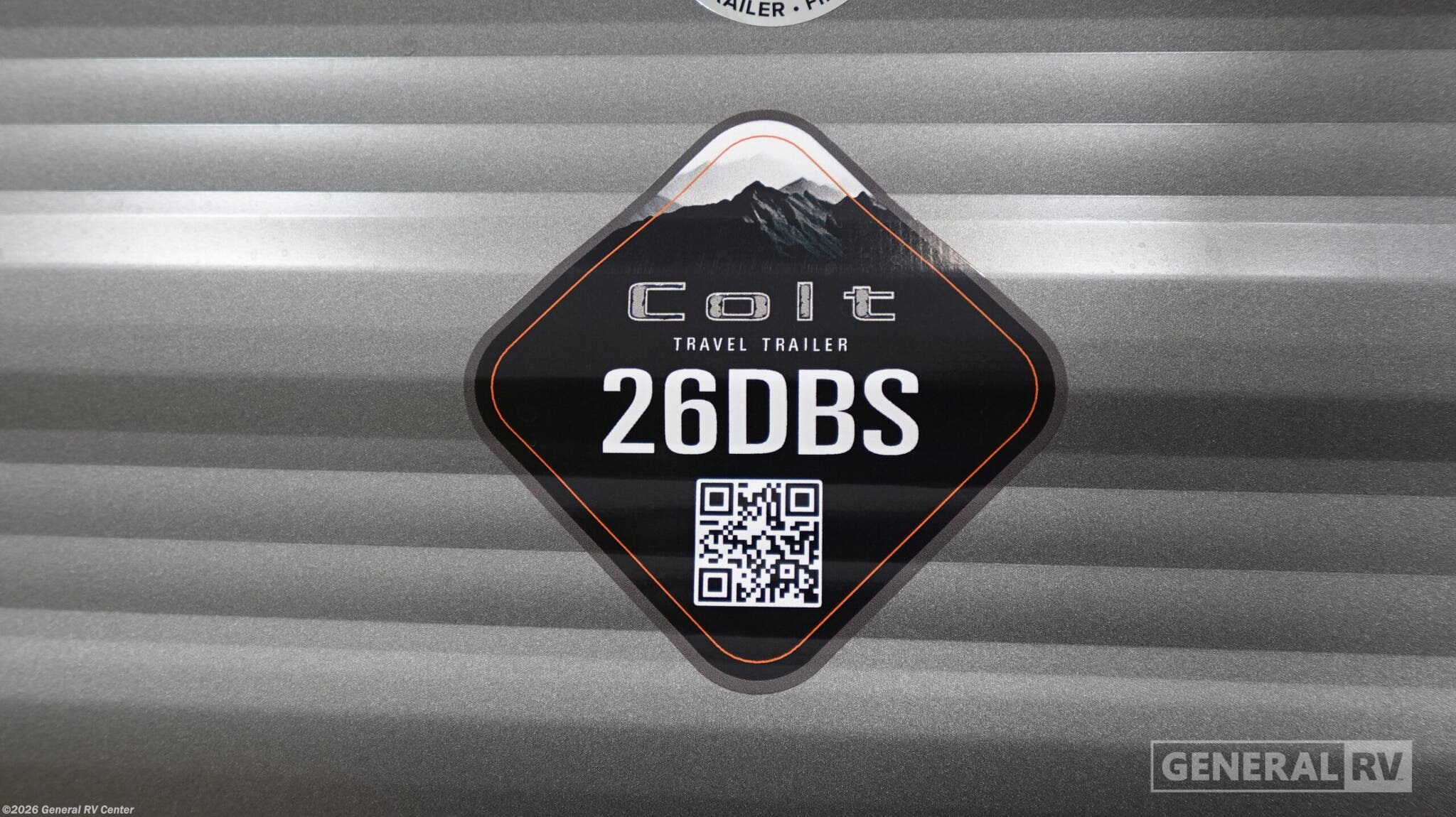 **Open Range RV Colt travel trailer 26DBS highlights:** * Front Private Bedroom * Outside Kitchen * Large Slide Out * Kitchen Pantry This travel trailer with double-size bunks is spacious and cozy! Once you've unloaded the exterior storage, your crew can put out the 16' power awning with LED lights, then start lunch on the outside kitchen. If the weather isn't cooperating, there is a three-burner cooktop and microwave oven inside, plus comfortable seating on the jack-knife sofa and booth dinette. You're sure to appreciate the front private bedroom with an RV queen bed, dual wardrobes, plus an overhead shelf for books, and the rear corner full bath will let everyone freshen up each day! With any Colt travel trailer by Open Range RV, you can be sure you're getting a budget-friendly unit designed to fit your lifestyle! Each one is built to last with a PVC roofing membrane and built-in A-frame, plus there are nitrogen-filled radial tires and self-adjusting electric brakes for easy towing. You will appreciate the utilities that include 30-amp service, an A/C unit, and an on-demand tankless water heater. A few interior comforts include vinyl flooring throughout, solid hardwood cabinet doors, and residential grade kitchen countertops to make your space feel more like home.