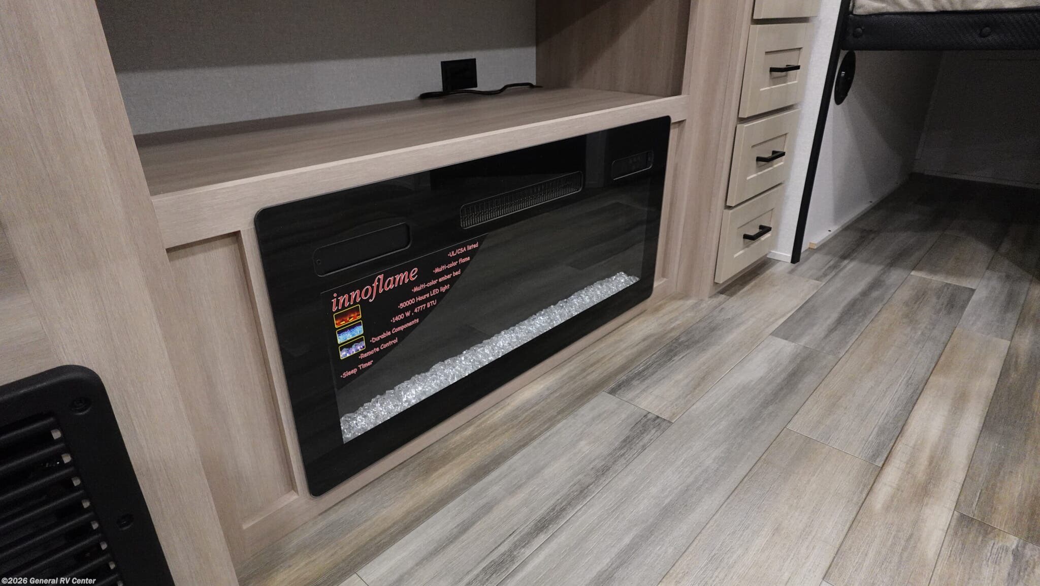 Open Range RV Colt travel trailer 28DBS highlights: Front Private Bedroom Outdoor Camp Kitchen Large Slide Out U-Shaped Dinette This travel trailer with double-size bunks is spacious and cozy! Once you've unloaded the exterior storage, your crew can put out the 18' power awning with LED lights, then relax in your camp chairs. There is also an outdoor camp kitchen here with an outside refrigerator and storage for snacks. When you're ready to make lunch, there is a three-burner cooktop and microwave oven inside, plus comfortable seating on the jack-knife sofa and U-shaped dinette. And an entertainment center with a fireplace will make this space feel more like home! You're sure to appreciate the front private bedroom with an RV queen bed, dual wardrobes, and overhead storage for books. With any Colt travel trailer by Open Range RV, you can be sure you're getting a budget-friendly unit designed to fit your lifestyle! Each one is built to last with a PVC roofing membrane and built-in A-frame, plus there are nitrogen-filled radial tires and self-adjusting electric brakes for easy towing. You will appreciate the utilities that include 30-amp service, an A/C unit, and an on-demand tankless water heater. A few interior comforts include vinyl flooring throughout, solid hardwood cabinet doors, and residential grade kitchen countertops to make your space feel more like home.