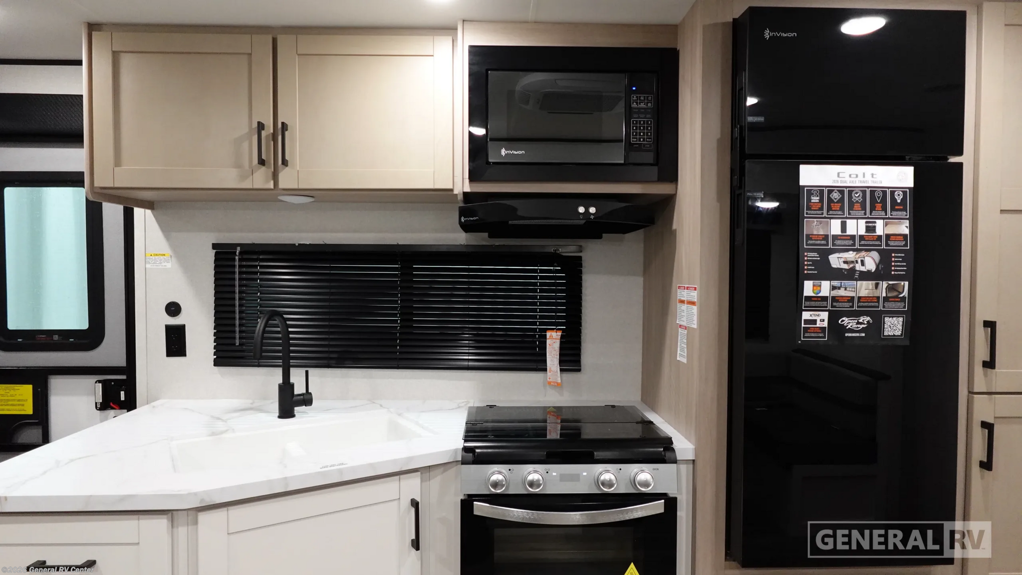 **Open Range RV Colt travel trailer 32DSB highlights:** * Outside Kitchen * Rear Private Bunkhouse * U-Shaped Dinette * RV Queen Bed The perfect family-friendly travel trailer is found with this Colt! You will appreciate dual entry doors, with one leading into the full bath for convenience. The rear private bunkhouse features a slide out for more space, along with a bunk bed above a futon sofa plus a set of bunks across the room. The second slide out is found in the combined kitchen and living room, which houses the U-shaped dinette and jack-knife sofa. When your crew is getting hungry, the chef of your group will have their choice to cook indoors on the three-burner cooktop or at the outside kitchen. And each night you can retreat to the front private bedroom for a great night's rest on the RV queen bed! With any Colt travel trailer by Open Range RV, you can be sure you're getting a budget-friendly unit designed to fit your lifestyle! Each one is built to last with a PVC roofing membrane and built-in A-frame, plus there are nitrogen-filled radial tires and self-adjusting electric brakes for easy towing. You will appreciate the utilities that include 30-amp service, an A/C unit, and an on-demand tankless water heater. A few interior comforts include vinyl flooring throughout, solid hardwood cabinet doors, and residential grade kitchen countertops to make your space feel more like home. There are additional features available, depending on the edition you choose!