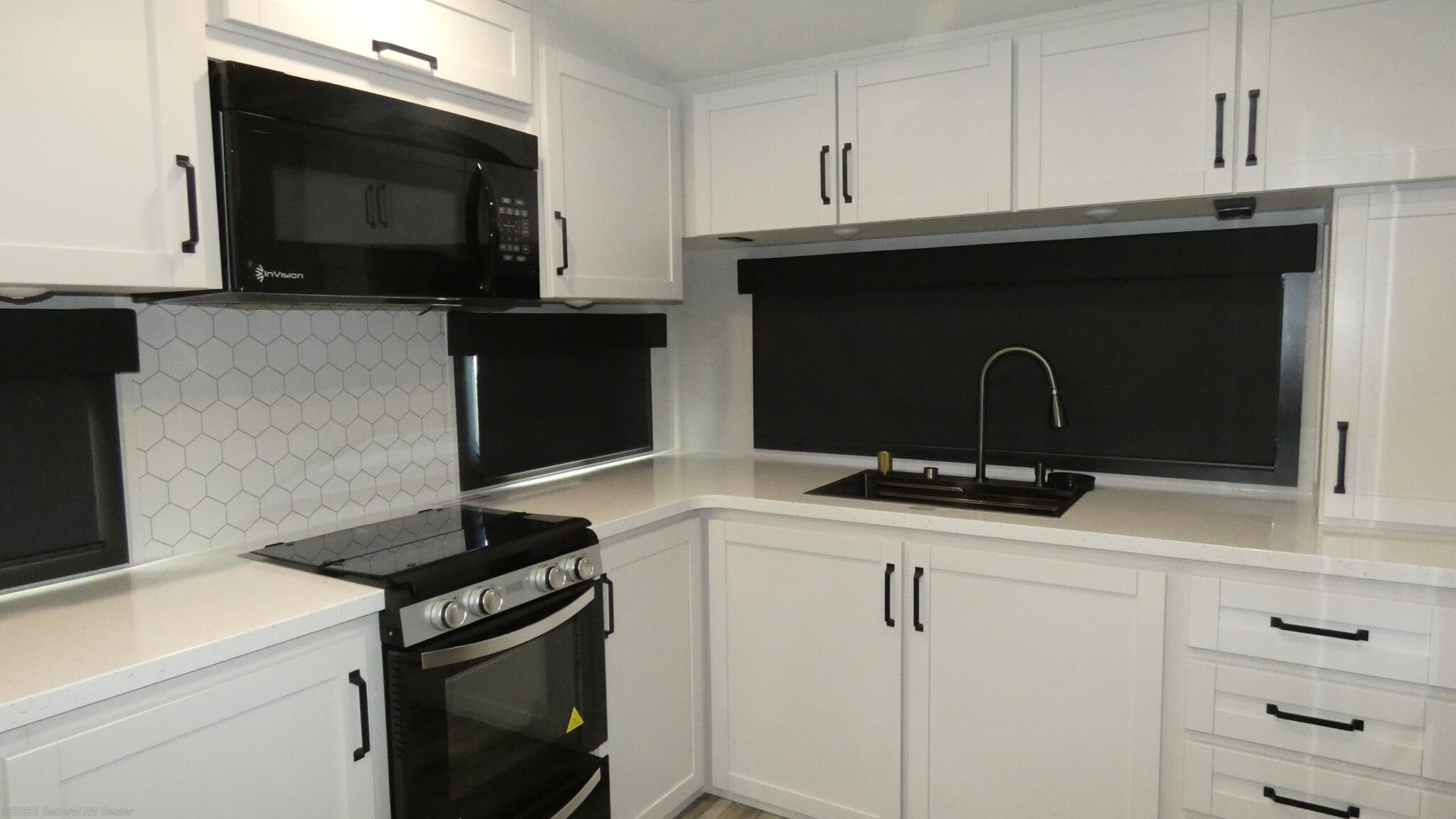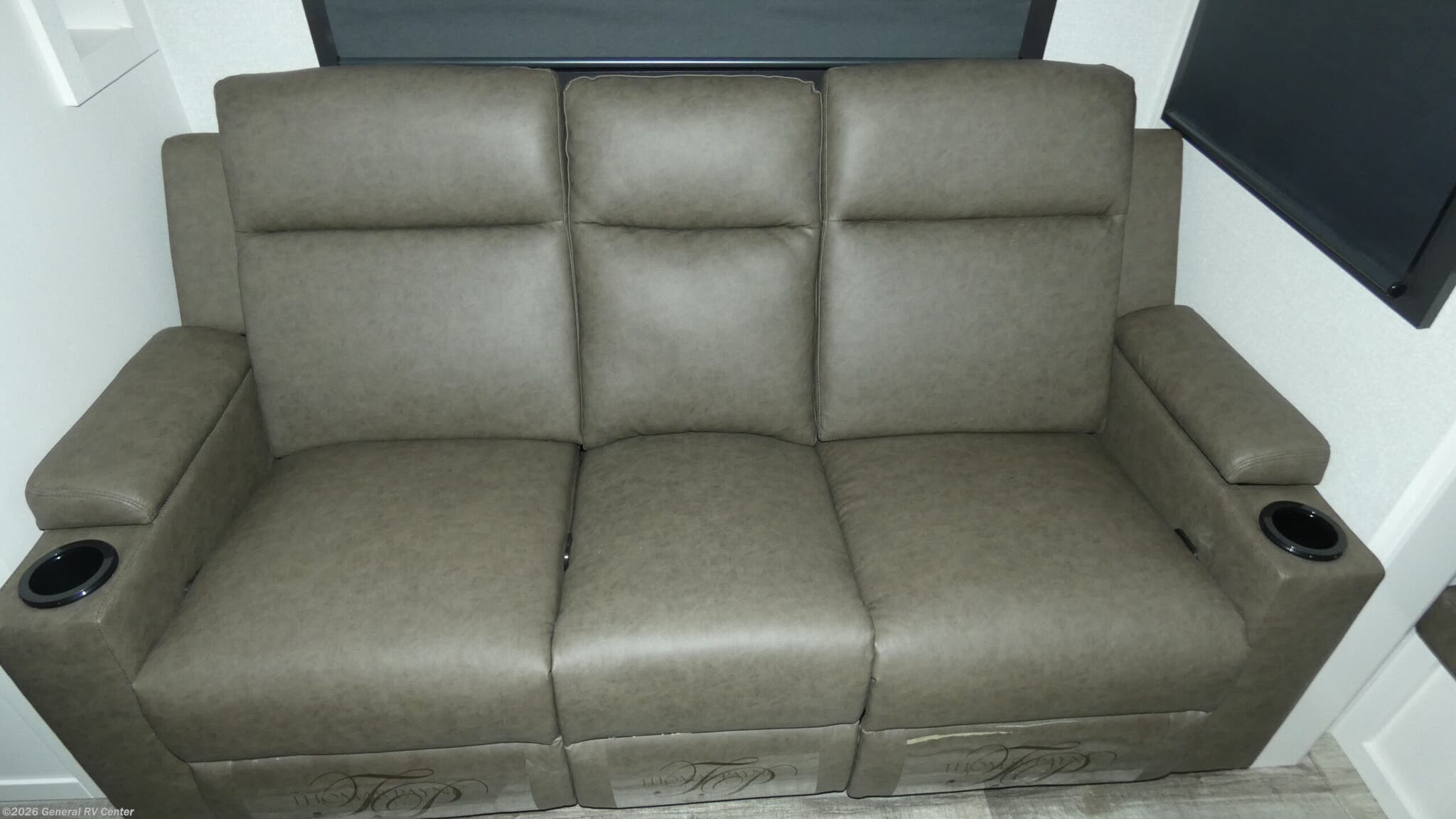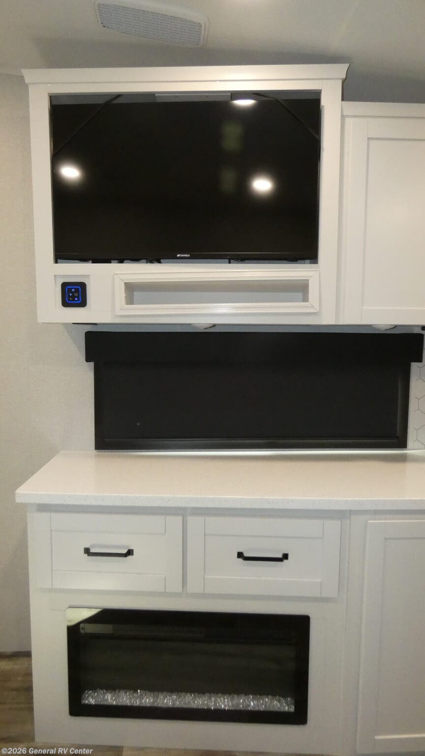 Open Range RV Roamer fifth wheel 27RKSS highlights: Theater Sofa Slide 18' Electric Awning Spacious Full Bath Fireplace Head to your favorite camping spot in this spacious fifth wheel! The rear kitchen features ample counter space to prep meals, plus there is an outside kitchen to give the chef more options! You can dine together at the L-shaped dinette, then relax on the theater sofa within the large slide after dinner. And a fireplace plus a TV is in direct view of the sofa for cozy evenings indoors. Up front, a private bedroom includes an 66" x 80" Olympic bed, dual wardrobes, and a wardrobe/linen closet with washer and dryer prep, allowing you to add these appliances if you choose! For the perfect balance of strength, comfort, and efficiency, take a look at the Roamer fifth wheels by Open Range RV! Each one features TuffShell vacuum bonded laminated construction, an automotive style front cap with max turn radius, and an Alpa Ply TPO roof membrane, the thickest in the industry! You will also appreciate the Cool Force System and Thermal Seal zero-degree tested weather protection to help you extend your camping season. And the mandatory Traveling Package with a MORryde CRE-3000 rubberized suspension, Dexter Axles, and E-Z Lube hubs will make towing easier than ever. You'll be met with residential features inside, including a glass shower door, solid surface countertop(s), 100% no floor heat vents, and residential vinyl flooring throughout!