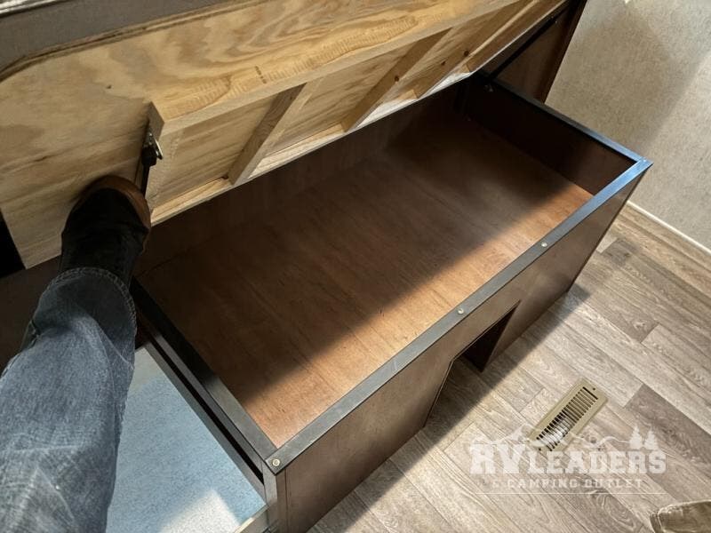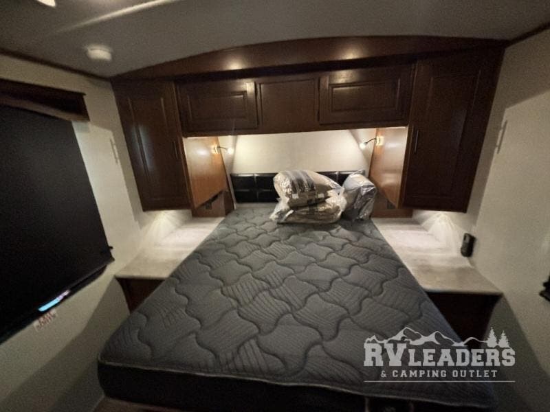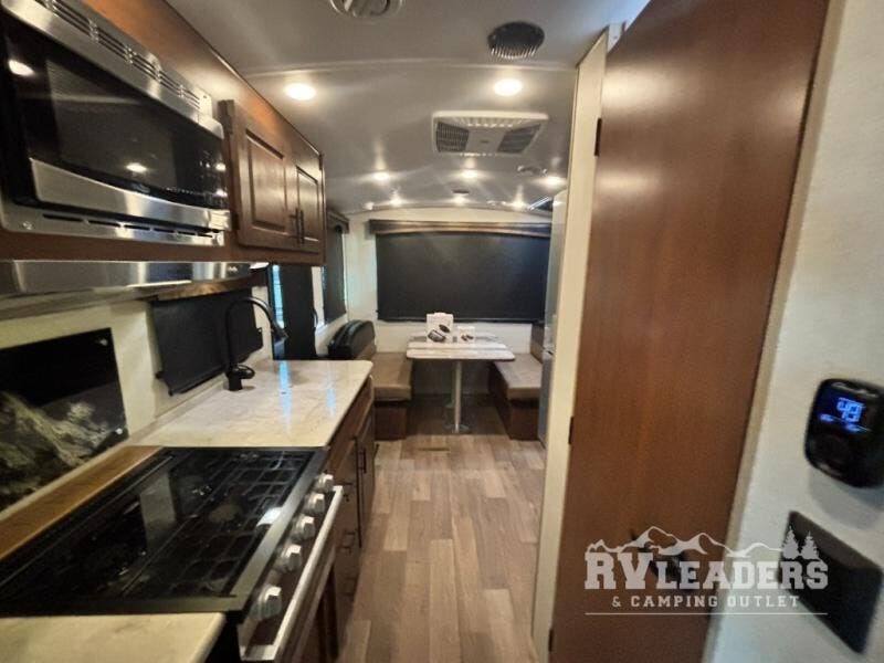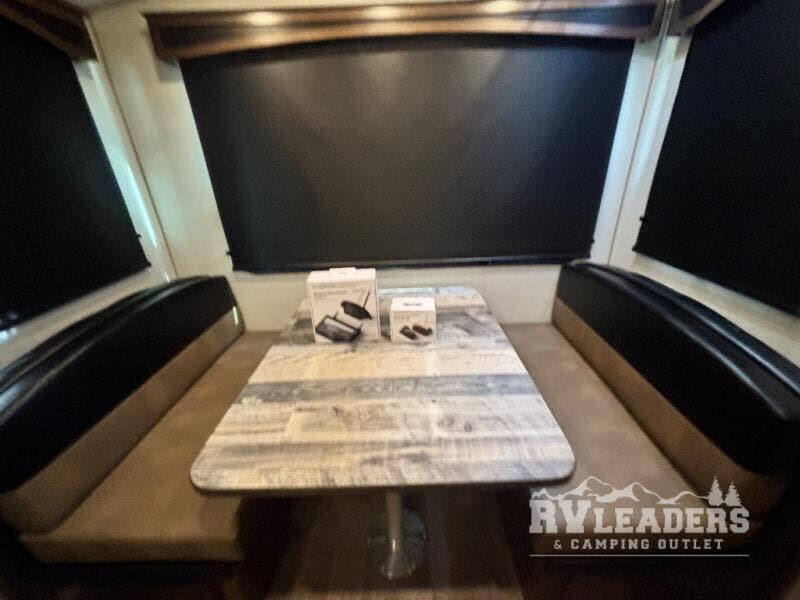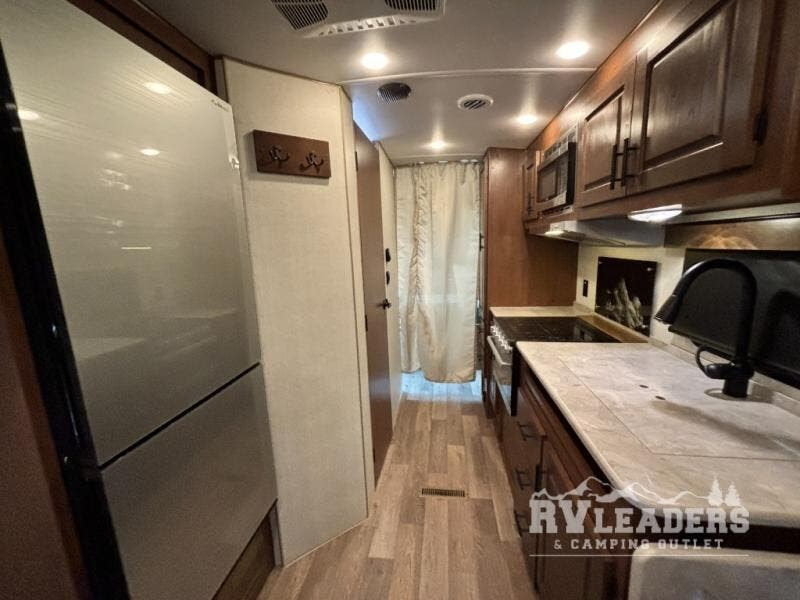 Load up your gear, clothing and food to start your journey exploring for the perfect spot to setup camp with this Back Country. You and your traveling companion will love the queen bed up front with a privacy curtain, plus there is storage on each side. If you are a family, one to two kiddos can sleep on the rear 45" x 84" mountain dinette that offers beautiful views out of the windows. The kitchen offers everything to keep everyone fed including a flip-up counter for extra work space. There is a full bathroom to keep everyone clean, plus a swing-out 32" TV for inside entertainment. And don't forget about the 17' awning when you want to relax outside with some protection from the sun.