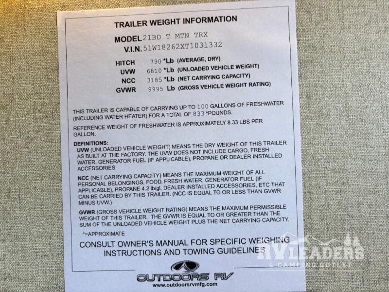 2026 Outdoors RV Back Country Series MTN TRX Titanium Series 21BD Literature