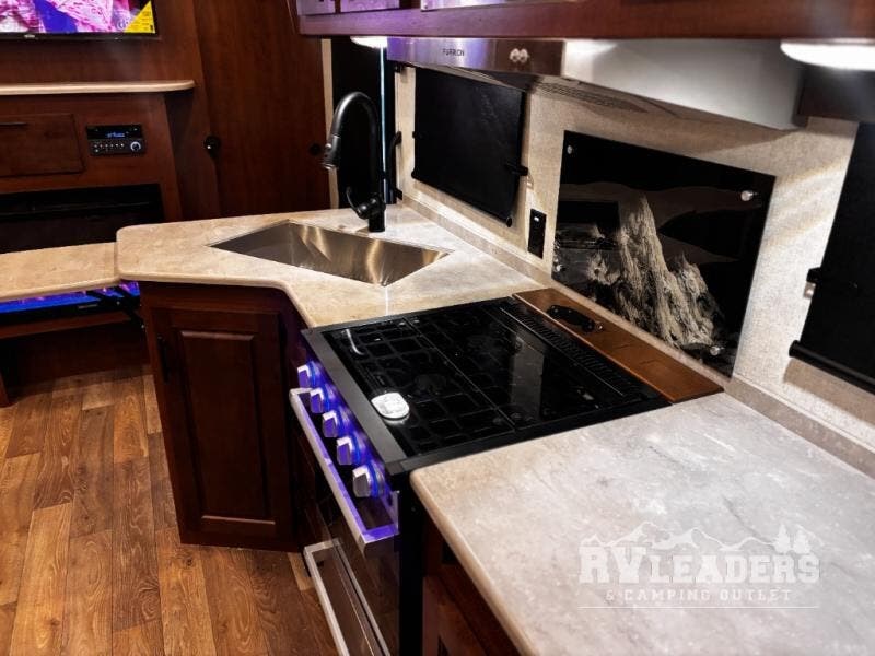 Each Back Country MTN TRX Titanium Series travel trailer by Outdoors RV is designed for camping off-grid plus you can go off-road, camp in national forest or even enjoy primitive style camping! There is a Lamilux HD 4000 high-gloss silver fiberglass exterior, sleek design frameless thermal pane windows, and a silver fiberglass front cap that gives these units a premium trim! You will also appreciate the Ground Control auto leveling and the wireless rear and side(s) turn camera system for hassle-free parking! The Mountain Lodge interior features hardwood throughout and all-leather designs, plus there are LG solid surface countertops, a premium memory foam mattress, and an upgraded shower head to name a few comforts!