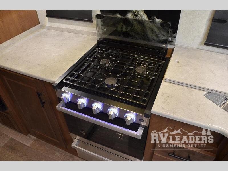 With any Timber Ridge Titanium Series travel trailer by Outdoors RV you will enjoy the sleek design frameless thermal pane windows, along with the silver fiberglass front cap and Titanium Series graphics package. The rugged 8' chassis with 5,200 lb. axles and XL ground clearance will make maneuvering tougher terrain easier than ever, and there is a wireless rear, side(s) turn camera system for hassle-free parking. Each model includes LG solid surface countertops, mountain lodge interiors, hardwood slide out fascia(s), and many more comforts!