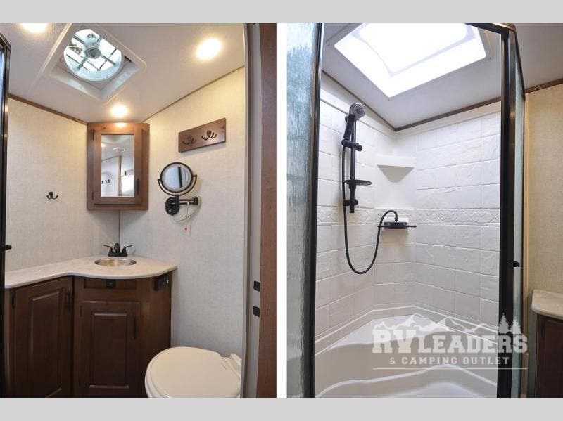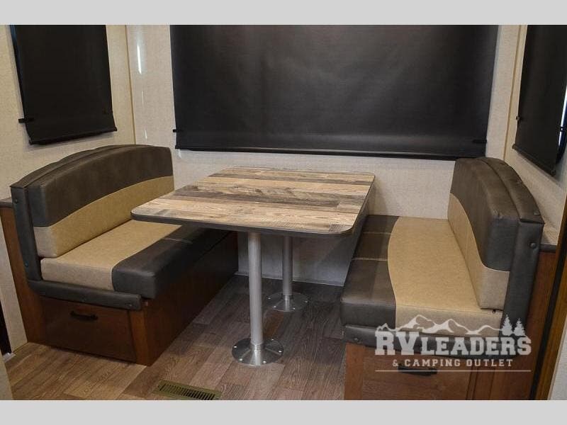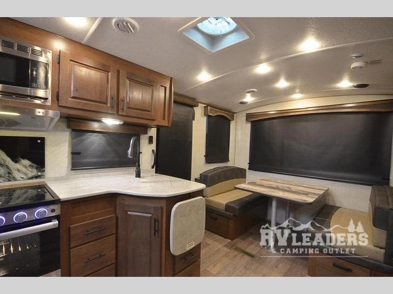 From the rear mountain dinette to the front private bedroom, you will love everything about this travel trailer. Use the flip-up counter in the kitchen for more prep space as you cook lunch, and the 10 cu. ft. refrigerator will come in handy for your perishables. A sleeper sofa slide out will provide comfortable seating and sleeping space, or you may want to choose the optional residential sofa with built-in recliners. A full bath ensures you won't have to use the camp's facilities, and a queen bed in the bedroom will provide a great night's rest!