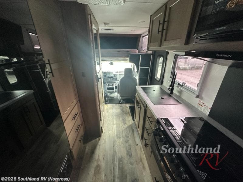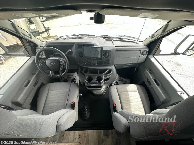 With any Overlander Class C gas motorhome by Adventure Manufacturing Inc., you will find a bold exterior with sloped lines inspired by ridgelines, ranges, and fjords! Each unit sits on the durable Ford E-Series chassis with a 7.3L V8 engine for power you can feel. These coaches could better be referred to as adventure vehicles with their capability and added clearance. Each model is constructed with a walk-on roof, a custom rear bumper with integrated lights and a class 2 hitch plus insulated acrylic windows with a screen and solar reflective shade. There is also industrial grade vinyl flooring inside, along with stained hardwood cabinet doors, a 12V Fantastic fan, and soft closing drawer slides to name a few comforts.