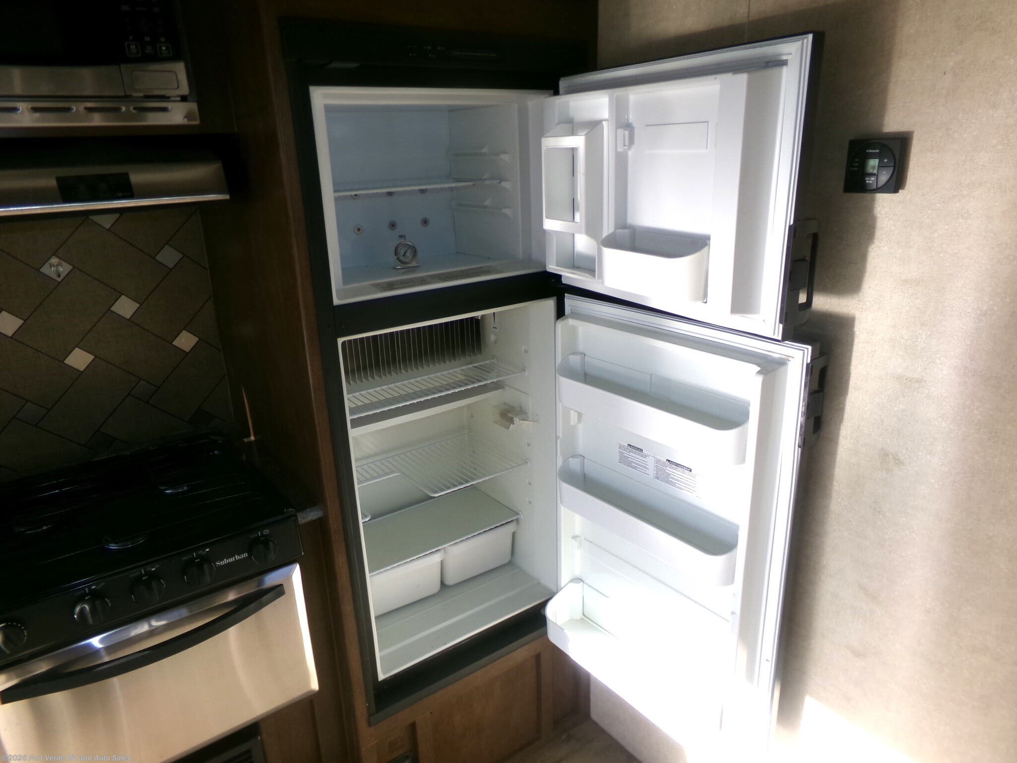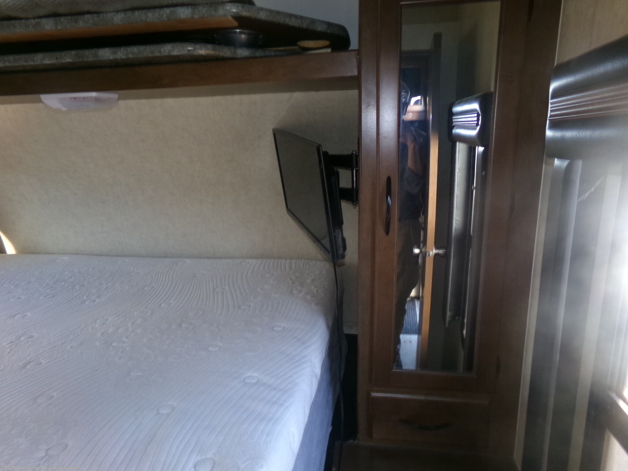 Toy hauler! There is room in this garage for a fairly sizable side-by-side, or several dirt bikes. But, it’s only 27 feet long and has a dry weight of just 5,700 pounds! Unlike the larger, fifth-wheel toy haulers, you don’t need a big truck to tow it. Some compact trucks and mid-size SUV models are able to pull this one.