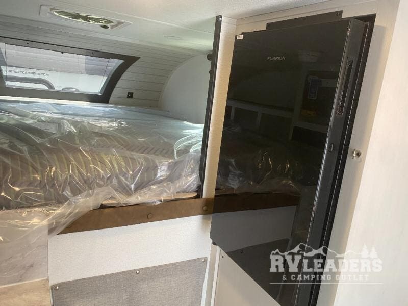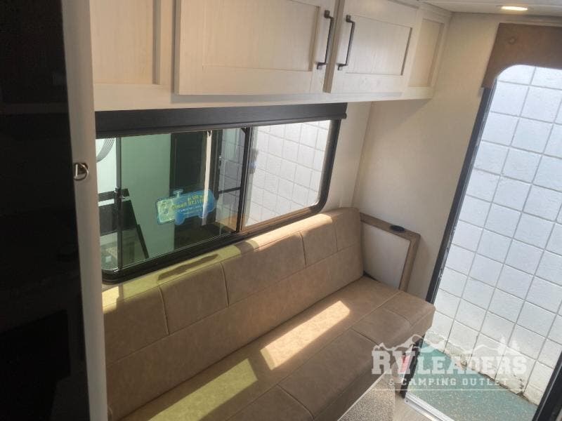 Pick your favorite fishing spot and load up this hard side truck camper! You can fry your catch of the day on the cooktop and enjoy a cold beverage from the refrigerator while you cook it. The 60" jackknife sofa offers a comfortable place for an afternoon nap or for an extra guest to sleep at night while you sleep on the front queen bed which has a wrap around nightstand, storage chests on either side, and a closet to keep your clothes wrinkle-free. If you're needing more sleeping space, you might consider adding the optional Euro bunk above the sofa!
