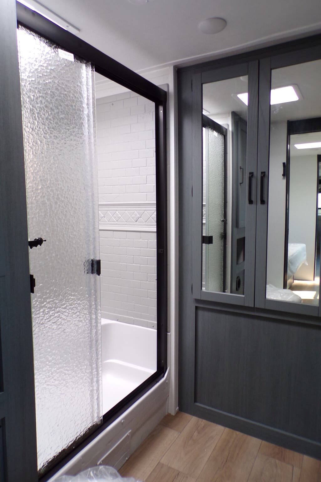 Glass Shower Door, King Size Bed, Medicine Cabinet, Pantry, Roof Vents, Shower, Theater Seating, Toilet, Washer/Dryer Prep