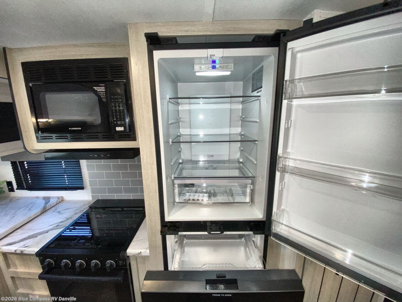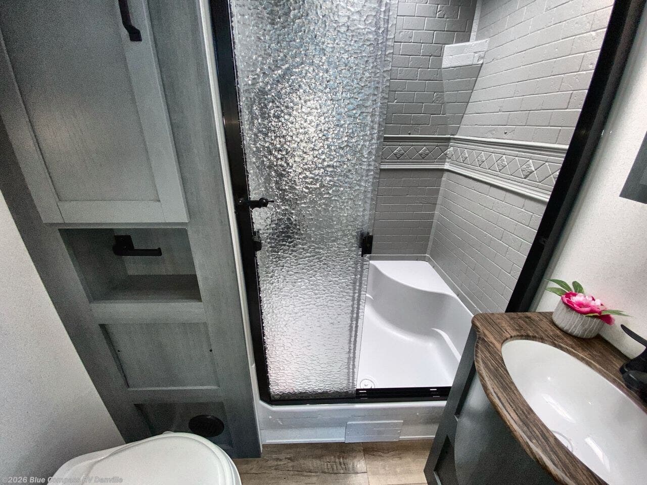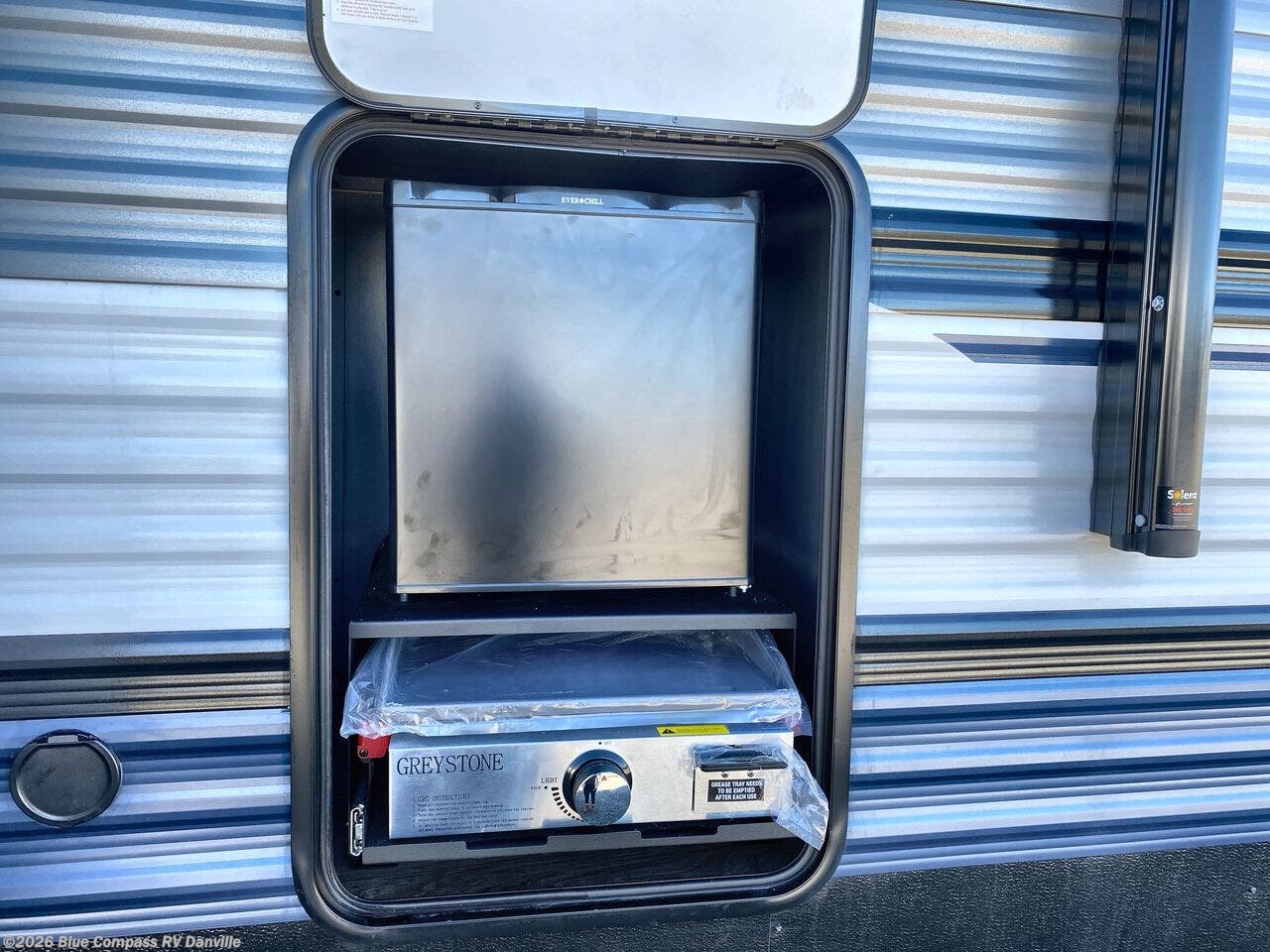 Experience a home away from home with this travel trailer! The front kitchen has everything you will need to prepare your best meals and you can enjoy them at the booth dinette. The rear private bedroom has a 72" x 80" king bed slide across from a dresser, a wardrobe, and a closet with washer and dryer prep. Freshen up in the full bathroom with the 32" x 40" shower and then enjoy a cup of coffee relaxing in one of the two recliners or on the sofa! Choose the optional outside micro kitchen with a griddle for even more convenience!
