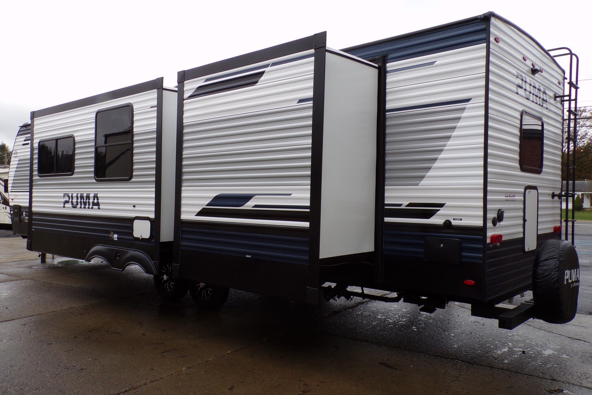 The Palomino Puma line delivers durable construction, practical floorplans, and family-friendly features that make every adventure enjoyable. With three slide-outs, ample freshwater capacity, bunk beds, and a roomy interior, the Puma 32BH2B is ready for weekend escapes or longer stays. Its balanced weight distribution, dual-axle design, and generous payload capacity make towing manageable, while the abundance of standard amenities ensures comfort without sacrificing value. For families seeking a dependable travel trailer that blends convenience, comfort, and cost-effectiveness, the Puma 32BH2B stands out in the competitive class of RVs.