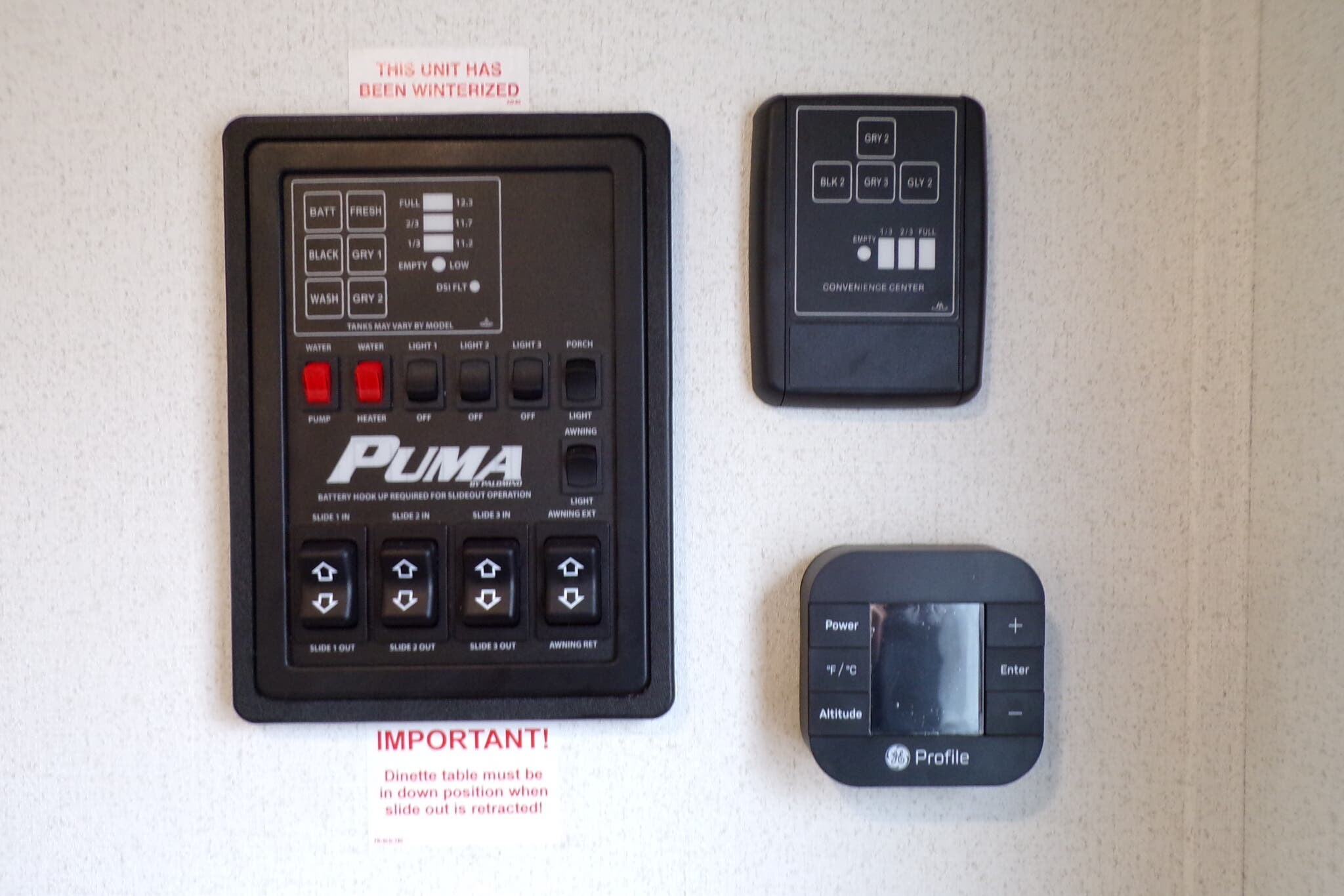 Inside the Puma 32BH2B you’ll find a well-equipped kitchen with essential appliances for anytime cooking on the road: microwave, oven, refrigerator, and a stove top burner. The layout is enhanced by a booth dinette that converts to extra sleeping space, plus bunk beds that maximize sleeping flexibility for families or groups. A private queen bed provides a comfortable retreat at night, while skylights and ceiling vents invite natural light and airflow. With one air conditioner, you’ll still enjoy a cool, relaxing interior on warm days, and the 43- to 95-gallon total water system supports longer trips with fewer stops.