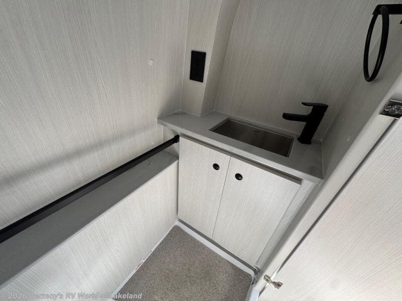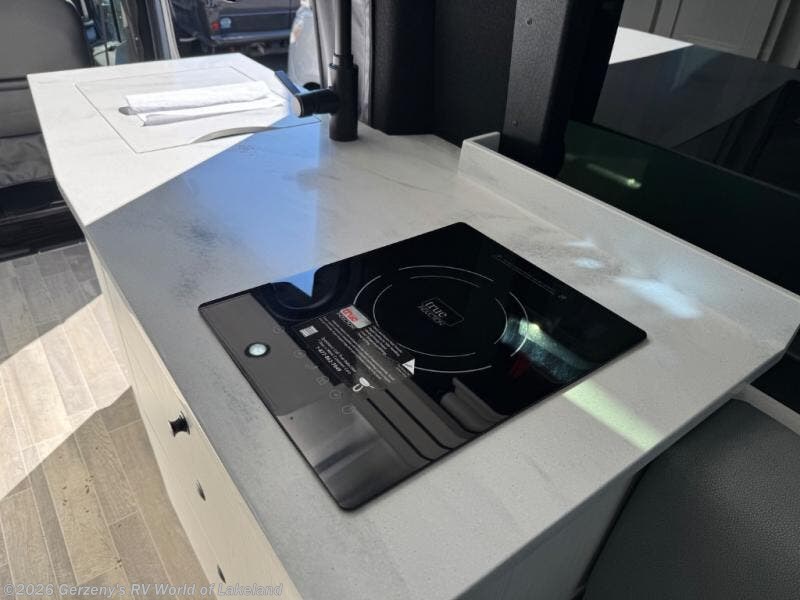 This 2.2 Ontour model is similar to model 2.0, but with a larger refrigerator, and more storage space in the bath. The rear power sofa converts to a 68" x 76" queen-sized bed with memory foam cushions for all-around comfort and the wet bath allows you to clean up each day. There is also a vanity with storage, a sink, and a Corian countertop in the bath for added convenience. Prepare meals either on the one burner induction stove top or in the microwave oven and clean-up will be a breeze with a stainless-steel sink that includes a high-arc faucet.