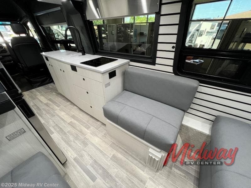 These Pleasure-Way Plateau Class B diesel motorhomes have been designed with comfort and convenience to accommodate a wide range of lifestyles! They are powered by a Mercedes Benz Sprinter 3500 van chassis with high-performing, fast-charging, and maintenance-free Eco-Ion Earth Smart dual 300Ah lithium batteries. The dual 10 inch touchscreen control panels allows you to adjust the climate, manage the battery usage, monitor the solar panel charge volts, and set, start, or stop the automatic generator. Another feature is the Truma AquaGo Comfort Plus water heater that has a 60,000 BTU stepless burner, a recirculating water line, and a mixing vessel to deliver hot water on demand without temperature spikes. Come see what all the fuss is about today!