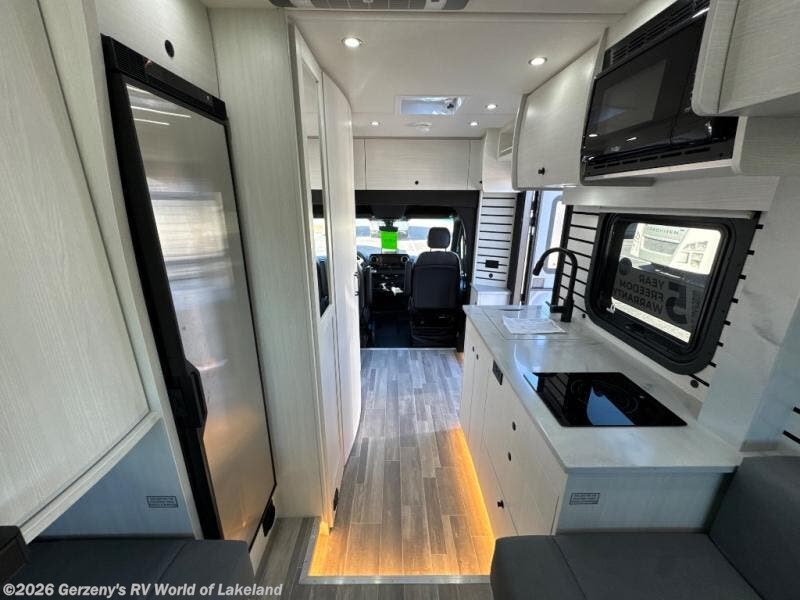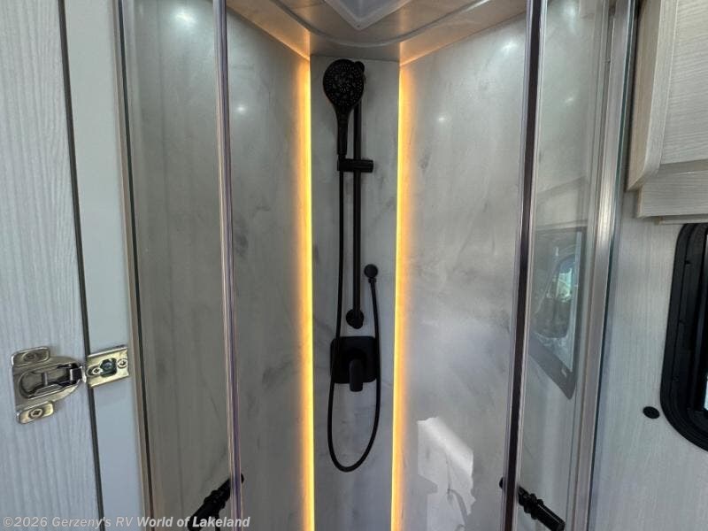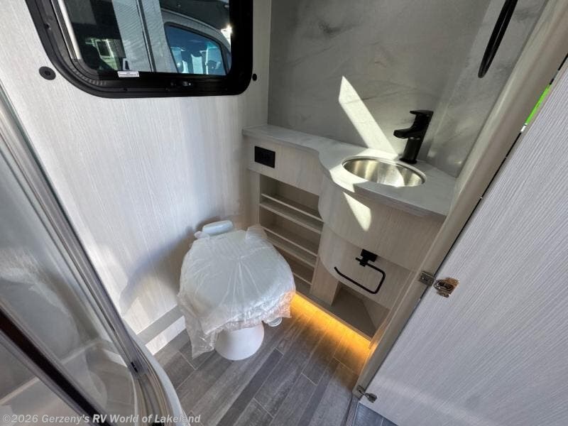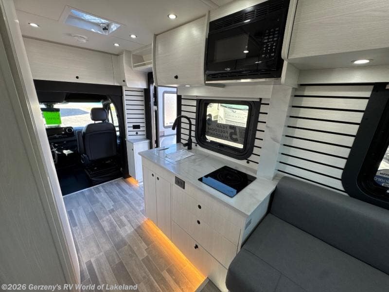 You and your spouse or friend will love touring the country in this comfortable motorhome! After a long day of traveling, freshen up in the full bathroom with the 32" radius shower that is Corian-lined, has a handheld showerhead, a large vanity with storage shelves, and even a towel rack. Prepare your best home cooked meals while on the road with the one burner induction stove, microwave, and 12V 5.3 cu. ft. Norcold refrigerator. Your meals can be enjoyed at the rear electric sofa with Lagun table, and it also transforms into a 75" x 74" queen bed for you to get a good night's rest each night. If mother nature rains on your parade then you can watch your favorite movies on the 24" Smart LED TV with swing out mount and a Winegard Rayzar automatic HDTV antenna!
