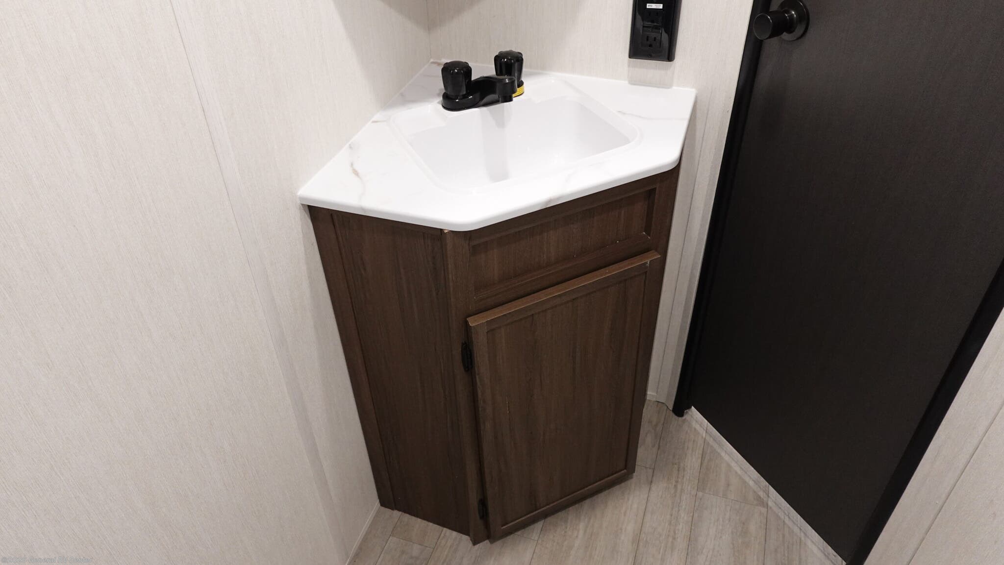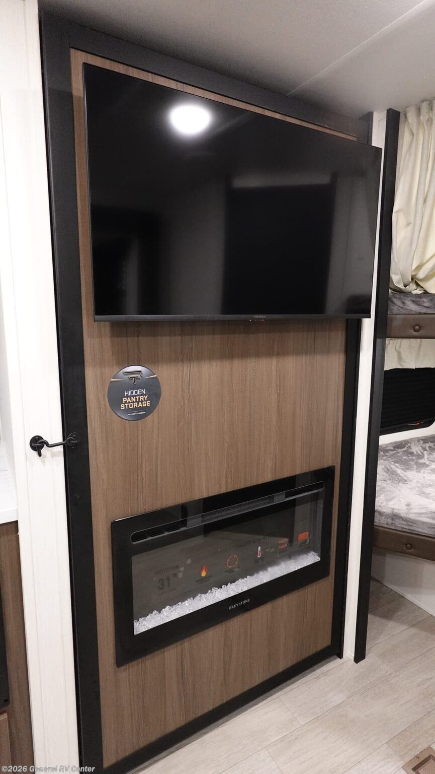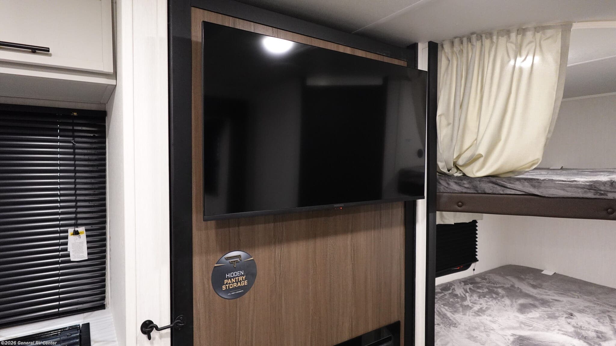 Prime Time Avenger travel trailer 23BHS highlights: Booth Dinette Slide TV and Fireplace Oversized Window Double-Size Bunks Outdoor Storage You'll appreciate the added sleeping space in this unit with double-size bunks! You'll have your own space up front in the private bedroom, complete with a camp king bed and storage for your things, and if you need even more sleeping space, the dinette can be used as well. The chef of your group will find a three-burner cooktop and a built-in convection microwave with an air fryer to cook meals, plus there is a 12V refrigerator and large hidden pantry for food storage. This unit also includes a power awning outdoors and an outside refrigerator to keep cold drinks close by. With any Avenger travel trailer by Prime Time RV, you will find innovation, a solid build, and comfort at every turn. Each model is built with Tuff Coat on the exterior metal, a fully enclosed underbelly, and a PVC roof membrane to help extend the life of your trailer. You will also find automotive name badging on the exterior, along with an exterior shower, front rail LED light strips, plus an XL padded entry grab handle to name a few conveniences. There are plenty of storage spaces inside, as well as Congoleum flooring and woven PVC marine grade slide out flooring, a designer shower surround, and seamless pressed countertops. You are sure to appreciate the onboard water filtration system, tankless water heater, plus 30K BTU furnace and 15K ducted A/C to help keep you comfortable.