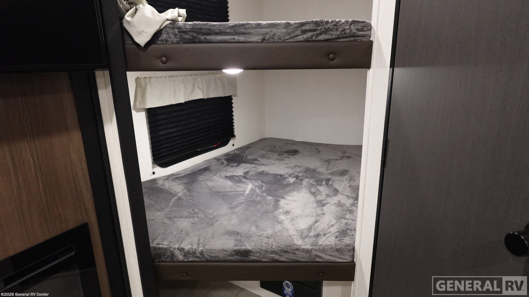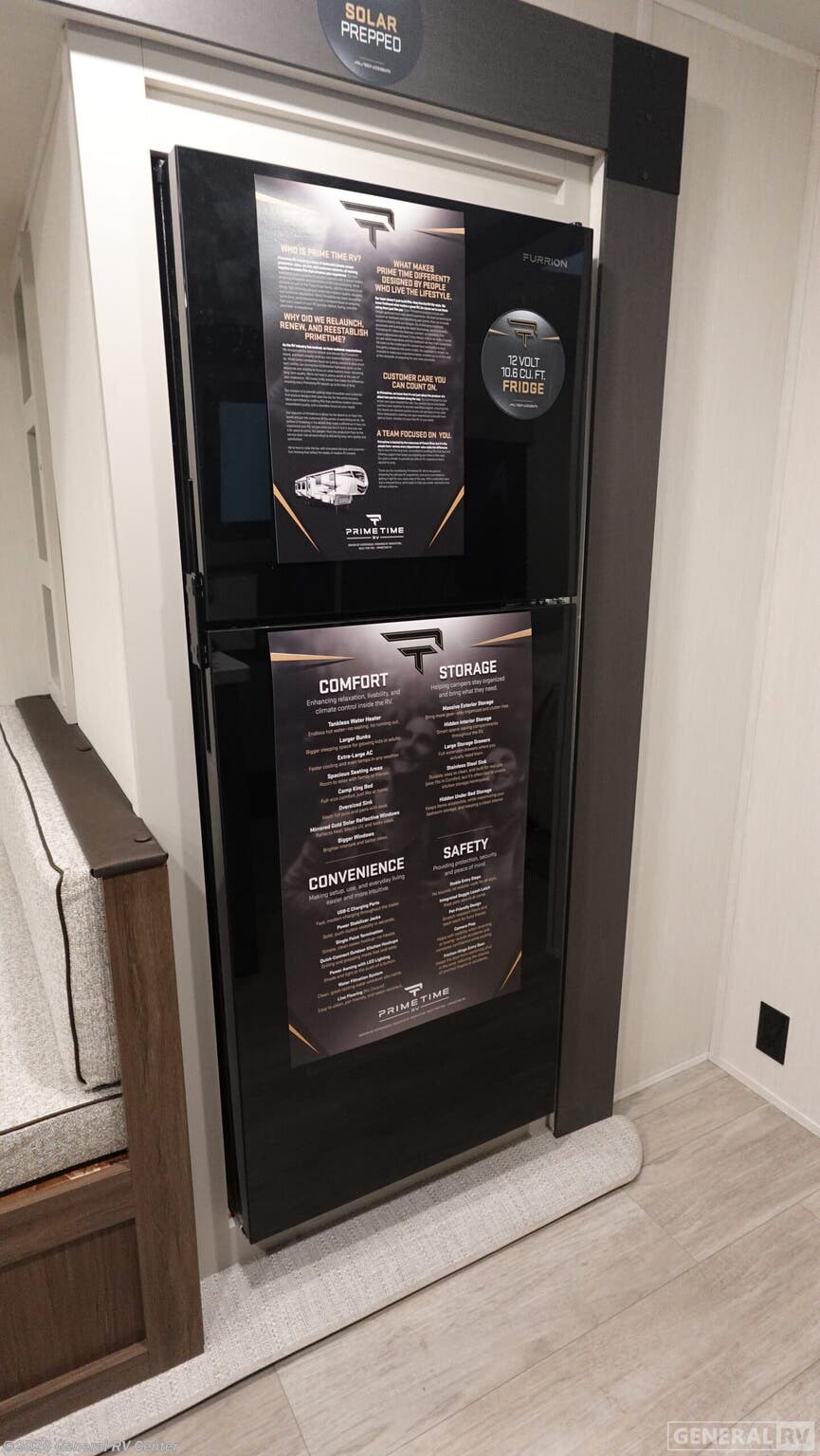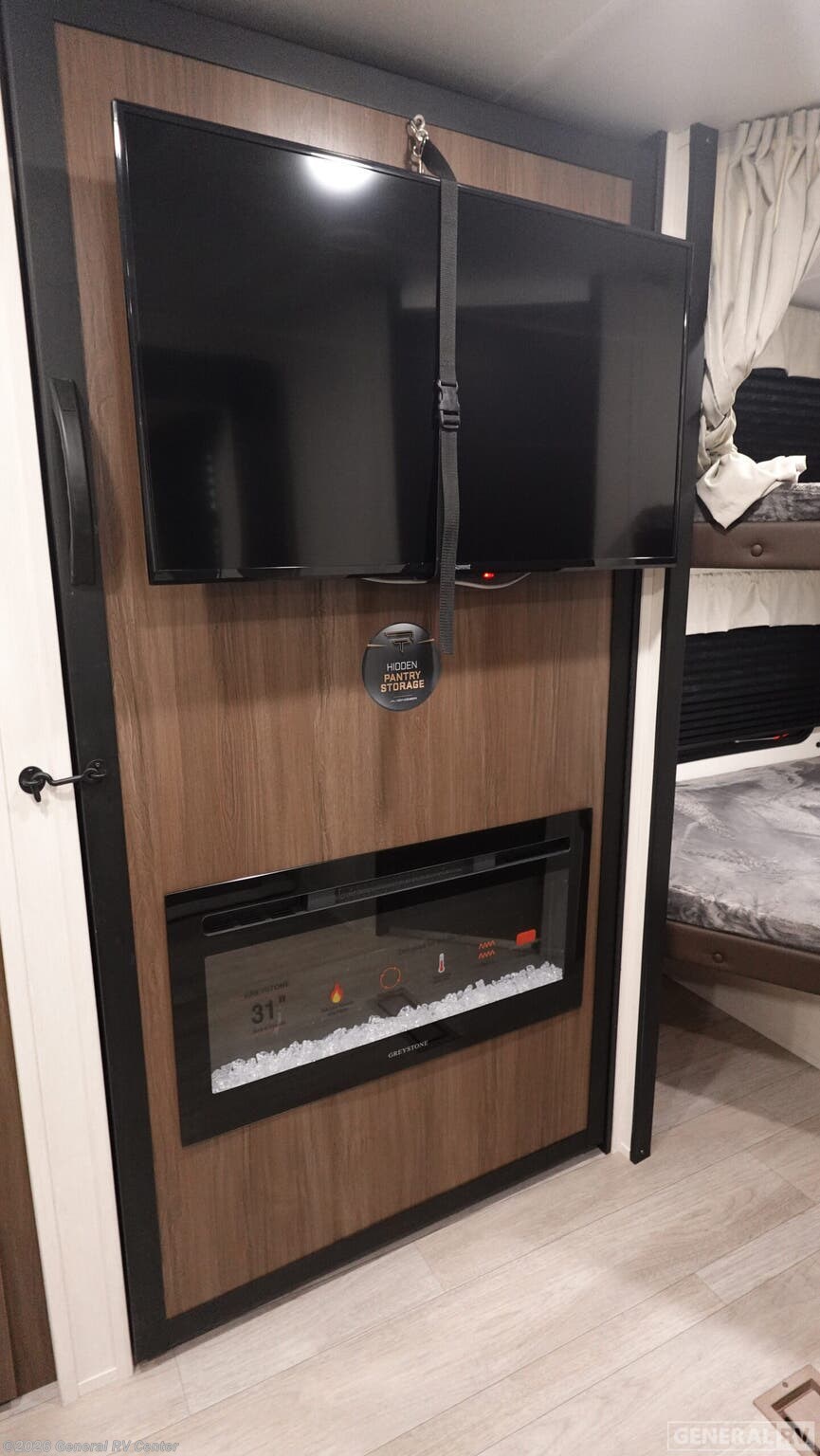 Prime Time Avenger travel trailer 23BHS highlights: Booth Dinette Slide TV and Fireplace Oversized Window Double-Size Bunks Outdoor Storage You'll appreciate the added sleeping space in this unit with double-size bunks! You'll have your own space up front in the private bedroom, complete with a camp king bed and storage for your things, and if you need even more sleeping space, the dinette can be used as well. The chef of your group will find a three-burner cooktop and a built-in convection microwave with an air fryer to cook meals, plus there is a 12V refrigerator and large hidden pantry for food storage. This unit also includes a power awning outdoors and an outside refrigerator to keep cold drinks close by. With any Avenger travel trailer by Prime Time RV, you will find innovation, a solid build, and comfort at every turn. Each model is built with Tuff Coat on the exterior metal, a fully enclosed underbelly, and a PVC roof membrane to help extend the life of your trailer. You will also find automotive name badging on the exterior, along with an exterior shower, front rail LED light strips, plus an XL padded entry grab handle to name a few conveniences. There are plenty of storage spaces inside, as well as Congoleum flooring and woven PVC marine grade slide out flooring, a designer shower surround, and seamless pressed countertops. You are sure to appreciate the onboard water filtration system, tankless water heater, plus 30K BTU furnace and 15K ducted A/C to help keep you comfortable.