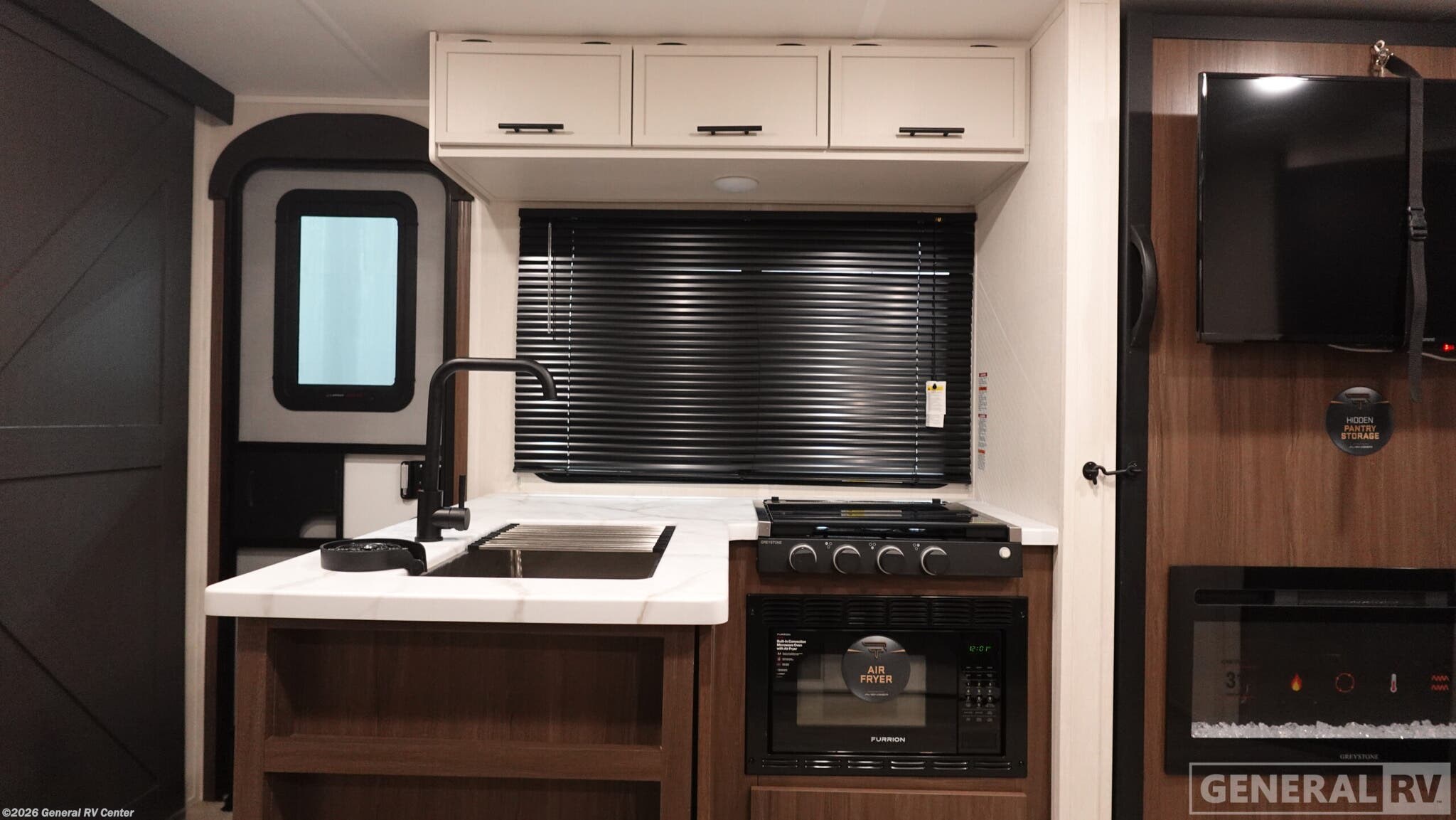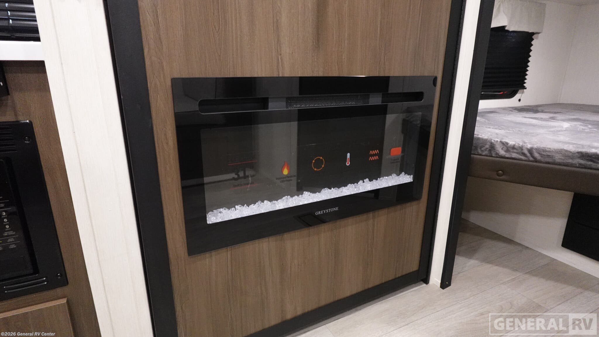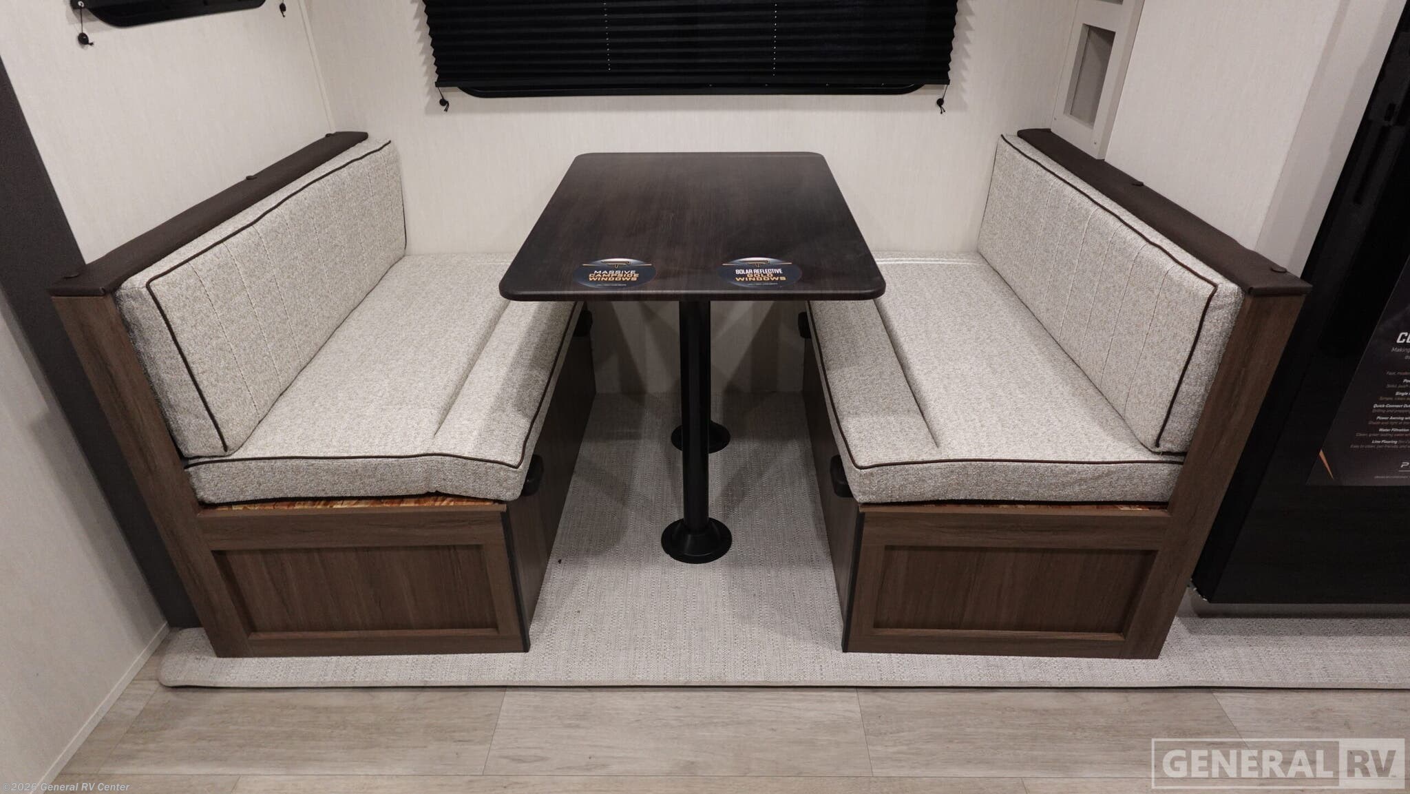 Prime Time Avenger travel trailer 23BHS highlights: Booth Dinette Slide TV and Fireplace Oversized Window Double-Size Bunks Outdoor Storage You'll appreciate the added sleeping space in this unit with double-size bunks! You'll have your own space up front in the private bedroom, complete with a camp king bed and storage for your things, and if you need even more sleeping space, the dinette can be used as well. The chef of your group will find a three-burner cooktop and a built-in convection microwave with an air fryer to cook meals, plus there is a 12V refrigerator and large hidden pantry for food storage. This unit also includes a power awning outdoors and an outside refrigerator to keep cold drinks close by. With any Avenger travel trailer by Prime Time RV, you will find innovation, a solid build, and comfort at every turn. Each model is built with Tuff Coat on the exterior metal, a fully enclosed underbelly, and a PVC roof membrane to help extend the life of your trailer. You will also find automotive name badging on the exterior, along with an exterior shower, front rail LED light strips, plus an XL padded entry grab handle to name a few conveniences. There are plenty of storage spaces inside, as well as Congoleum flooring and woven PVC marine grade slide out flooring, a designer shower surround, and seamless pressed countertops. You are sure to appreciate the onboard water filtration system, tankless water heater, plus 30K BTU furnace and 15K ducted A/C to help keep you comfortable.