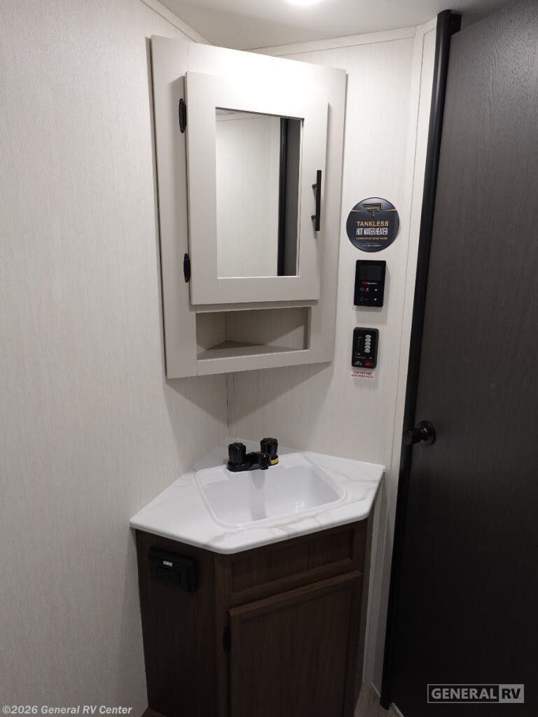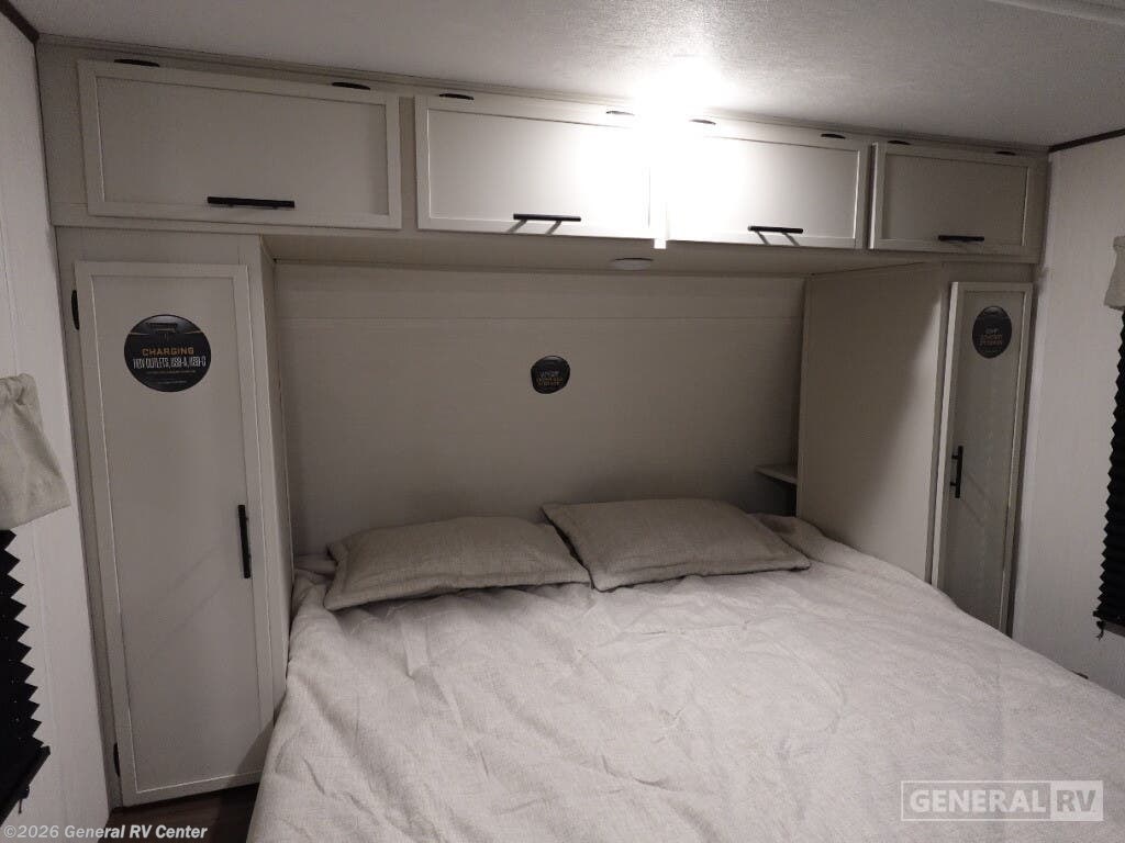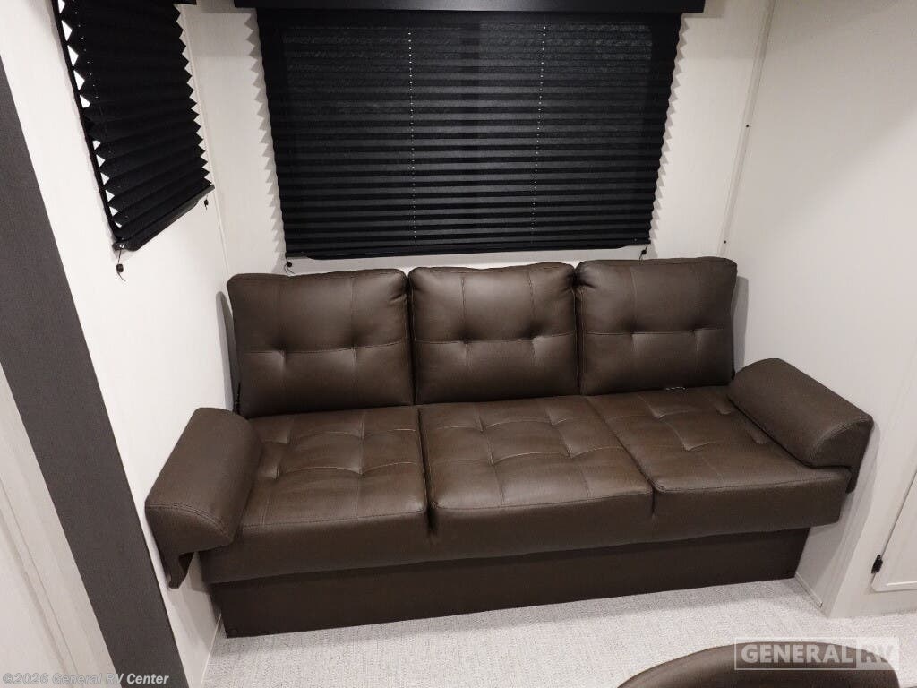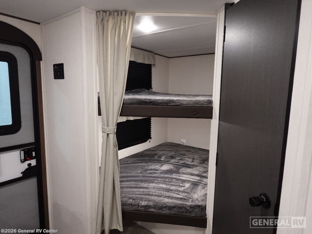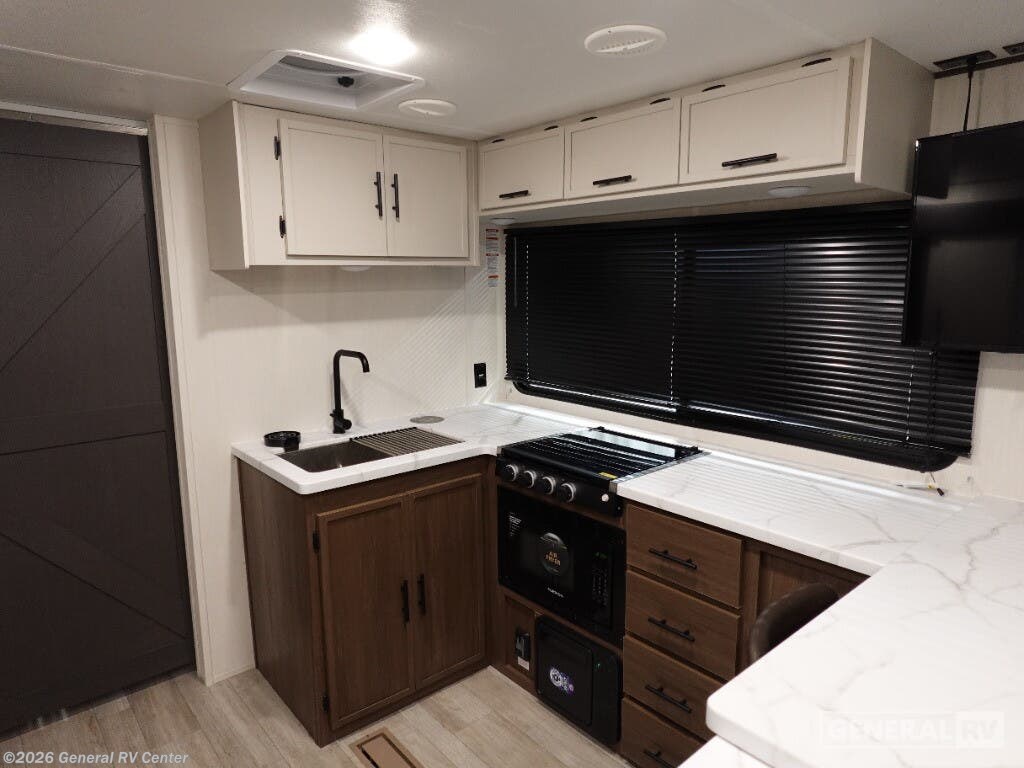 Experience the perfect blend of comfort and adventure with the 2026 Prime Time Avenger 25MKB. This RV is designed to accommodate up to six sleepers, offering a cozy queen bed and two double beds, ensuring restful nights after exciting days on the road. The inviting center kitchen features a three-burner cooktop and a full-size refrigerator, making meal prep a breeze. The powered retractable awning creates a perfect outdoor space, while the exterior kitchen adds a touch of convenience for alfresco dining. The Avenger 25MKB boasts a spacious center living area, complete with a theater seat for ultimate relaxation and a 50" TV for entertainment. The rear bath offers a shower with a sleek plastic and glass design, ensuring a refreshing experience. With ample storage, including wardrobes and overhead cabinets, you’ll have plenty of room for all your essentials. This RV is your ticket to memorable family adventures, combining practical features with stylish design. For more details, visit your nearest General RV dealership.