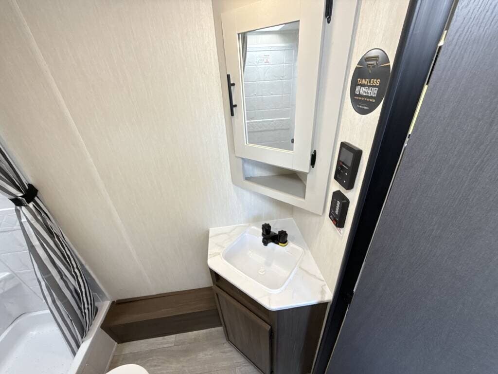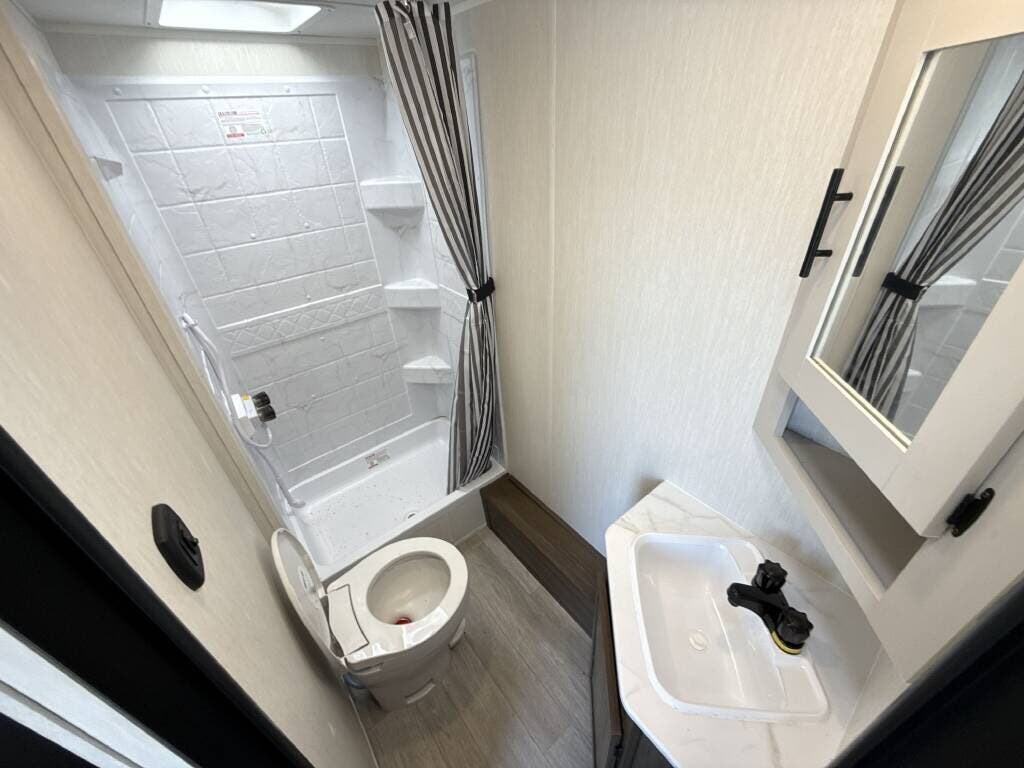 This 2026 Prime Time Avenger 25MKO is outfitted with all the features you need for happy camping. Ready to be a proud Prime Time owner? This 2026 Prime Time Avenger 25MKO is the perfect fit. This rig sleeps 3, so it makes the perfect family RV. The one slide allows for easy setup and just enough extra space inside. The fridge, oven make the perfect combo for eating well on the road. Even more RV memories will be made as you spend quality time watching a movie on the TV.. If you like your rig cool in the summer and warm in winter, this heating option can do the trick. Go longer without filling up thanks to the 42 gallon fresh water tanks. While the inside of this rig is enough on its own, the outside also features awning, black tank flush, enclosed underbelly, power awning, power stabilizer jacks, pvc roof, roof deck, slideout and stabilizer jacks.