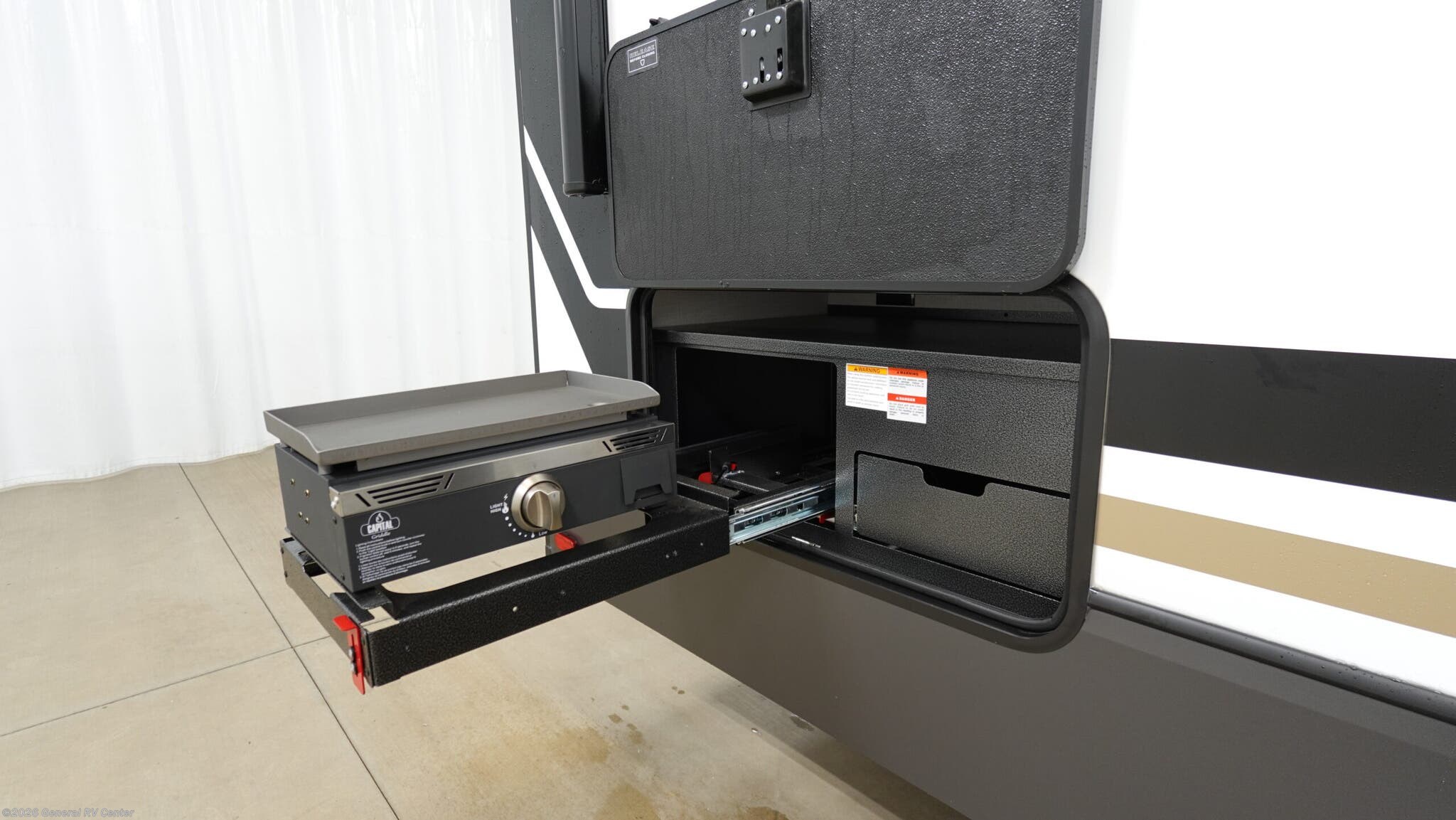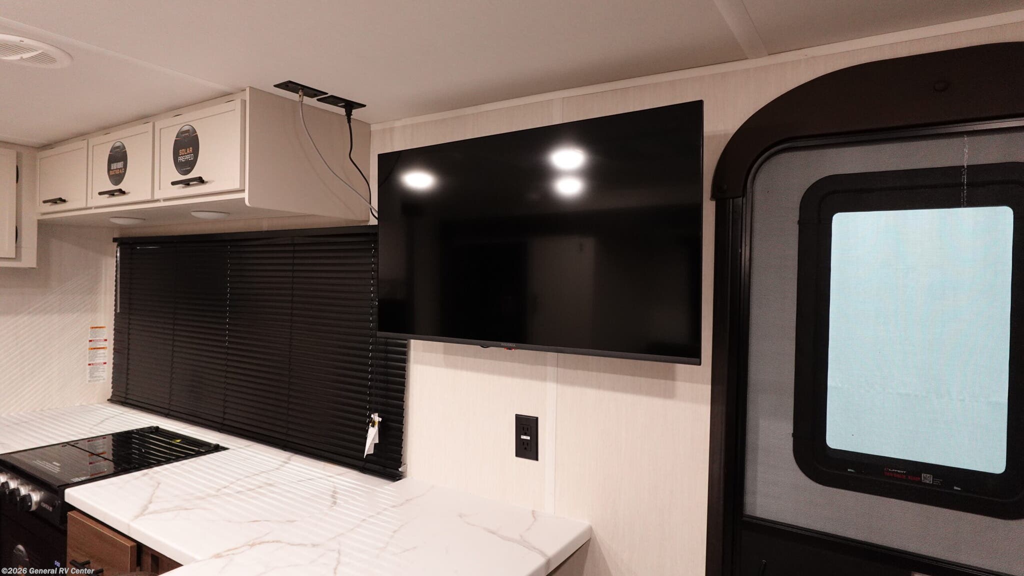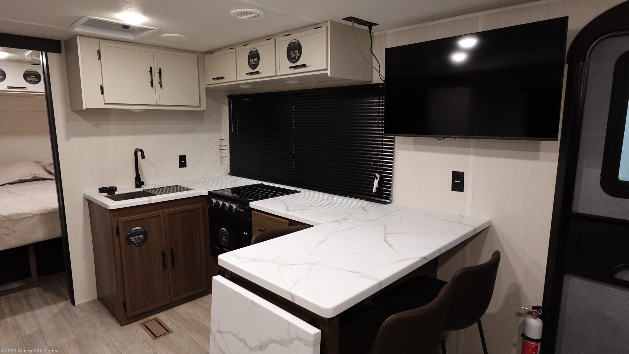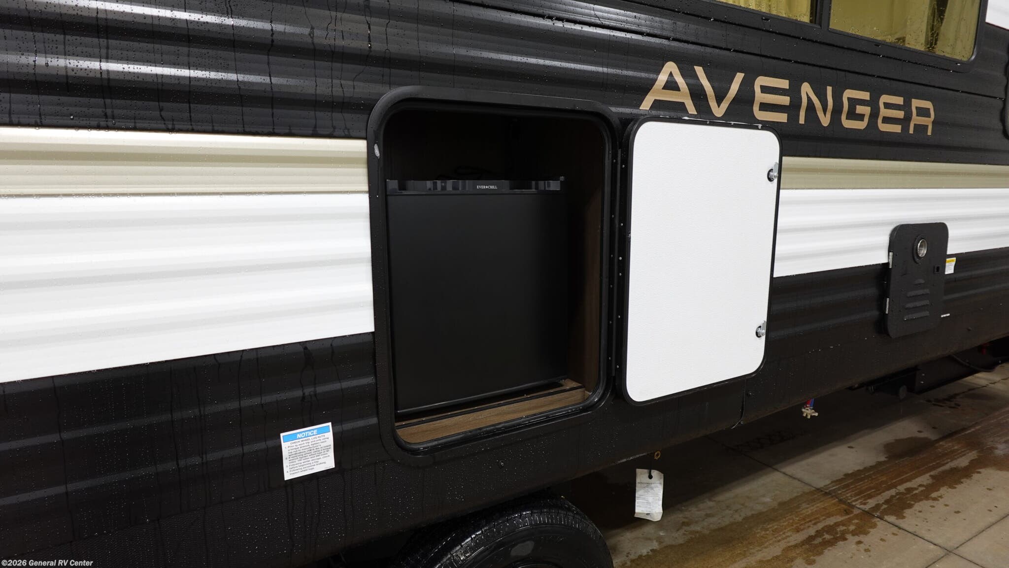 Imagine the perfect blend of comfort and style with the 2026 Prime Time Avenger 25MKO. This travel trailer is your ideal escape, offering a spacious and inviting layout that ensures every journey feels like a retreat. With its thoughtful design, the Avenger 25MKO features a center kitchen and living area that invites you to unwind and enjoy your surroundings. The theater seating provides a cozy spot to relax and watch your favorite shows on the 50" TV, while the full-size electric refrigerator and three-burner cooktop make meal prep a breeze. As you make your way to the front, you'll find a serene bedroom complete with a king bed, promising restful nights after days of adventure. The rear bath offers convenience with its plastic/glass shower enclosure and practical storage solutions. Outside, the powered retractable awning extends your living space, providing shade and comfort for outdoor relaxation. With a length of just under 30 feet and a manageable dry weight, the Avenger 25MKO is perfect for those seeking both mobility and luxury in their travels. For more information or to experience this RV firsthand, visit your nearest General RV dealership.
