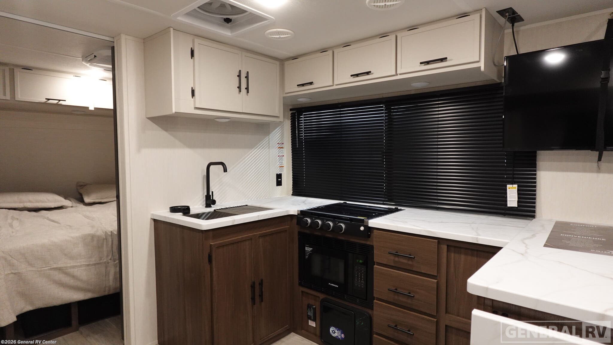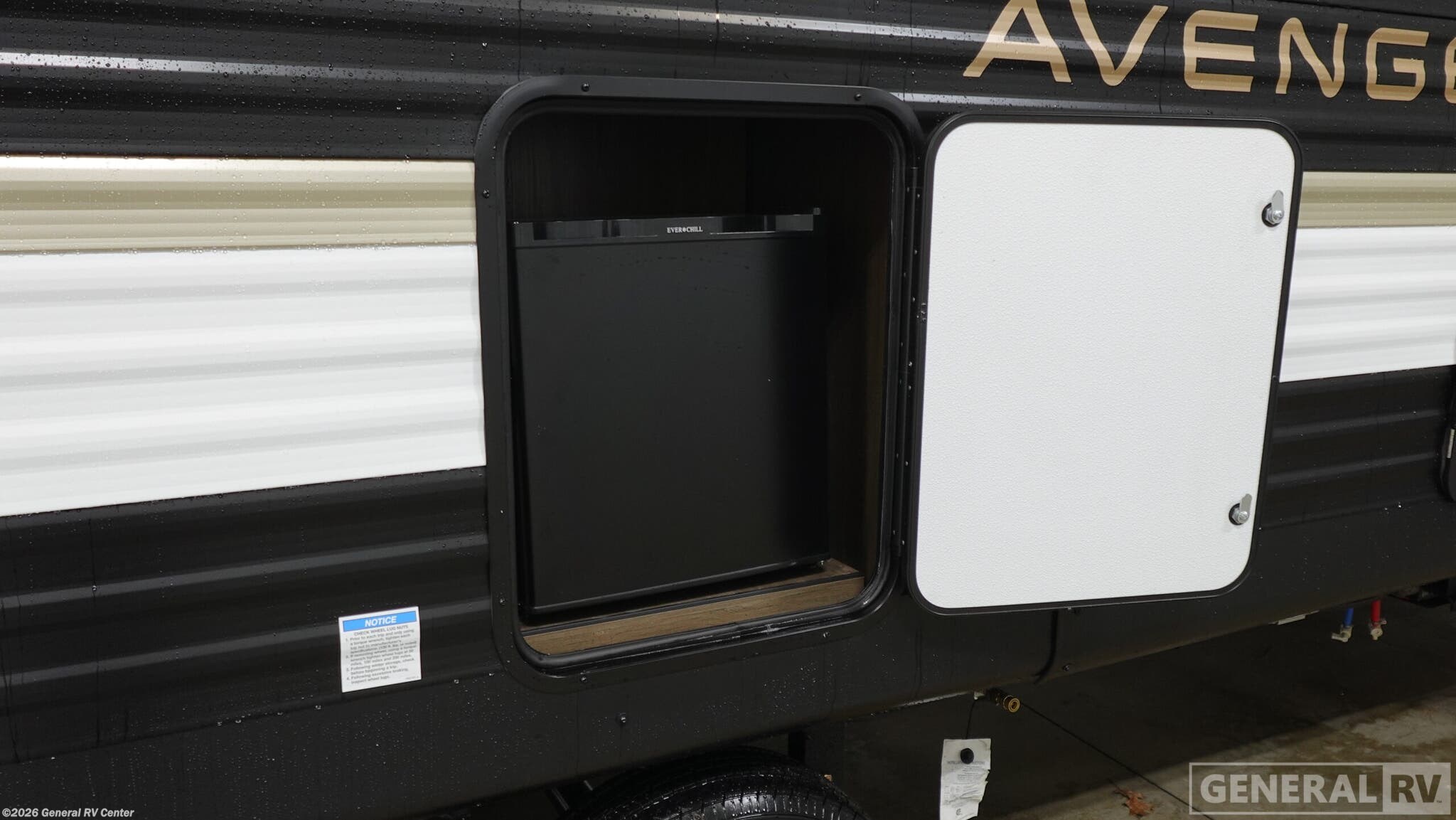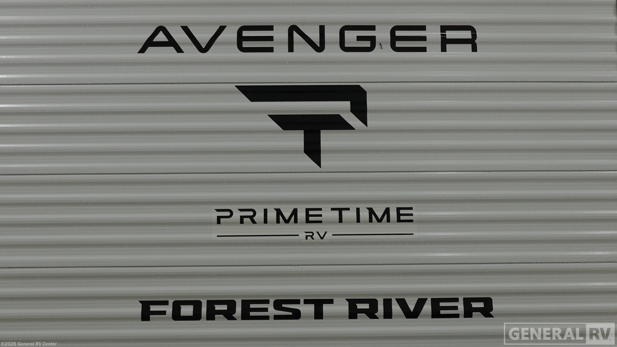 Imagine the perfect blend of comfort and style with the 2026 Prime Time Avenger 25MKO. This travel trailer is your ideal escape, offering a spacious and inviting layout that ensures every journey feels like a retreat. With its thoughtful design, the Avenger 25MKO features a center kitchen and living area that invites you to unwind and enjoy your surroundings. The theater seating provides a cozy spot to relax and watch your favorite shows on the 50" TV, while the full-size electric refrigerator and three-burner cooktop make meal prep a breeze. As you make your way to the front, you'll find a serene bedroom complete with a queen bed, promising restful nights after days of adventure. The rear bath offers convenience with its plastic/glass shower enclosure and practical storage solutions. Outside, the powered retractable awning extends your living space, providing shade and comfort for outdoor relaxation. With a length of just under 30 feet and a manageable dry weight, the Avenger 25MKO is perfect for those seeking both mobility and luxury in their travels. For more information or to experience this RV firsthand, visit your nearest General RV dealership.