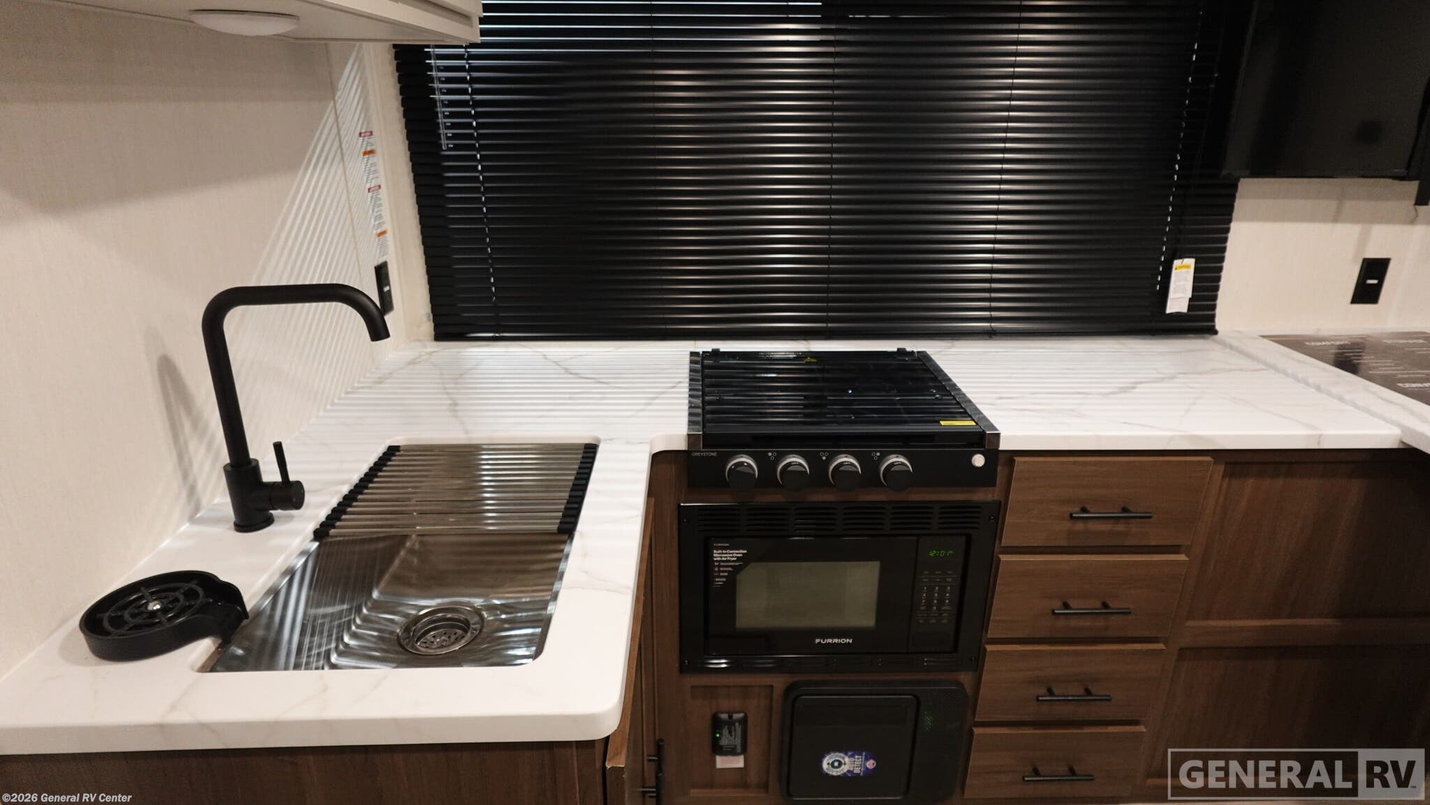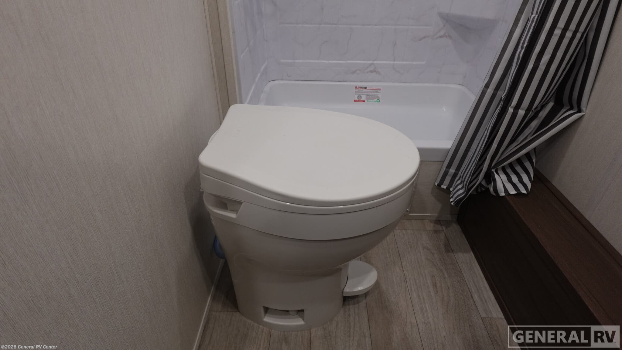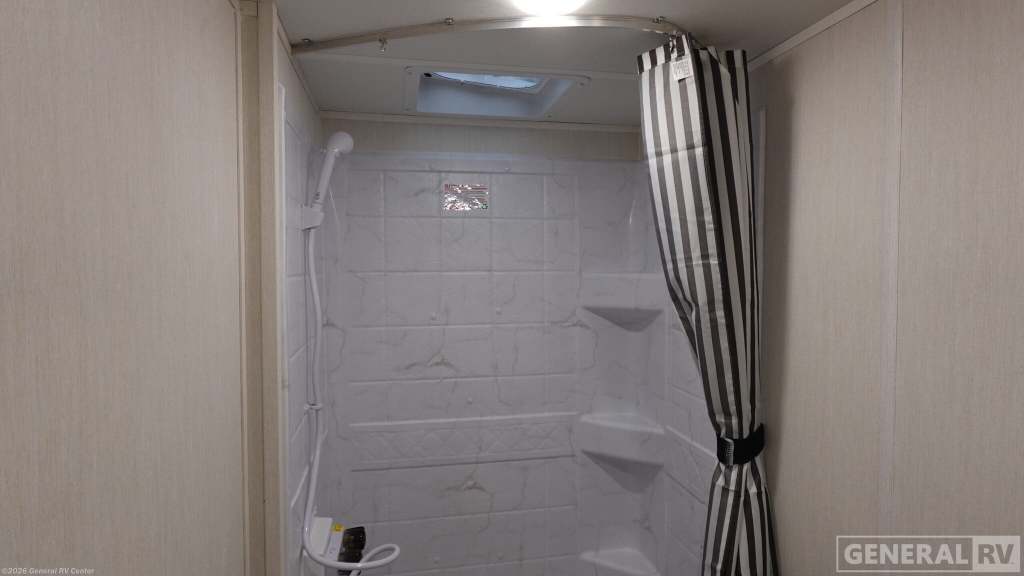Imagine the perfect blend of comfort and style with the 2026 Prime Time Avenger 25MKO. This travel trailer is your ideal escape, offering a spacious and inviting layout that ensures every journey feels like a retreat. With its thoughtful design, the Avenger 25MKO features a center kitchen and living area that invites you to unwind and enjoy your surroundings. The theater seating provides a cozy spot to relax and watch your favorite shows on the 50" TV, while the full-size electric refrigerator and three-burner cooktop make meal prep a breeze. As you make your way to the front, you'll find a serene bedroom complete with a queen bed, promising restful nights after days of adventure. The rear bath offers convenience with its plastic/glass shower enclosure and practical storage solutions. Outside, the powered retractable awning extends your living space, providing shade and comfort for outdoor relaxation. With a length of just under 30 feet and a manageable dry weight, the Avenger 25MKO is perfect for those seeking both mobility and luxury in their travels. For more information or to experience this RV firsthand, visit your nearest General RV dealership.