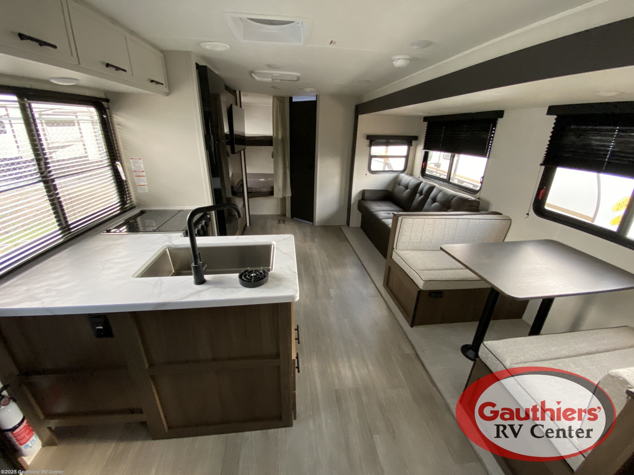 - Sturdy bunk beds, front bedroom, and mid-kitchen layout to maximize living space