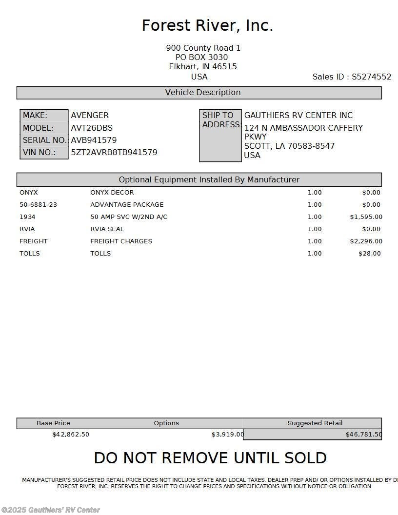 This 2026 Prime Time Avenger 26DBS is in stock (New Arrival) with stock number RGG41579. Ready to explore new destinations? Contact us to schedule a viewing or reserve this travel trailer today and start planning your next family adventure.